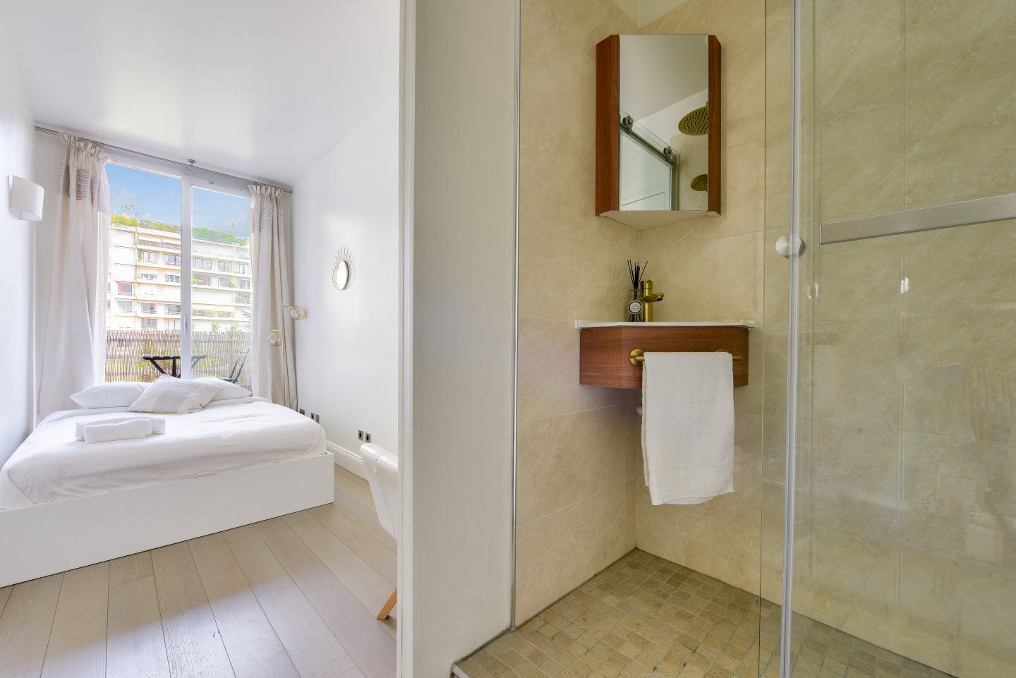 Bathed in sunlight and only a short walk from Bois de Boulogne, this apartment is an ideal base if you're keen to be near one of Paris' best green spaces. You can stroll to the Eiffel Tower and the Quais de la Seine, though two metro stations are also nearby to explore further afield. Better still are the two private balconies here, particularly well-suited for sundowners and dining alfresco. The design inside is pared-back but cosy, with all the bits and bobs needed for a fuss-free stay – including a library of books, a desk for remote working, and three comfortable bedroom suites.