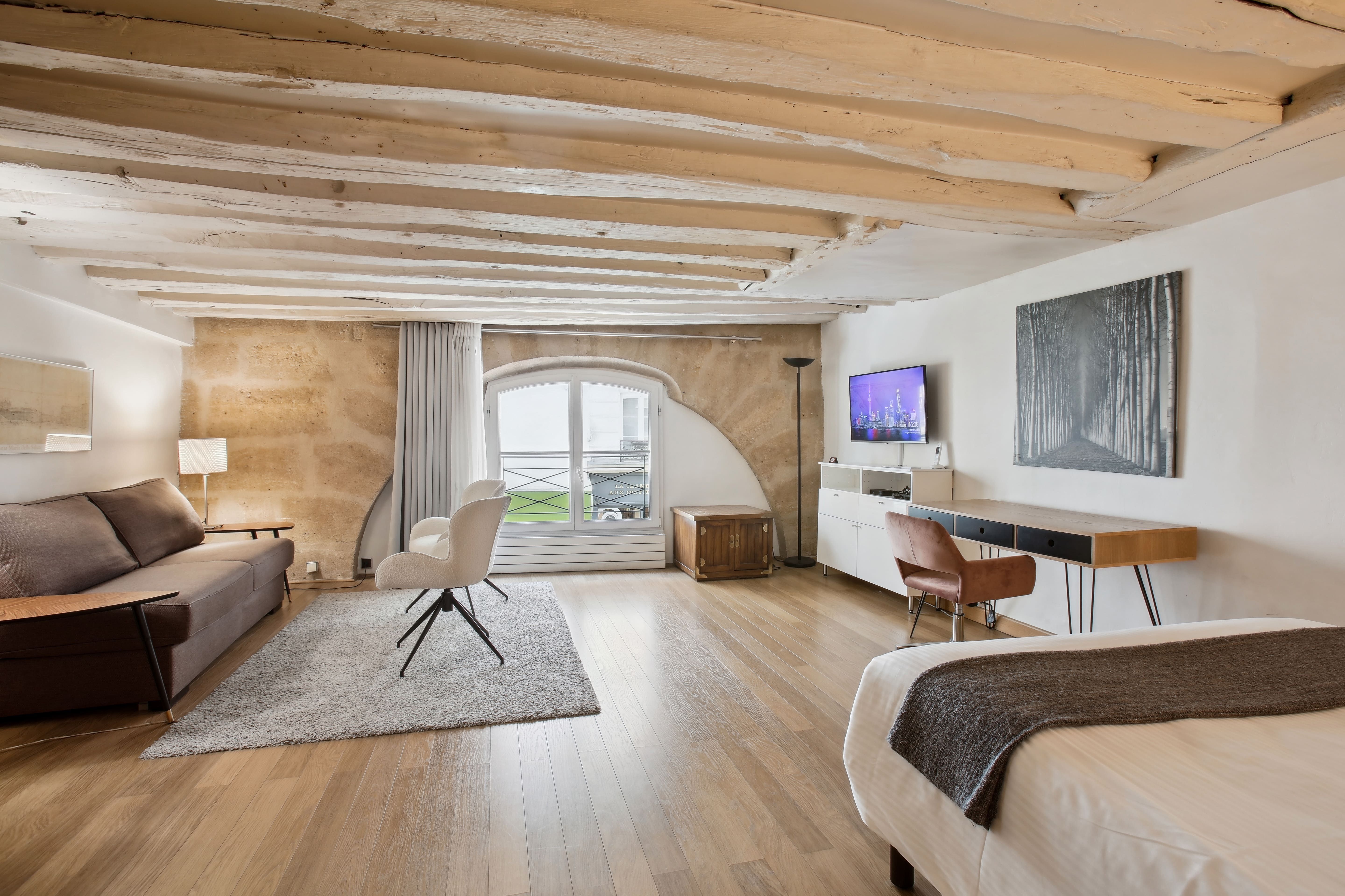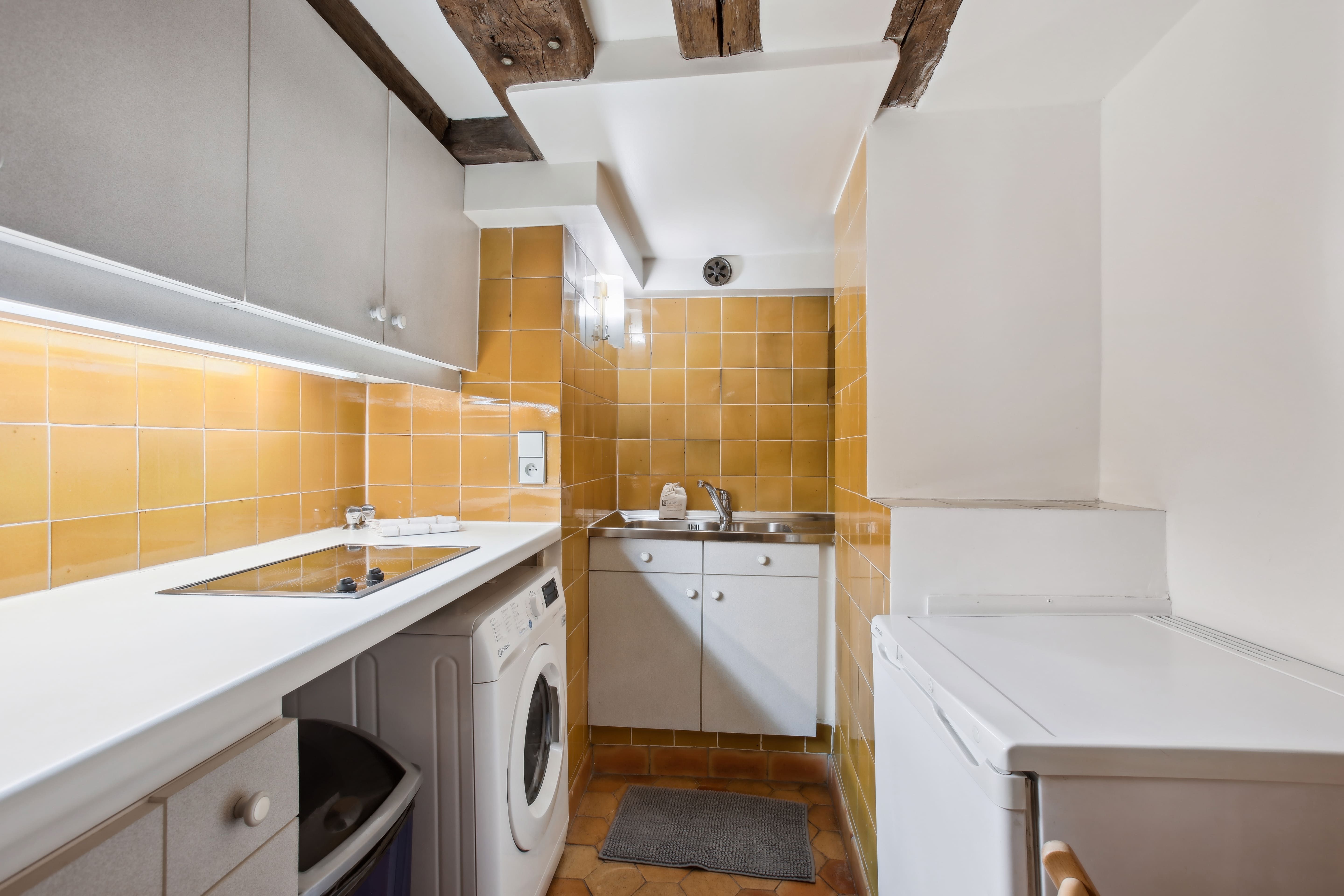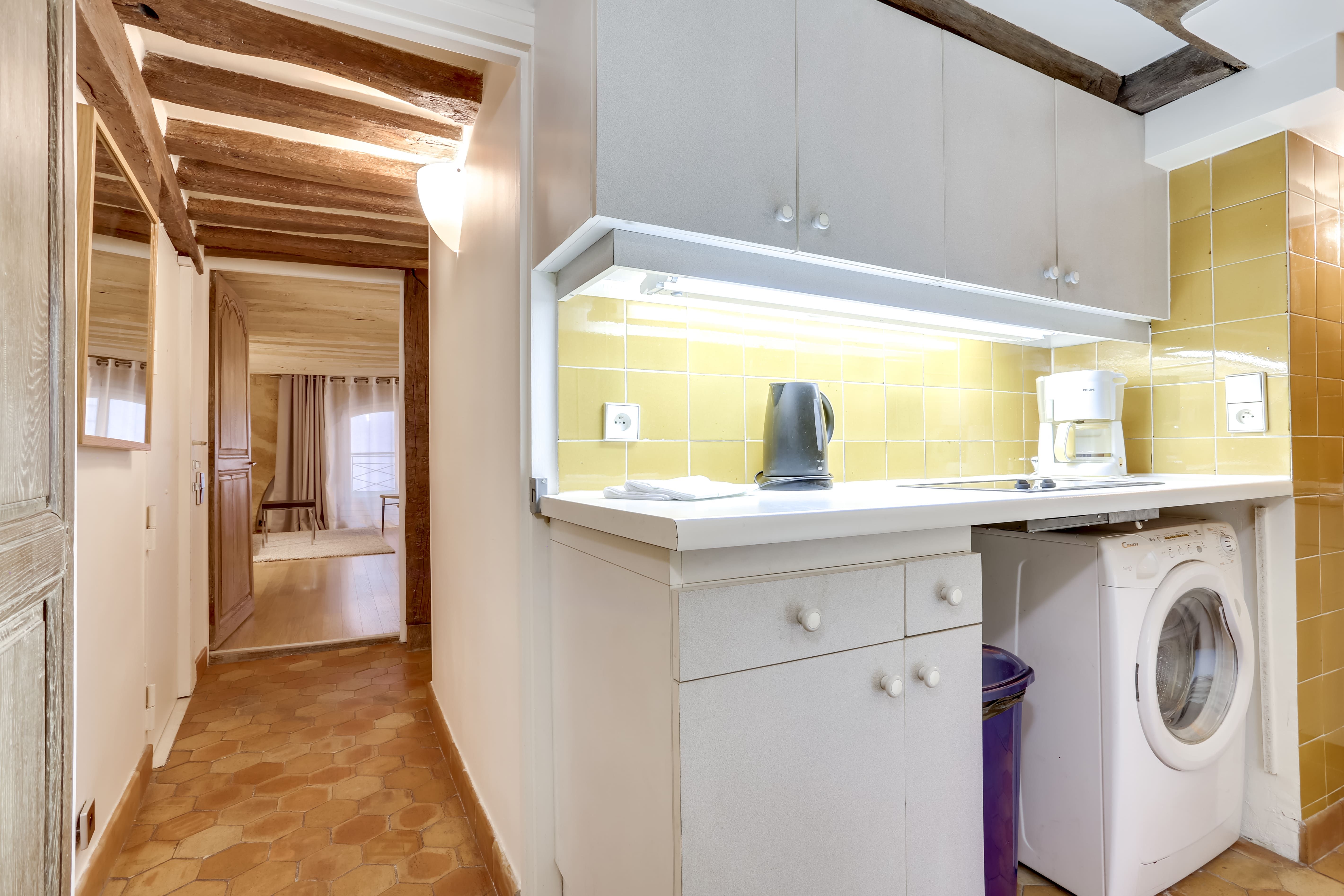 This serviced studio apartment is just a short stroll from the Jardins des Archives Nationales and the Musée National Picasso-Paris. The Place des Vosges and the Centre Pompidou are also within walking distance, as are excellent transport links, making the rest of the city easily accessible. Tailored towards corporate stays, this apartment has a desk for catching up on work, as you’d expect. There’s also a compact, but well-equipped kitchen, while outside, there’s a typically Parisian communal courtyard. This home has everything you need for your time in Paris.