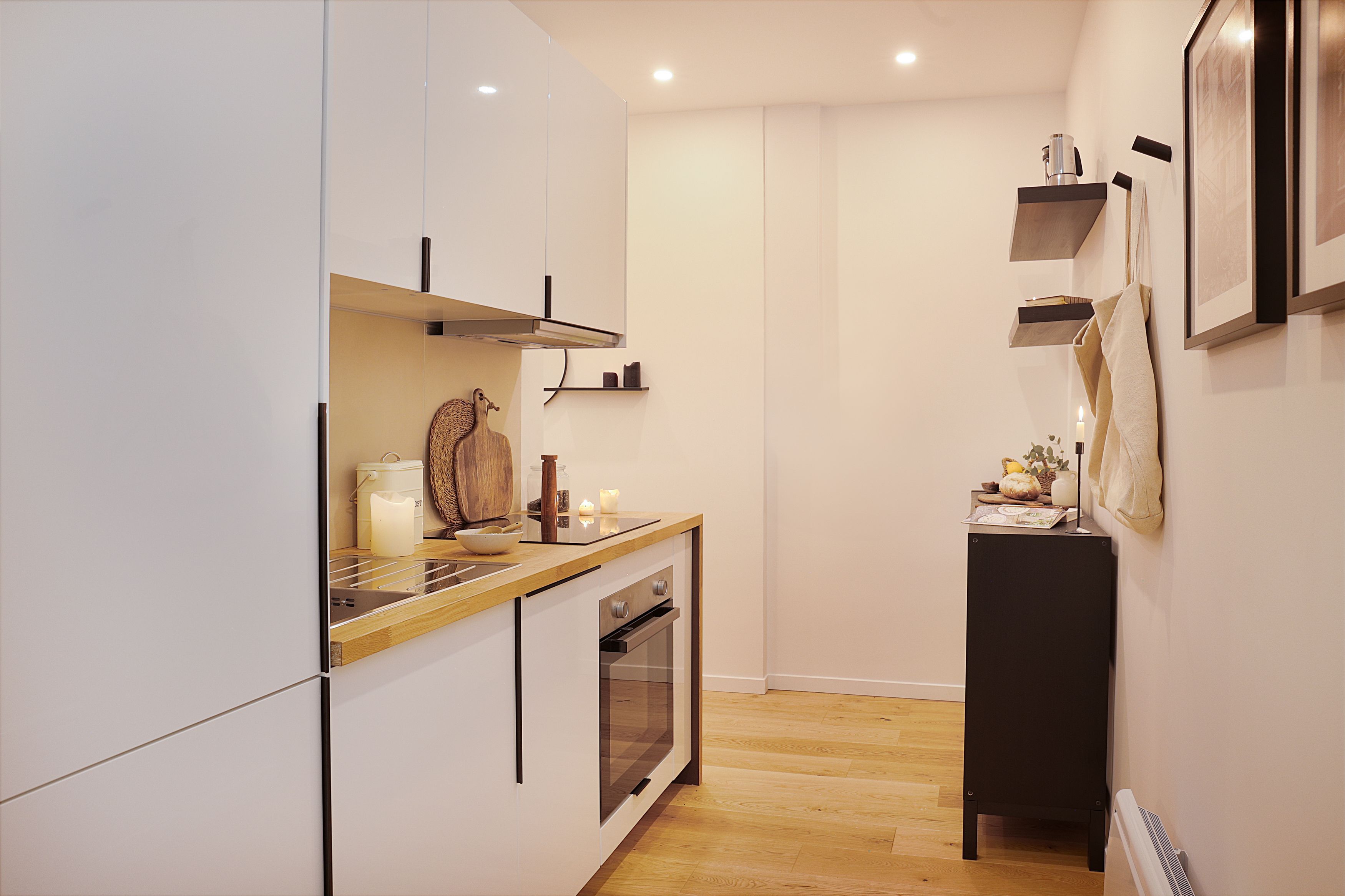 *The kitchen area is compact, but it has everything you need for cooking at home.