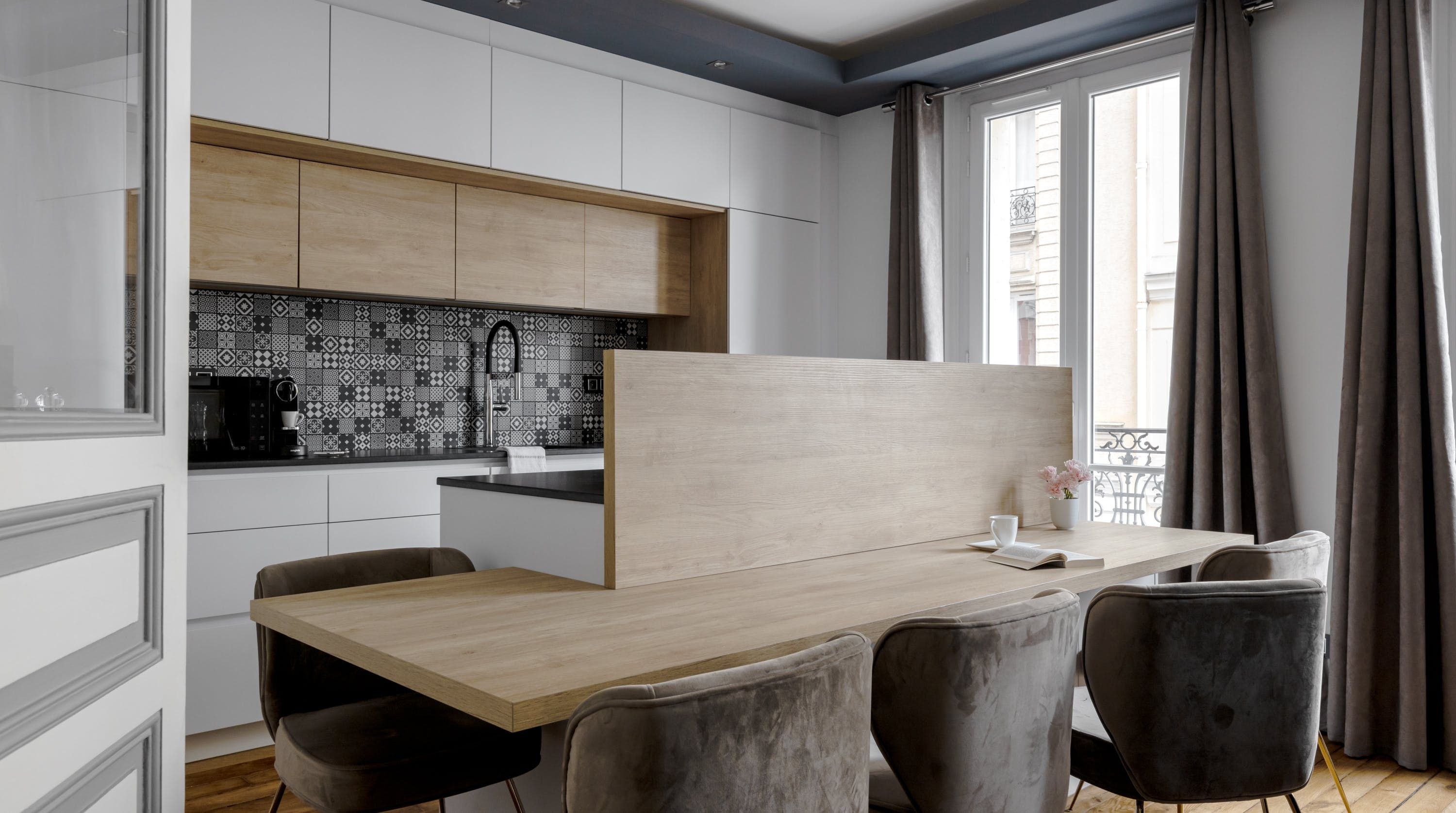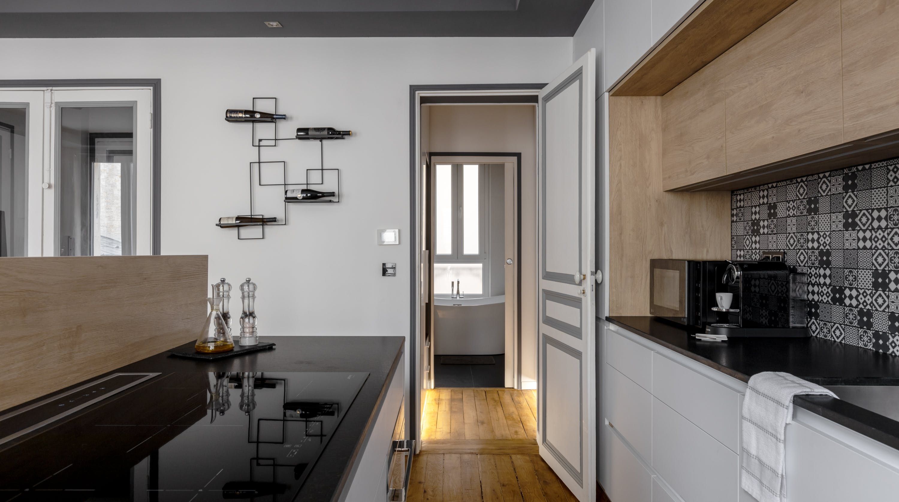 There's a lot more to Paris beyond its famous tower, but we think it's a pretty good place to start. Located in the 15th arrondissement, this stylish apartment is just a four minutes' walk from the Iron Lady and the scenic Champ de Mar gardens. A stroll through the immediate neighbourhood will soon have you feeling like a local – it's a quieter quarter of the city, lined with boulangeries, cafés, restaurants and bars, and home to a surplus of Parisians. Watch the world go by perched over your wrought-iron balcony with a cup of coffee in hand or fling open the original windows and invite the gentle sounds of the city below into your home. Stepping into the living area, you'll find an open-plan layout with tinged wooden floors, elegant wainscoting and velvet furnishings, creating a sophisticated yet cosy feel. It's an inviting space to relax after a day spent exploring, whether you're frying up a croque madame in the modern kitchen or catching up on some literature at the dining table. Others may prefer to unwind with an indulgent bubble bath in the freestanding tub, while those with an eye on work can host client-catch ups and meetings in the bedroom's dedicated office space. Ideal for short or long term stays, this home celebrates its traditional features while offering all of the usual mod-cons you could possibly need – the views of the Eiffel Tower aren't bad either.