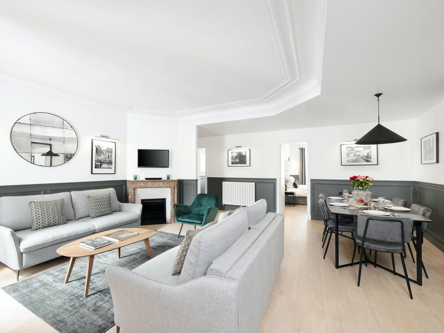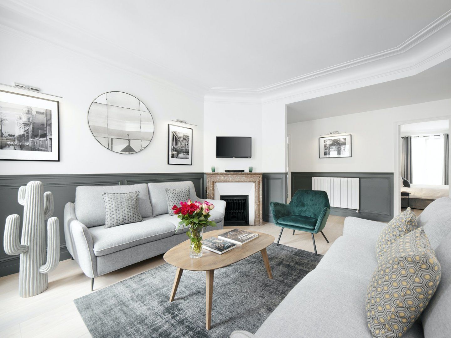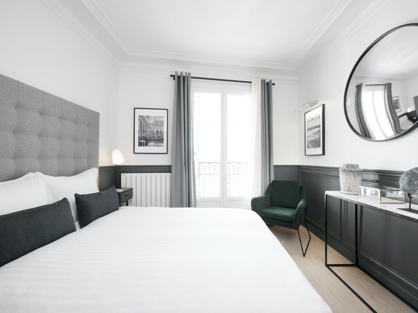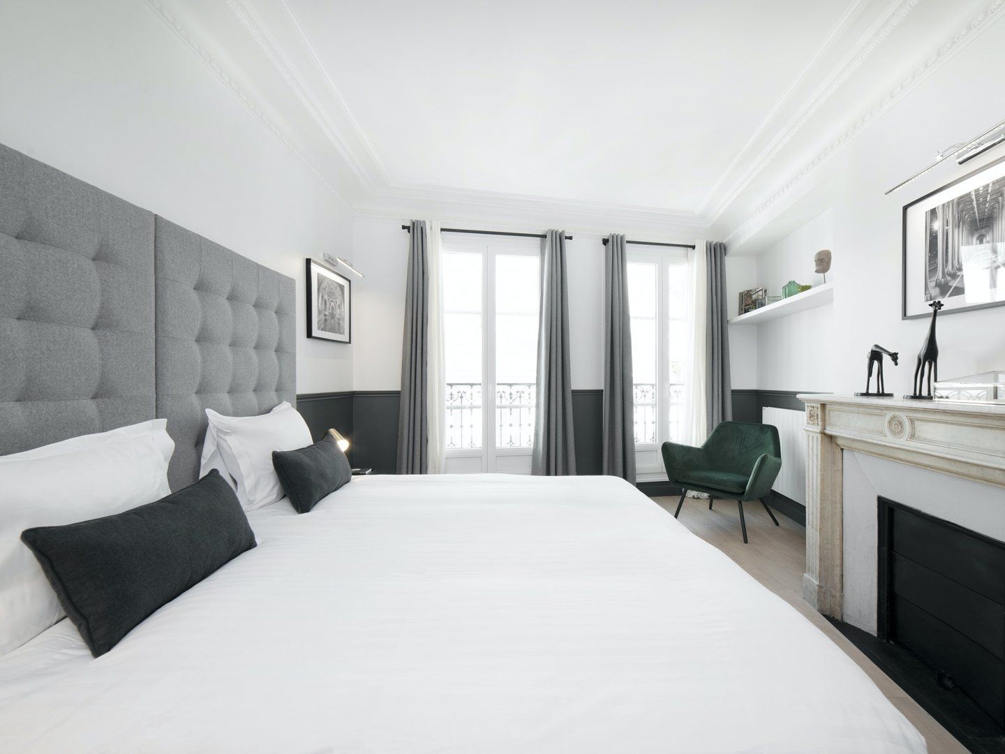 This top-floor apartment combines classic Parisian style with modern details and a dash of glamour. The result is a stunning space that will make larger groups feel right at home during a trip to the city. There's space for everyone to spread out and admire the black and white photographs on the walls, along with the decorative fireplace and collection of ornaments – look out for the cactus and the elephant. You’ll also love the views of the Sacré-Cœur Basilica and Paris rooftops from the balcony. Gather your guests and share some home-cooked dishes at the chic dining table, or grab a quick coffee from the machine on your way out exploring. The surrounding Strasbourg-Saint-Denis is popular with tourists and locals alike, thanks to its excellent position and lively character. You'll find smart cocktail bars alongside traditional French cafés, and a range of independent shops and restaurants. You can walk to the Canal Saint-Martin in fifteen minutes, while the Musée des Arts et Métiers is the same distance away. The iconic Louvre Museum is only a twenty-five-minute walk away, but if you'd rather take the train then simply hop on the métro at Château d'Eau station.