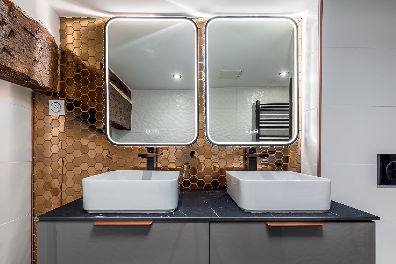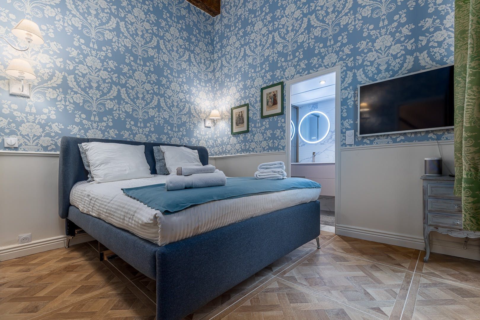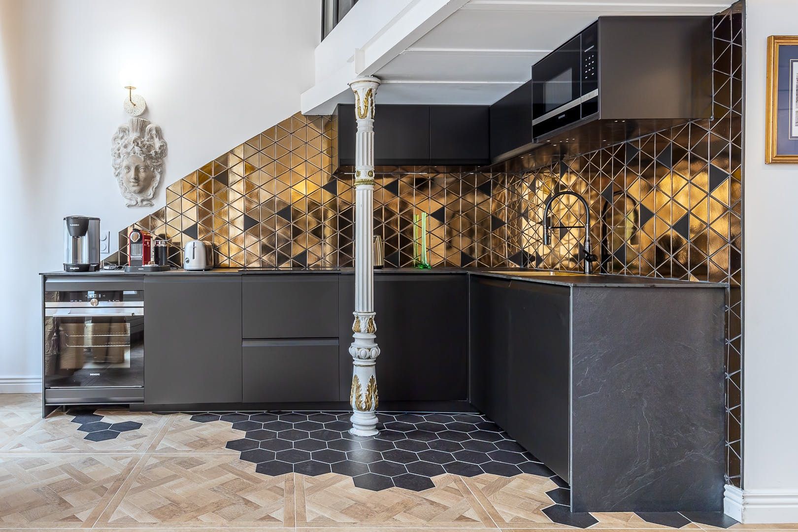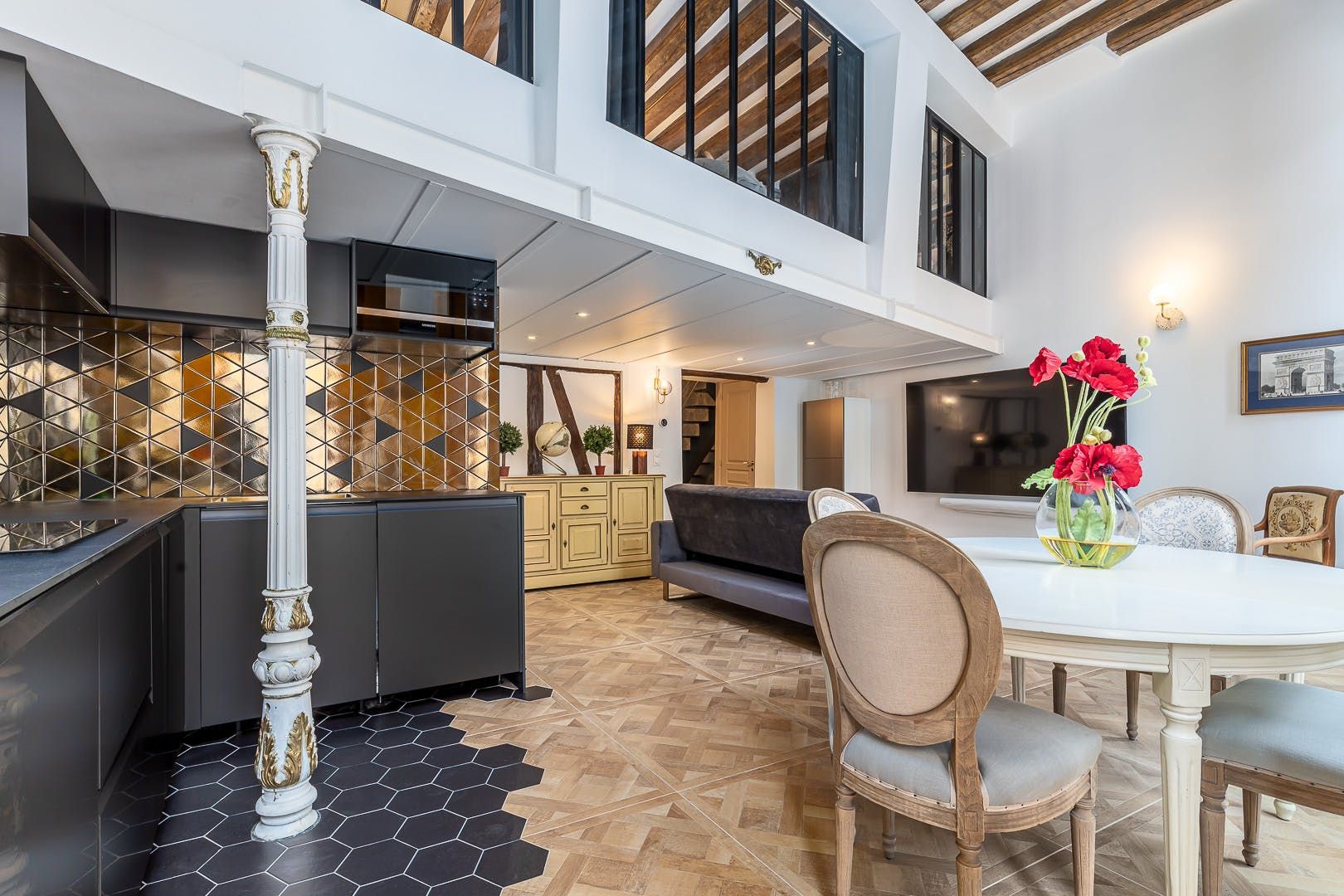 However, the apartment's lavish size is a major reason, too. The mezzanine arrangement increases the living area in the home without it ever feeling cramped in any way, while open-plan modern kitchen is perfect for socialising whilst you try your hand at French cuisine.