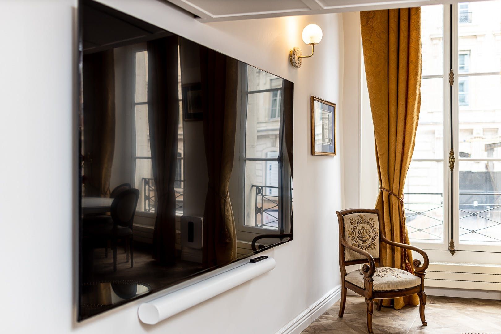 Less than five minutes' walk from the opulence of Palais-Royal, there's something quite palatial about this apartment, too. Some of this is down to the high ceilings and tall windows, but there's also a noticeable touch of grandeur in its modern design.