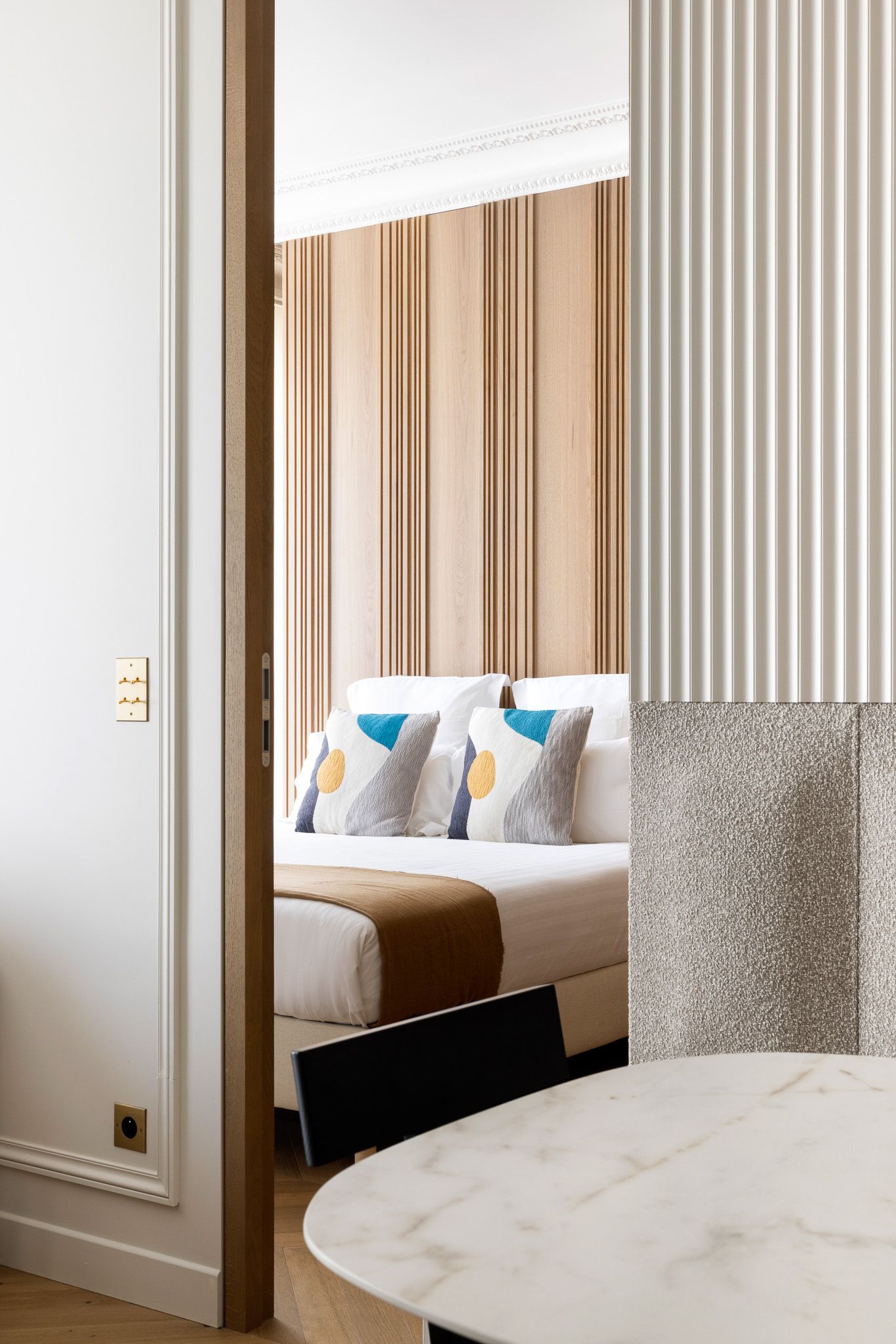 What this apartment lacks in size, it makes up for in Parisian chic style. The living space is open-plan, so you'll be able to unwind on the sofa or rustle up dinner without missing a beat in the conversation. Your host also provides daily housekeeping and complimentary Aesop toiletries, with the option to organise private drivers for an additional fee. Located on Rue Réaumur (which you can see from the window), you'll be in the trendy Les Marais neighbourhood. Not only are restaurants, local shops, and art galleries on your doorstep, but the nearby metro makes exploring the rest of the city a breeze.