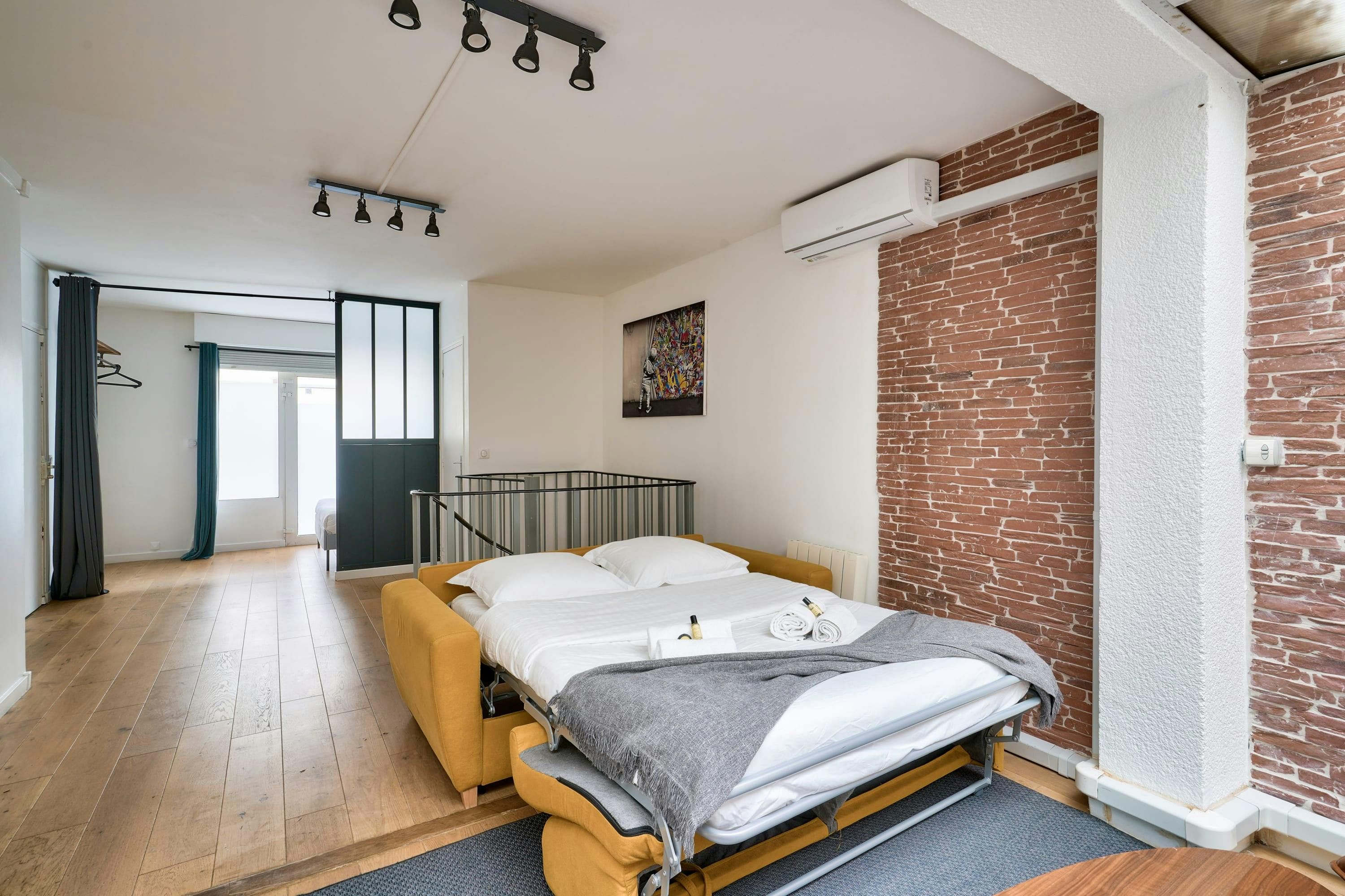 Perched around the corner from the Eiffel Tower and boasting a small private patio, the perks of this loft-style apartment are two-fold. The layout is a little quirky, with a small kitchen and secondary sitting room down a spiral staircase. It’s also worth noting that if six of you share, four guests will sleep on sofa beds in the living spaces, and the main bedroom is short on floor space. But you can’t argue with its location. Set in the heart of the 15th arrondissement district, all the sightseeing hotspots are within easy walking distance.