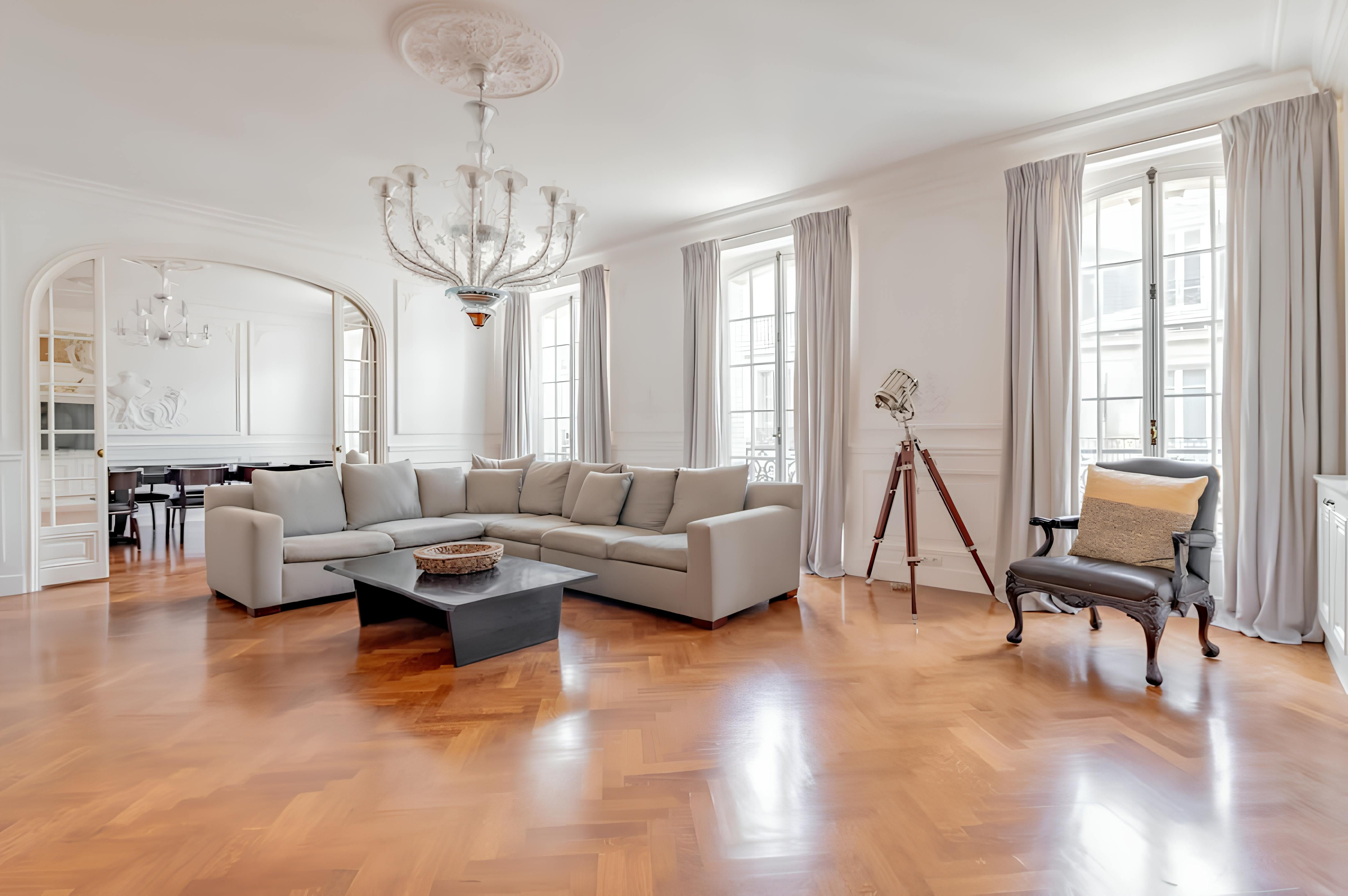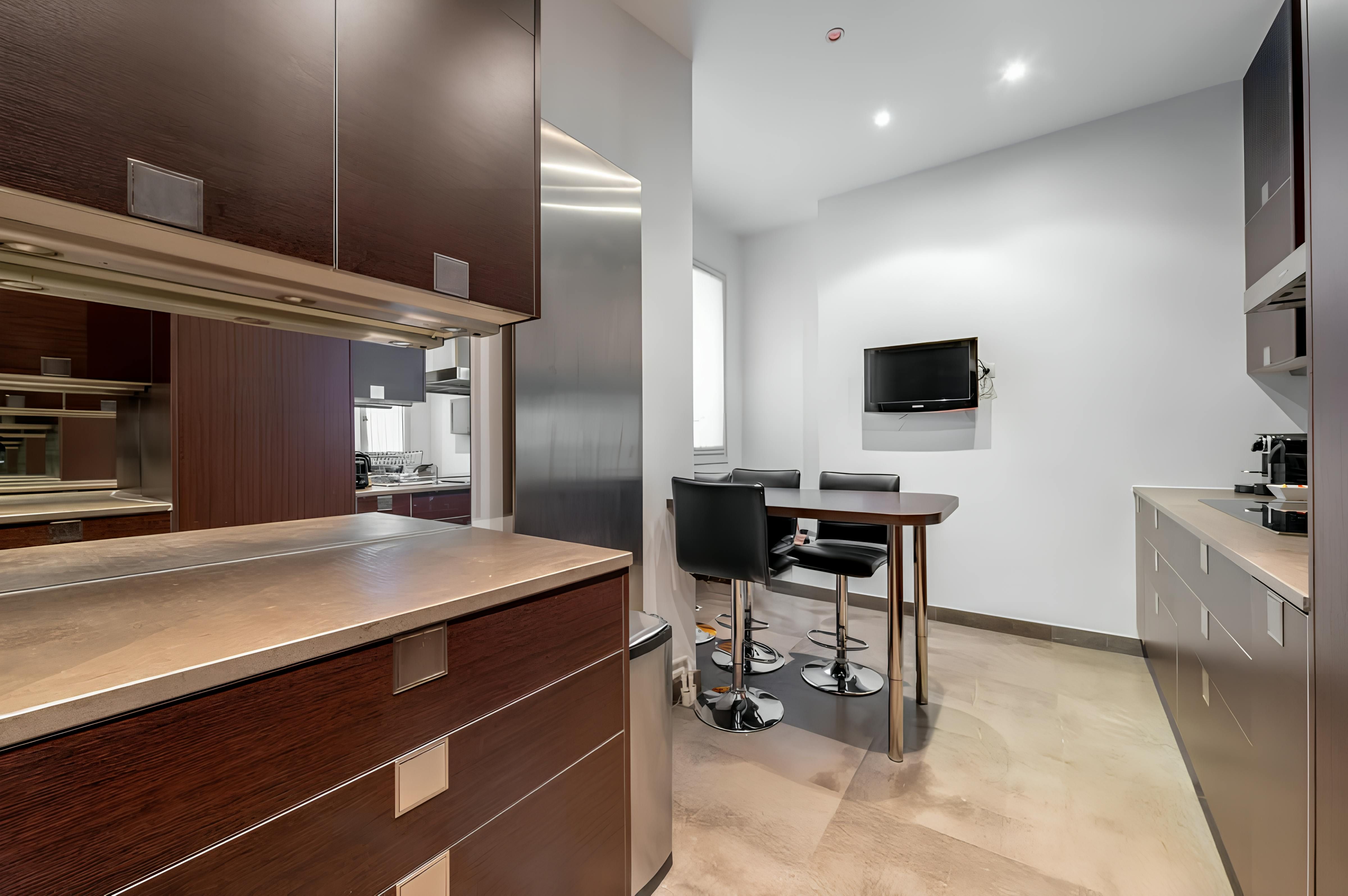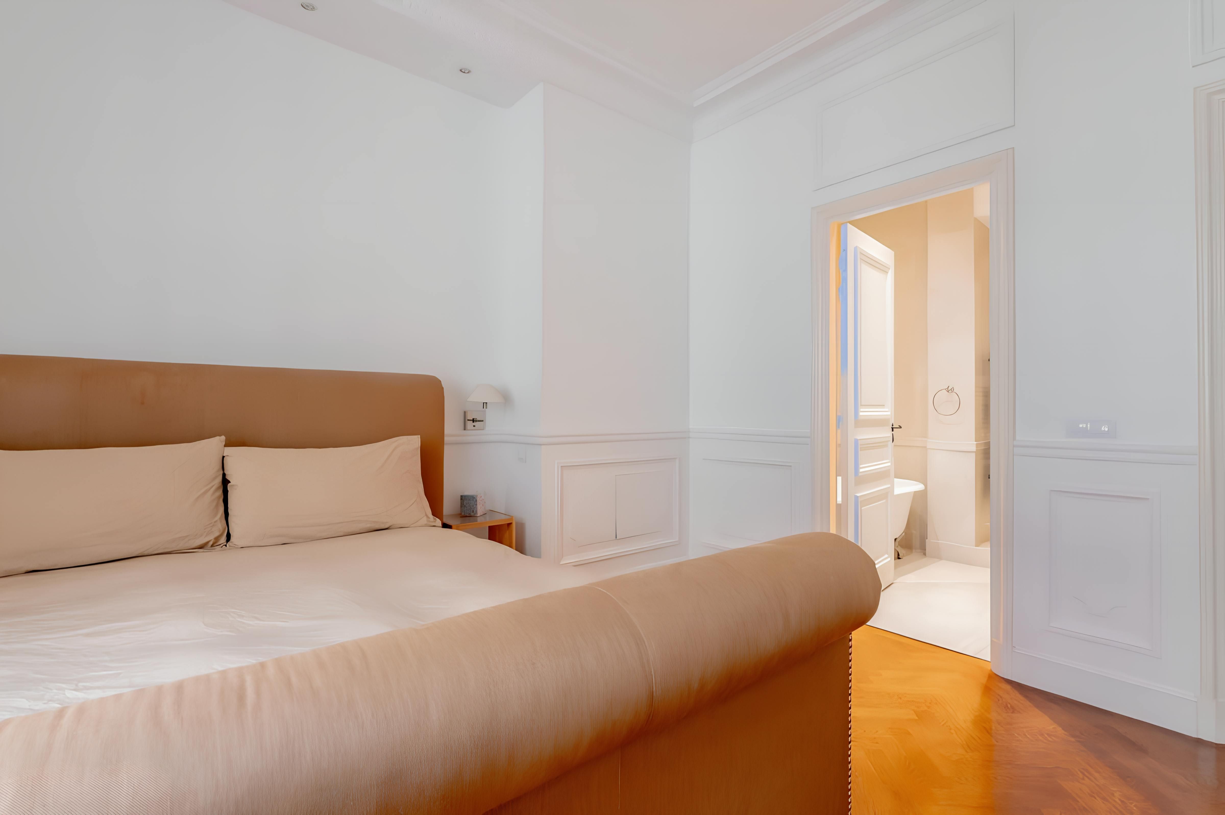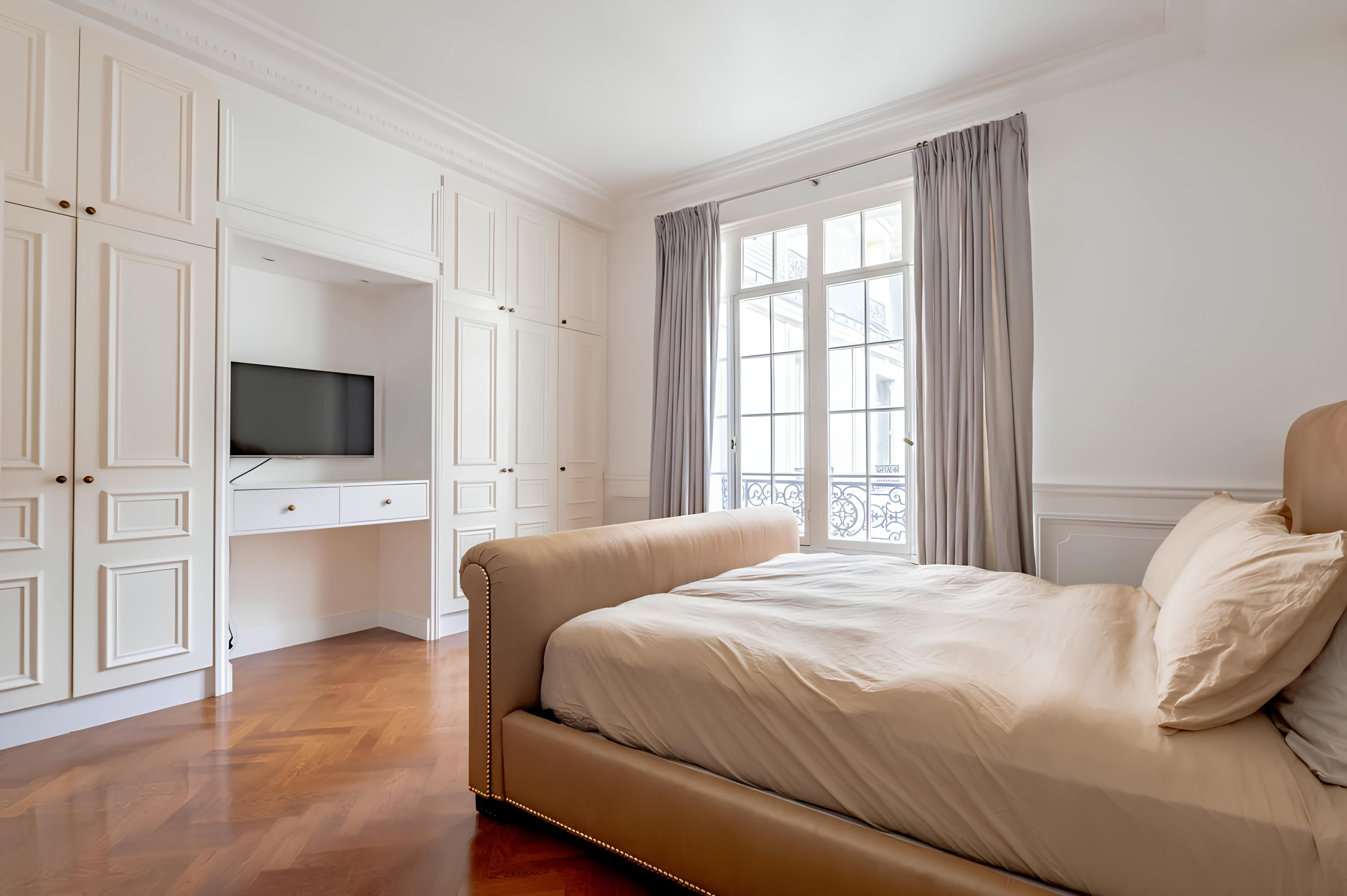 With an address in the prestigious 8th district, this apartment is perfectly positioned to explore Paris. You'll find the Champs-Élysées, Arc de Triomphe, and museums like the La Galerie Dior within walking distance. Also nearby are many boutiques to discover and plenty of eateries for when you need a pit stop. Not to be outdone by the location, the apartment is special as well. It’s beautifully decorated, especially the living room with its high ceilings, chandeliers, and marble fireplace. This place is perfect for guests looking for a luxurious stay in the City of Light.