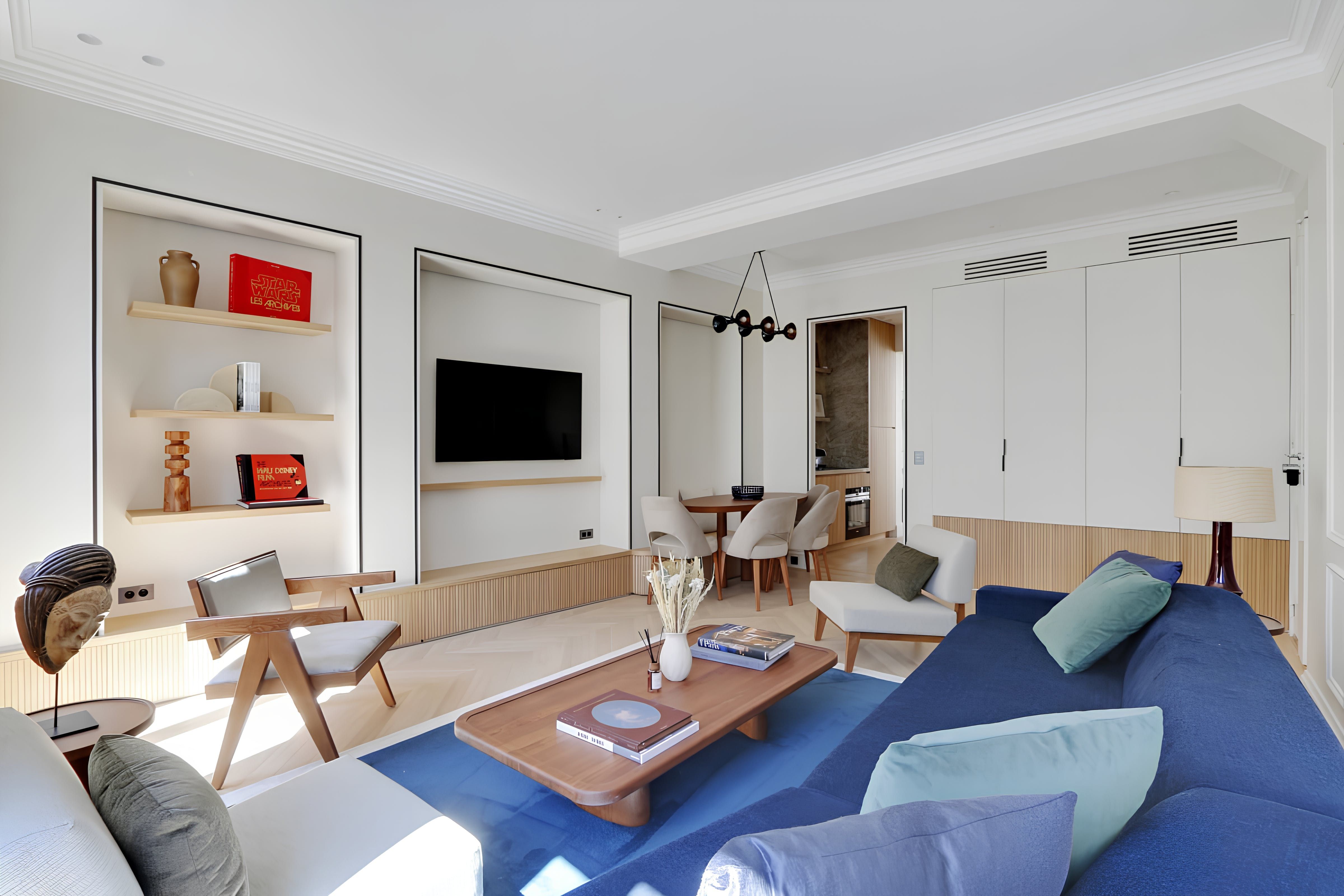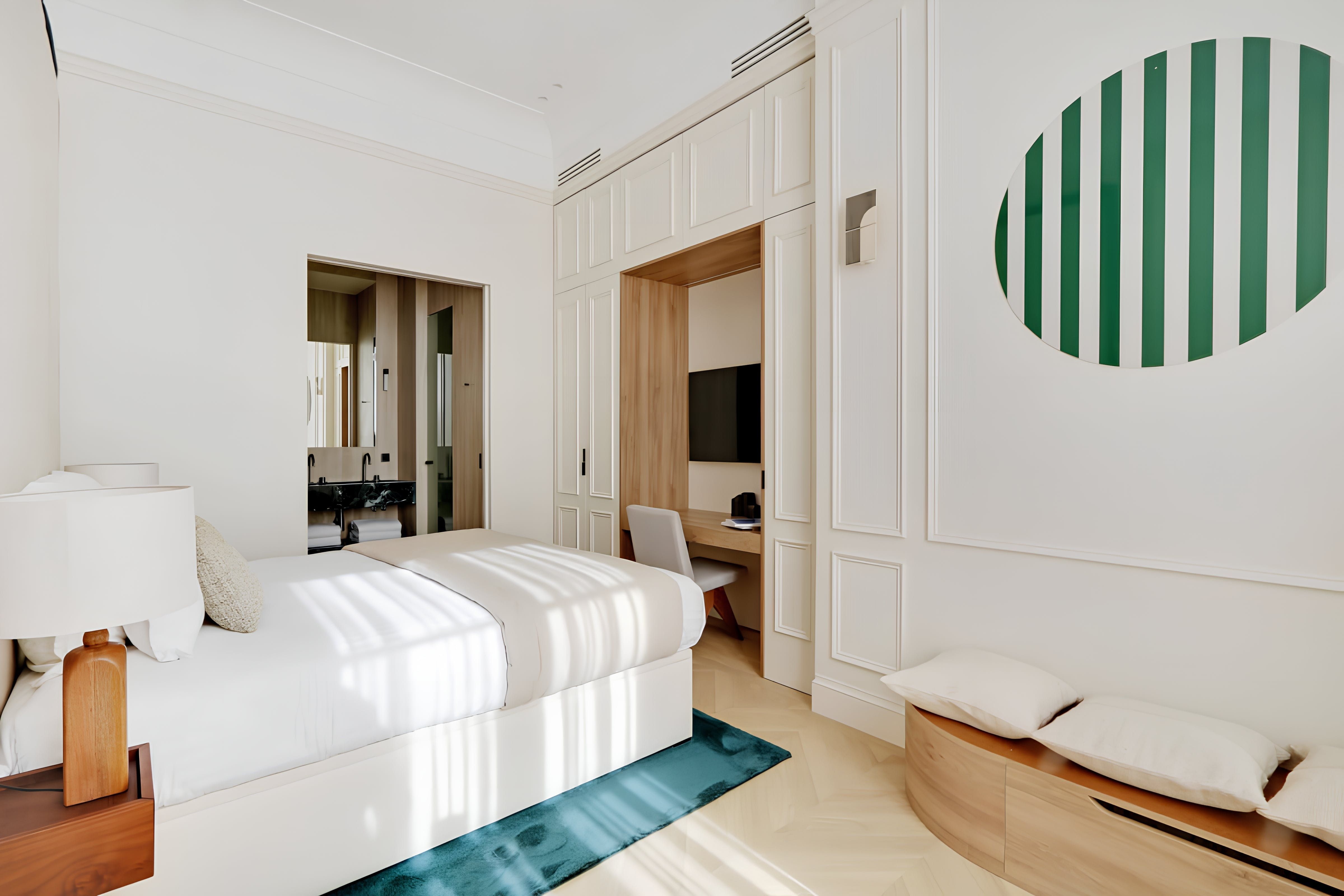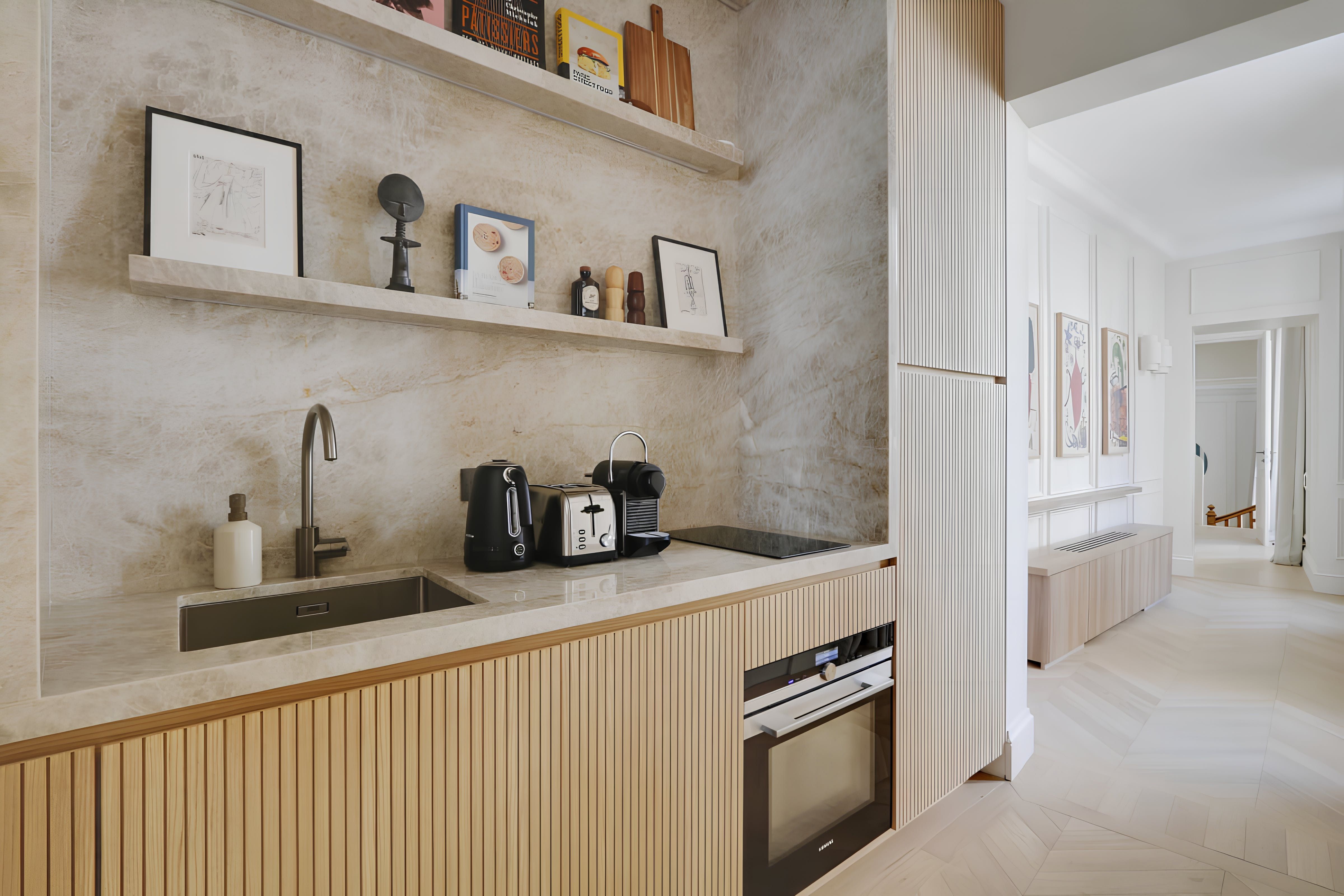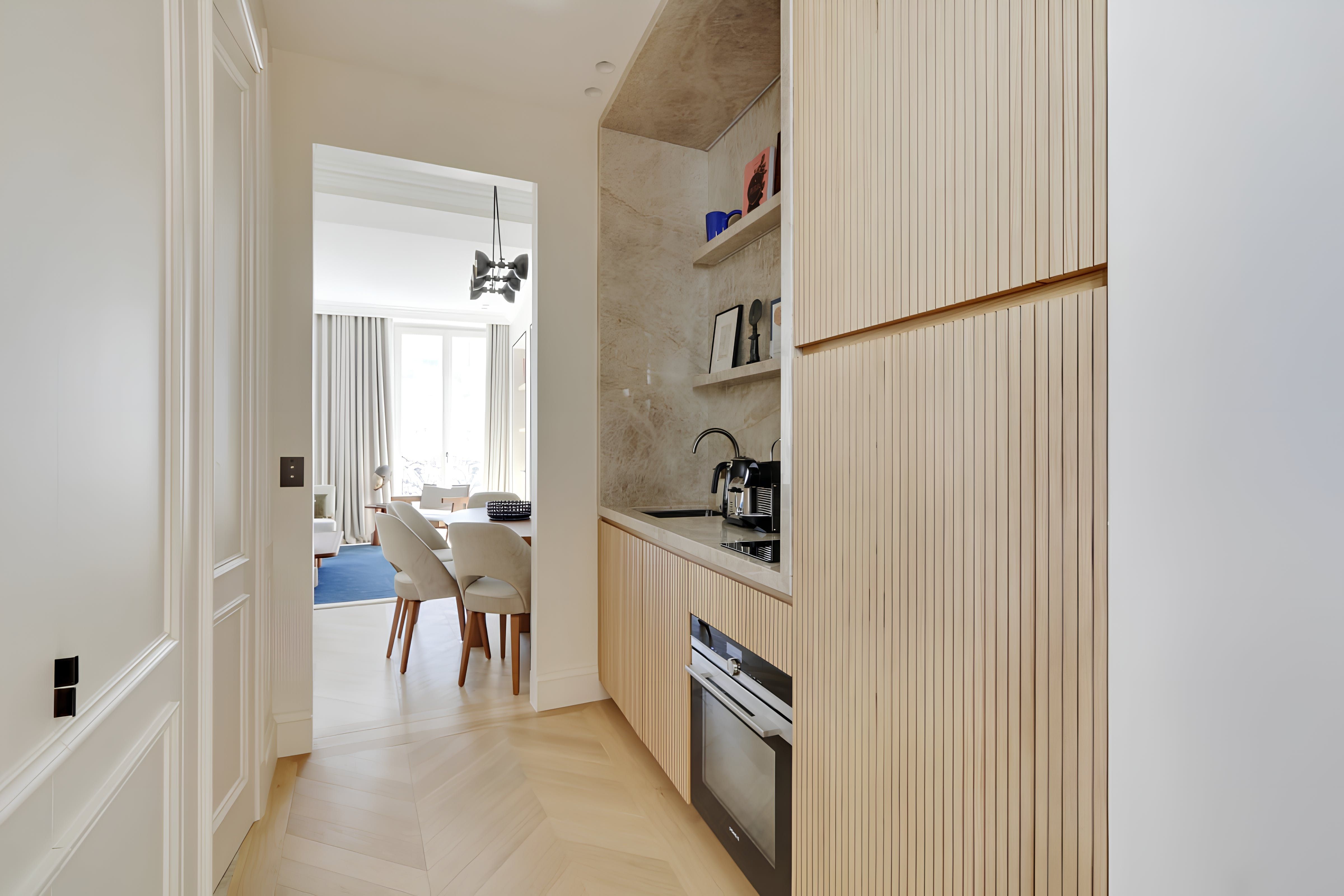 Look no further for a perfect location in Paris. We love that this second-floor home puts world-famous museums and fine dining on your doorstep. After shopping in Les Halles, you'll return to this historic Haussmann building, where a modern base awaits with a keyless entry code. Because guests five and six will sleep in the living area, expect a knock on the bedroom door when it's time for a shower. Both en-suites lack some privacy, which may have the others discussing plans on the Juliet balconies.