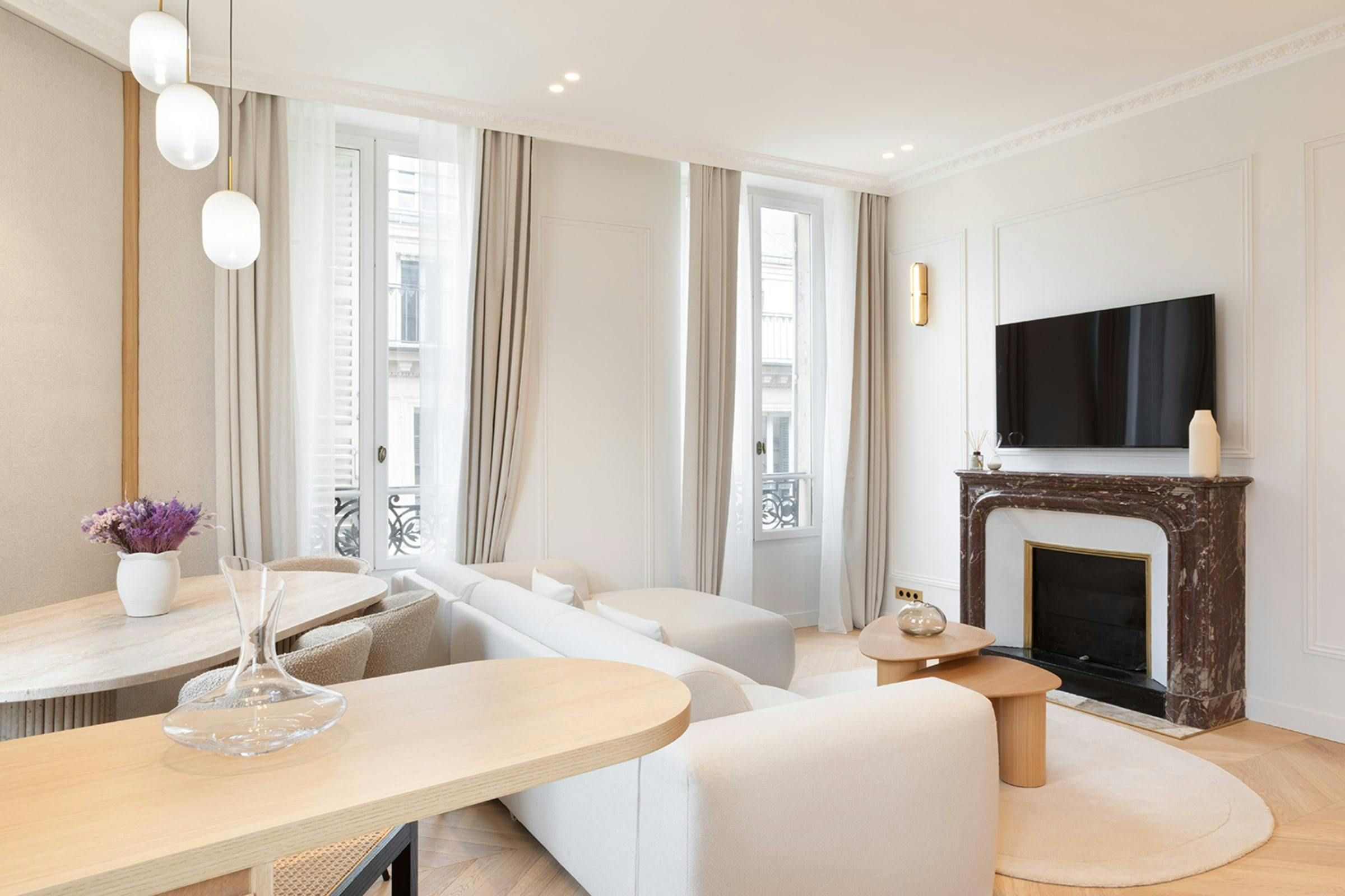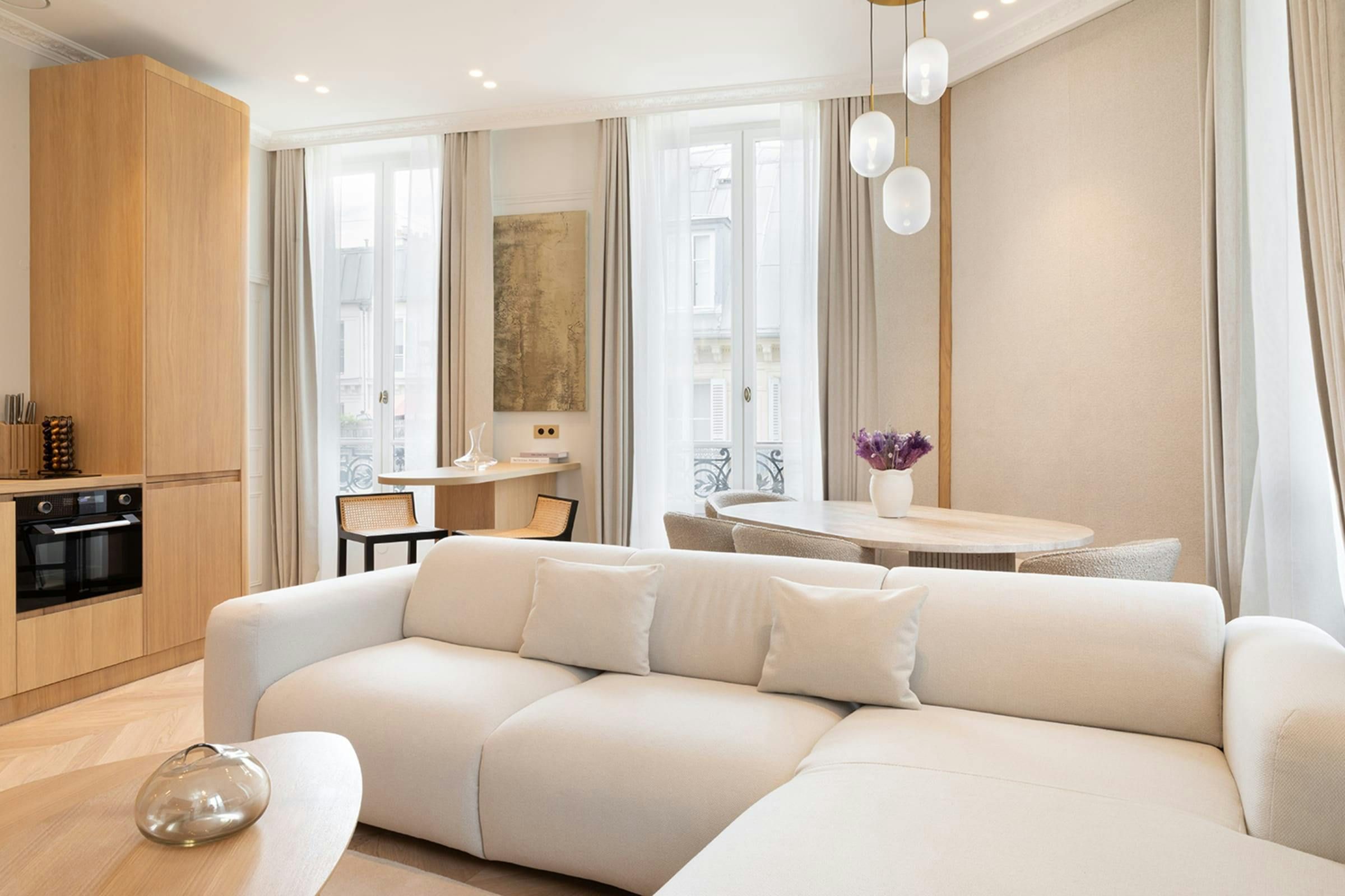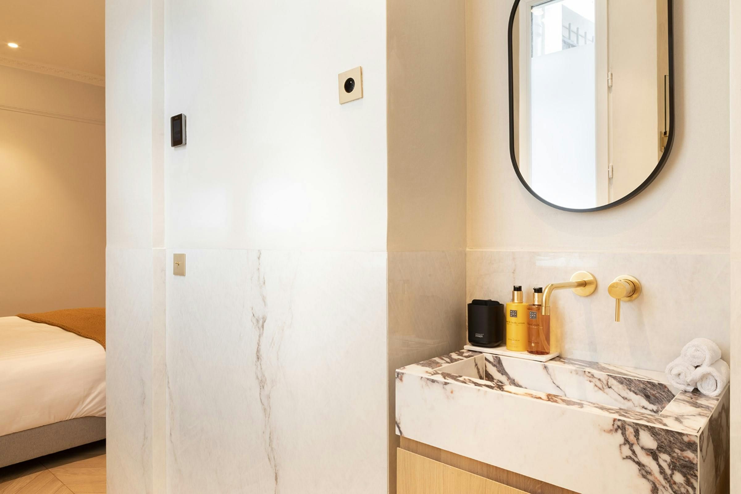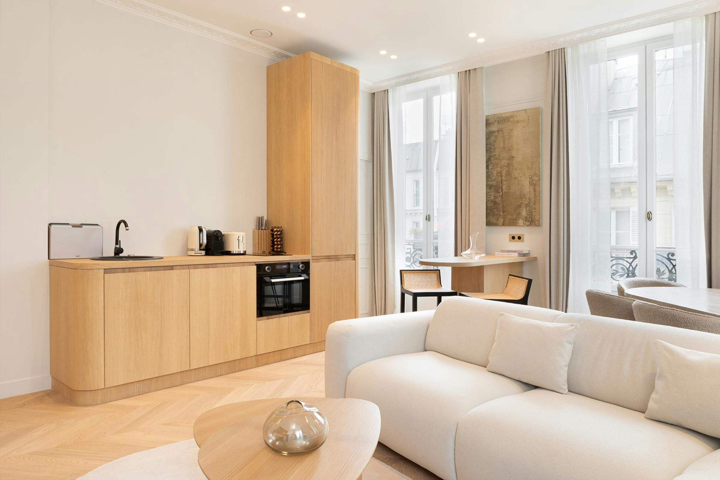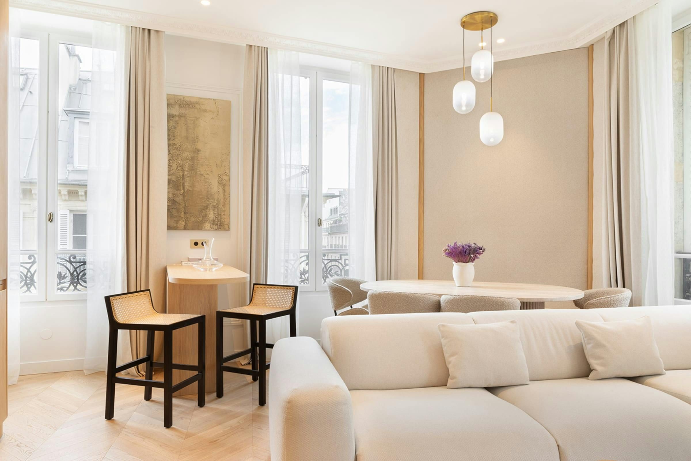 Stylish, sophisticated and perfectly located, this apartment unlocks the magic of Paris. Outside, you can stroll through the elegant streets of the the Madeleine district to local cafes, shops and restaurants. It’s also just a short walk to the Opéra Garnier and the Louvre as well as the nearest public transport links – making it easy to explore further afield. And when you’re looking to switch off and unwind, this home provides a calm city sanctuary. All of the bedrooms come with en-suite bathrooms for privacy and welcome products are provided for your arrival.