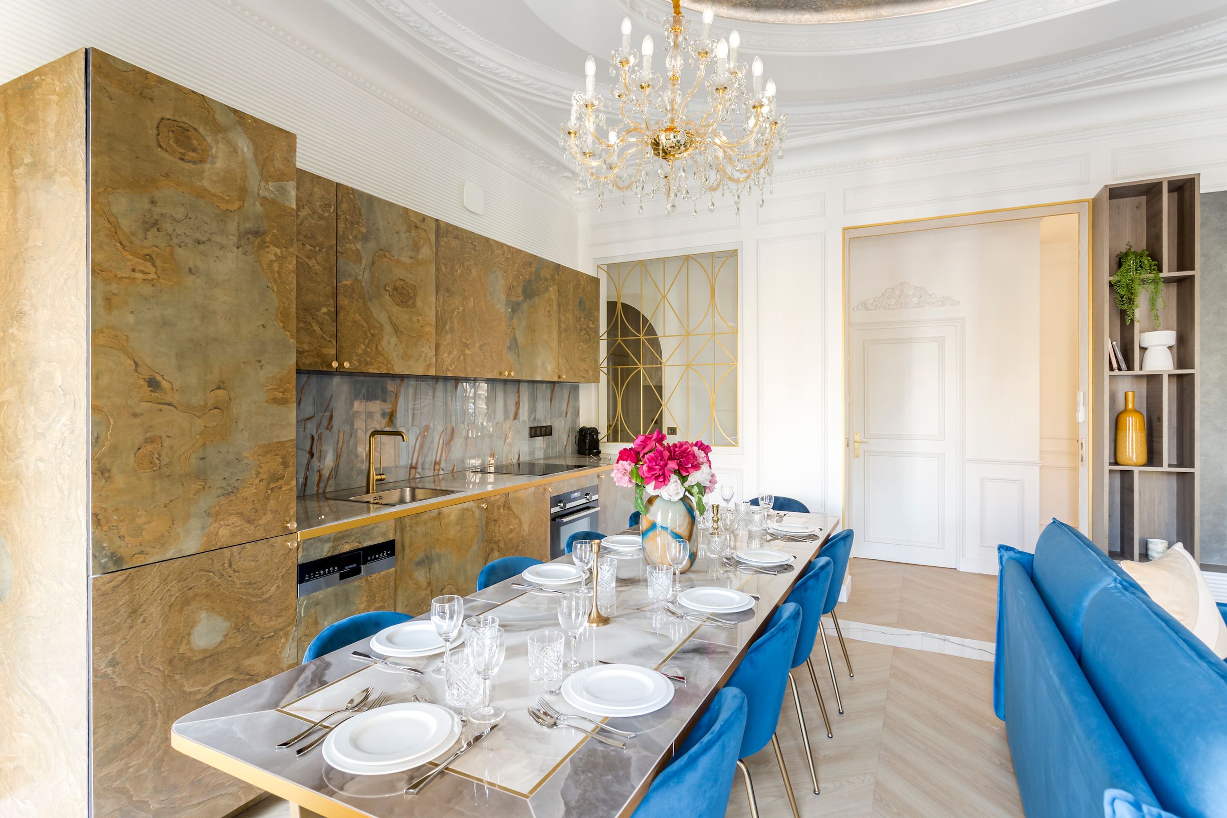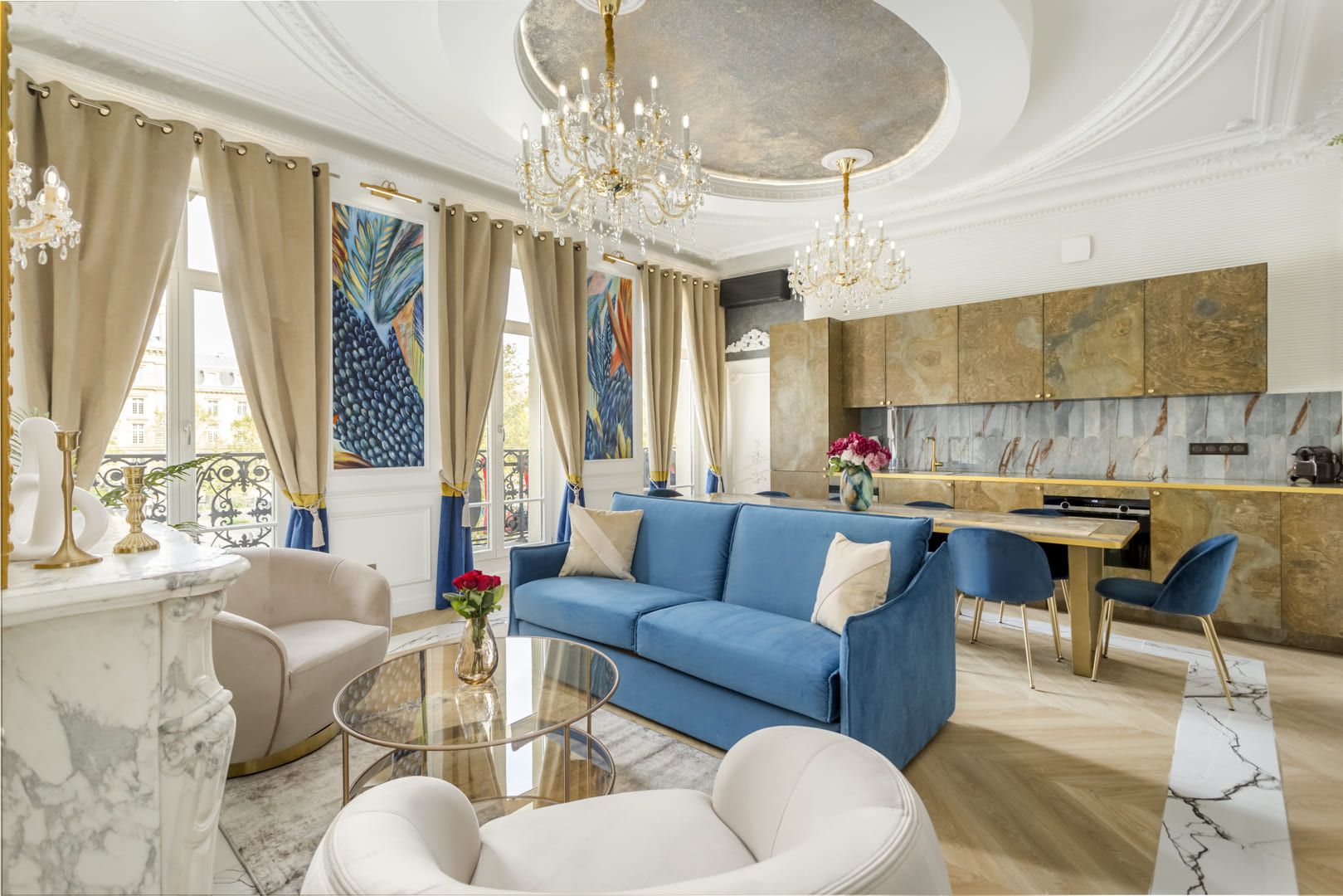 With an address on Place de la République, you’ll find an array of attractions within walking distance of this apartment including the Musée National Picasso-Paris. The Centre Pompidou and vibrant Le Marais are also reachable on foot with its restaurants, bars and boutiques. Housed in a Haussmannian gem, this home has an elegant balcony overlooking the esplanade. There’s a grand open-plan living area which sleeps guests eleven and twelve on a sofa bed – there’s a well-appointed kitchen here too. We also love the main bedroom’s freestanding bathtub and a couple of the bedrooms have a desk if you need to work while away. This place offers a chance to stay amid Paris’s rich historic tapestry.