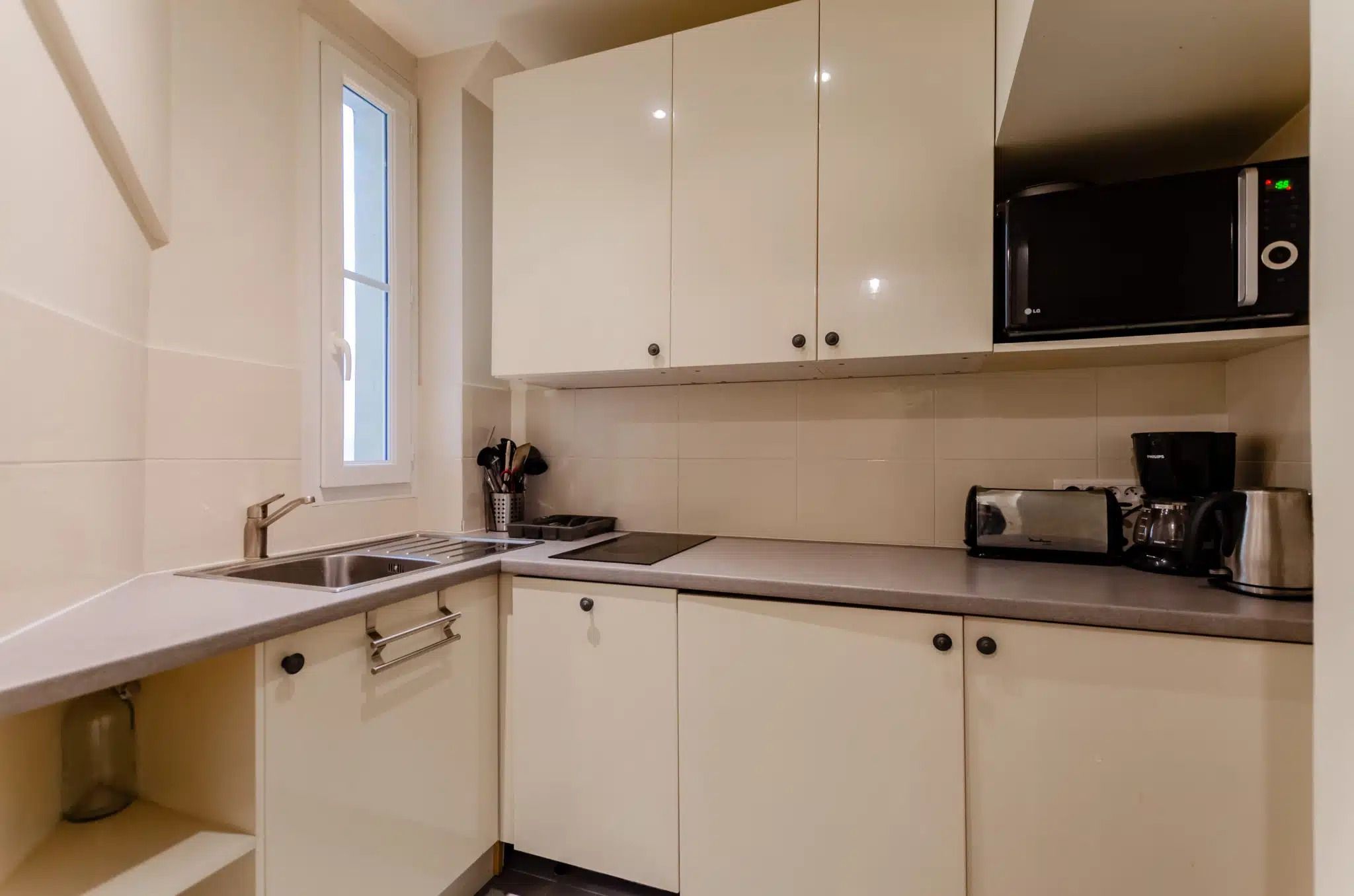 Just steps from the Eiffel Tower, you'd be hard-pressed to find a better location in Paris. It's in the heart of the 7th arrondissement – an upscale area brimming with sights to see and things to do. And, while the apartment itself may be on the compact side – with its cosy kitchen and living room sofa bed – it has a homey atmosphere that makes it rather welcoming. Suited for long-term stays, it would make a solid choice for business travellers and students looking for a home from home in the City of Light.