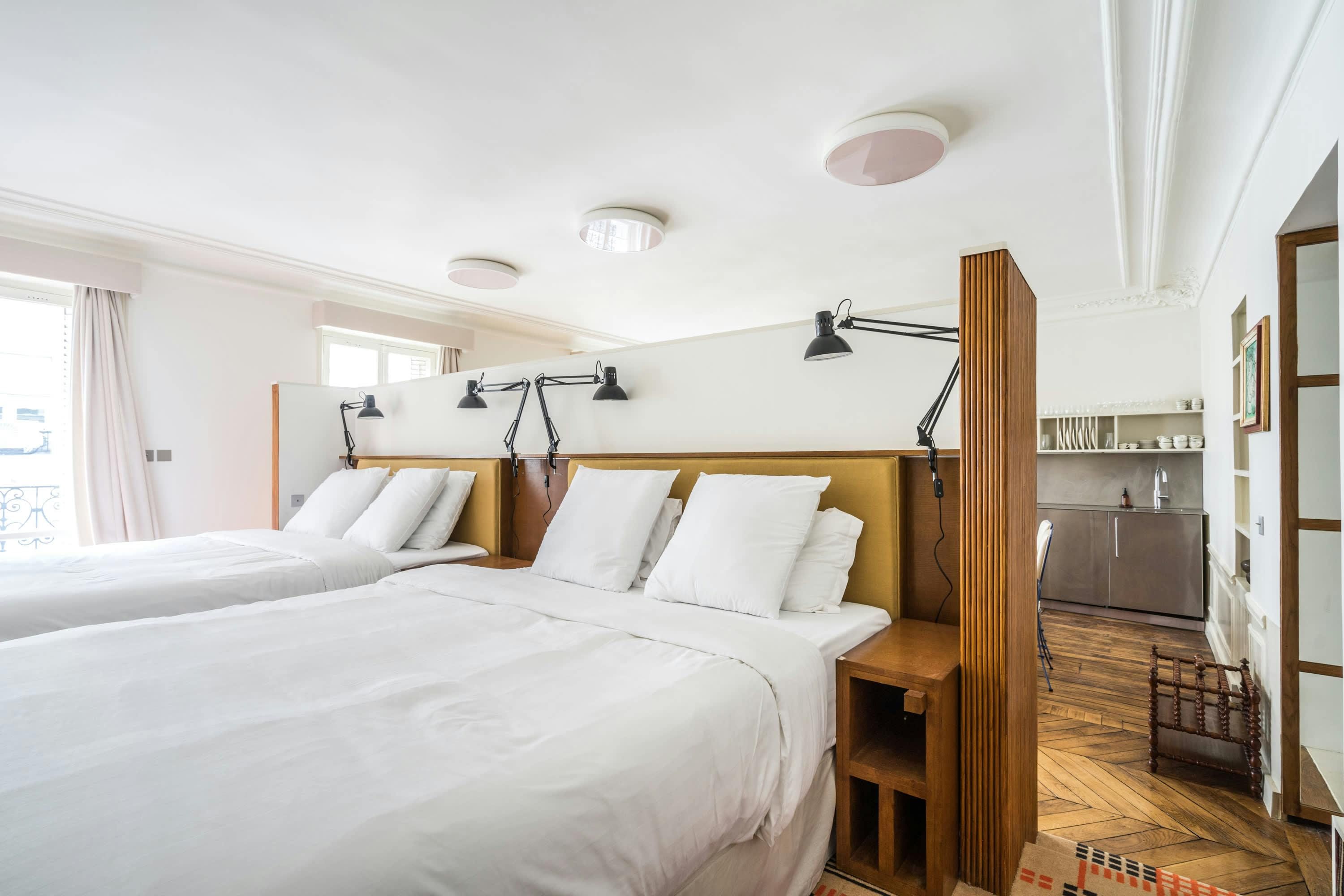 Tucked on a quiet street in the heart of the Sentier district, this Paris apartment is an ideal base for a close-knit family. Privacy is limited here, as four guests will be sleeping on the double beds in the partitioned-off area of the living room, while a further person will need to make do with the sofa bed. Still, with so many beautiful boulevards to explore, we think you’ll be busy out and about sightseeing most of the time. For those iconic landmarks not within walking distance, you can hop on the metro at Réaumur Sebastopol station, mere steps away.