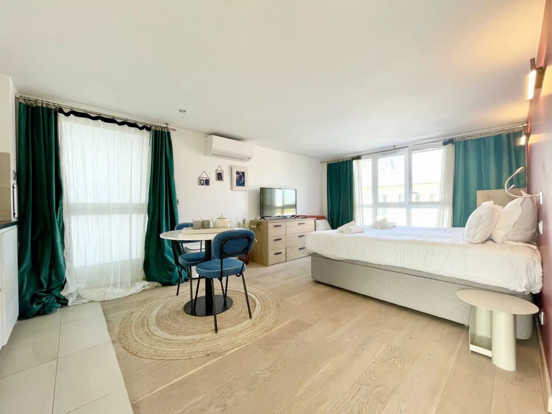 Small yet perfectly formed, this petite pad on the edge of Montmartre is great for a solo city break or a trip to Paris as a two. It has a basic kitchenette for snacks and simple meals, plus a desk for catching up on work. You might miss having a sofa or separate living space, but it’s the location that makes this one a winner. Montmartre is right on your doorstep and you can walk to Sacré-Cœur for spectacular views of the city. Going further afield? Place de Clichy station is moments away, where you can hop on the Metro and reach the Arc de Triomphe in less than ten minutes.