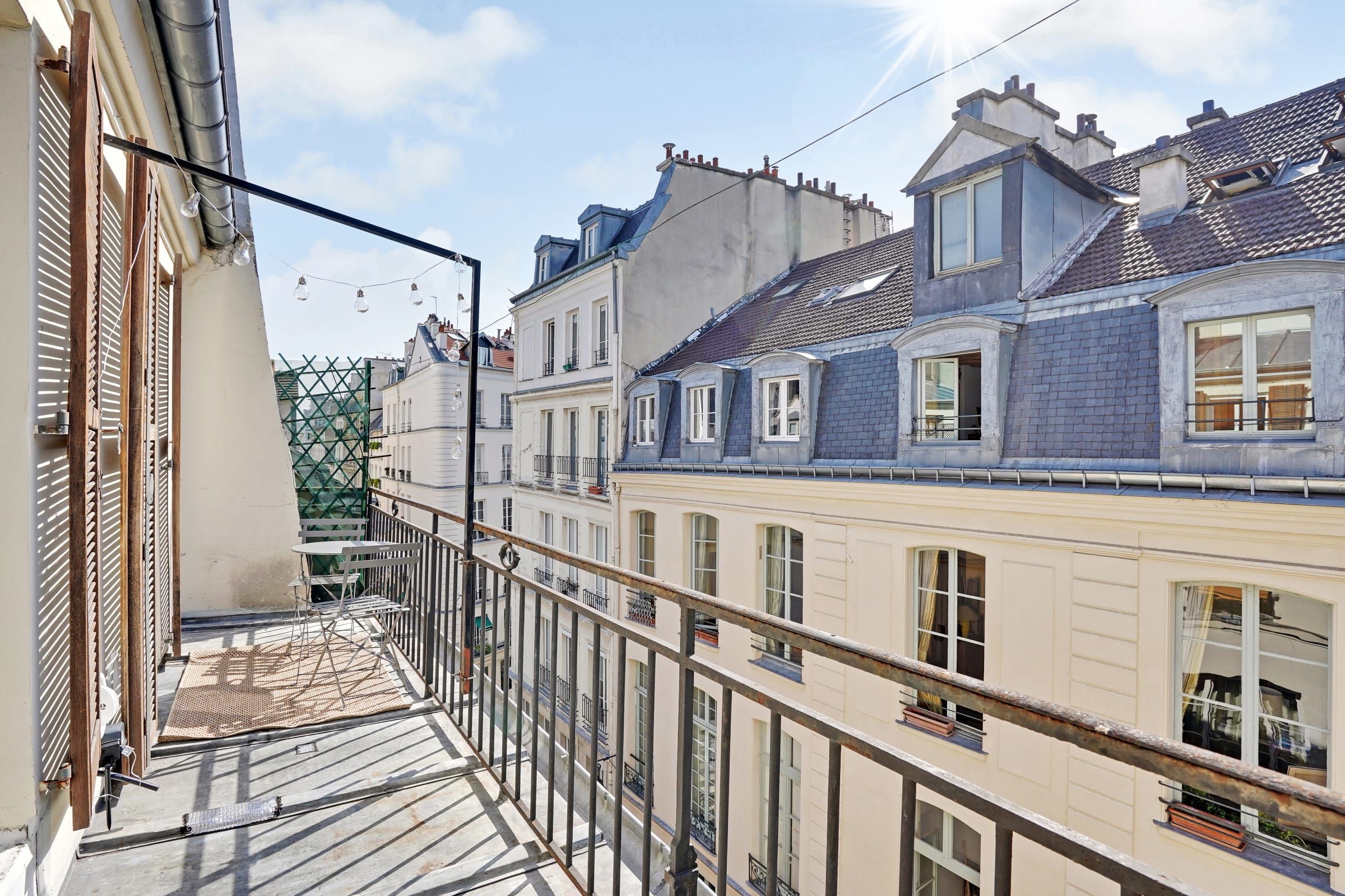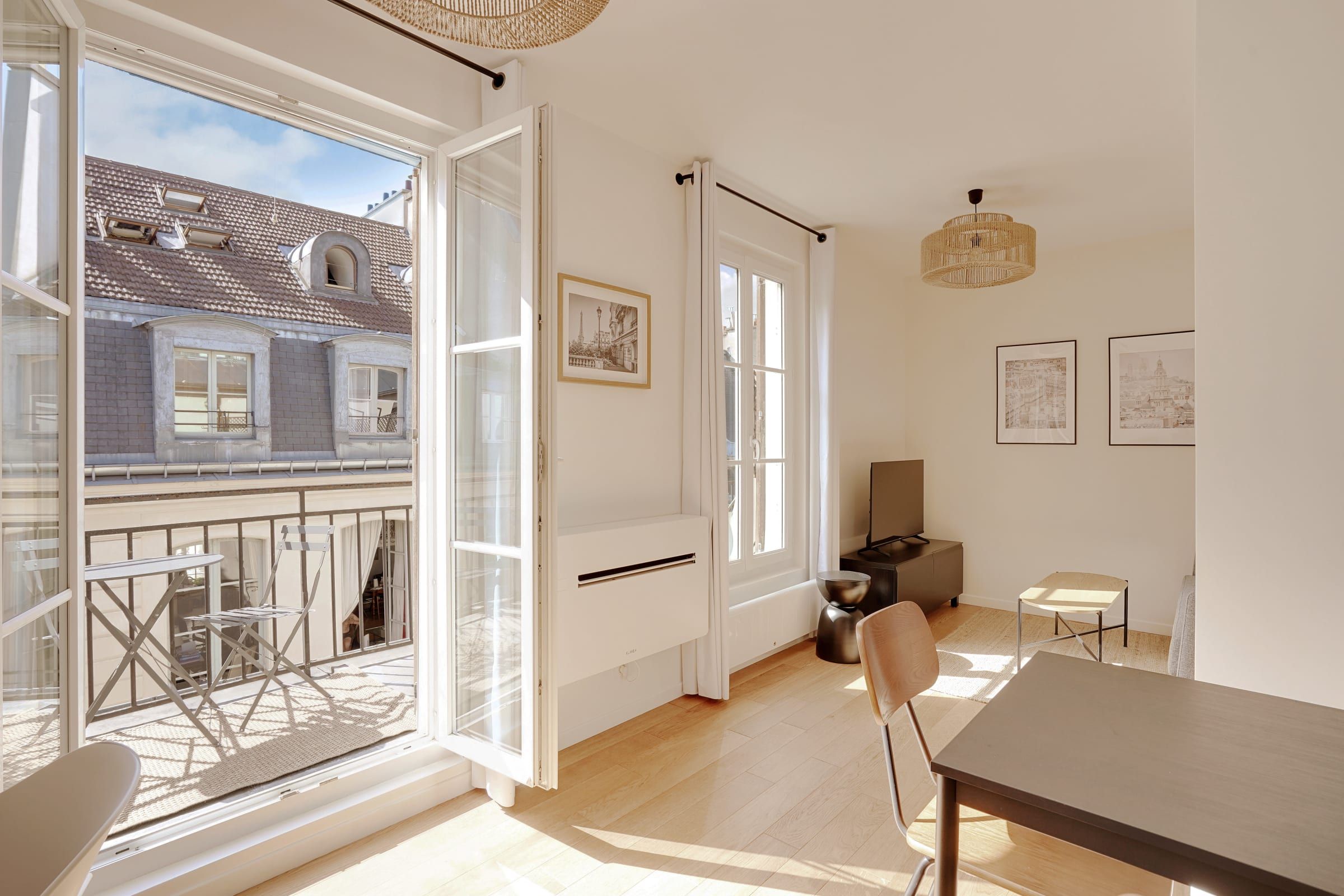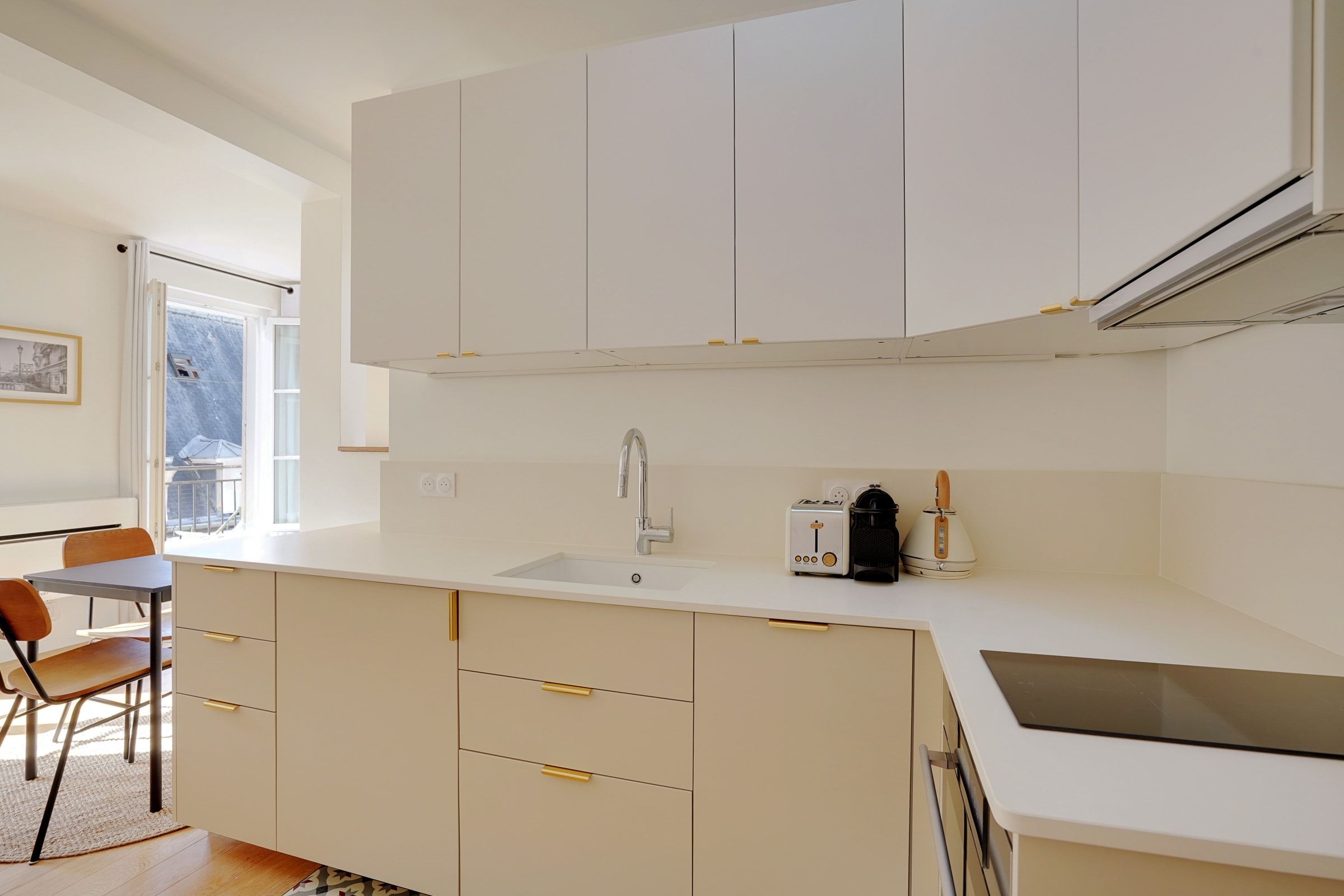 This bright apartment in the heart of the Marais is perfectly placed for exploring Paris. Set on the fourth floor near rue de Bretagne, it features a cosy living space with a sofa, dining table, and fully equipped kitchen, all complemented by large windows. The south-west-facing terrace is the real highlight, providing sunshine throughout the day, making it perfect for lunch outside or evening drinks. It’s a comfortable base for enjoying one of Paris’s most vibrant neighbourhoods.