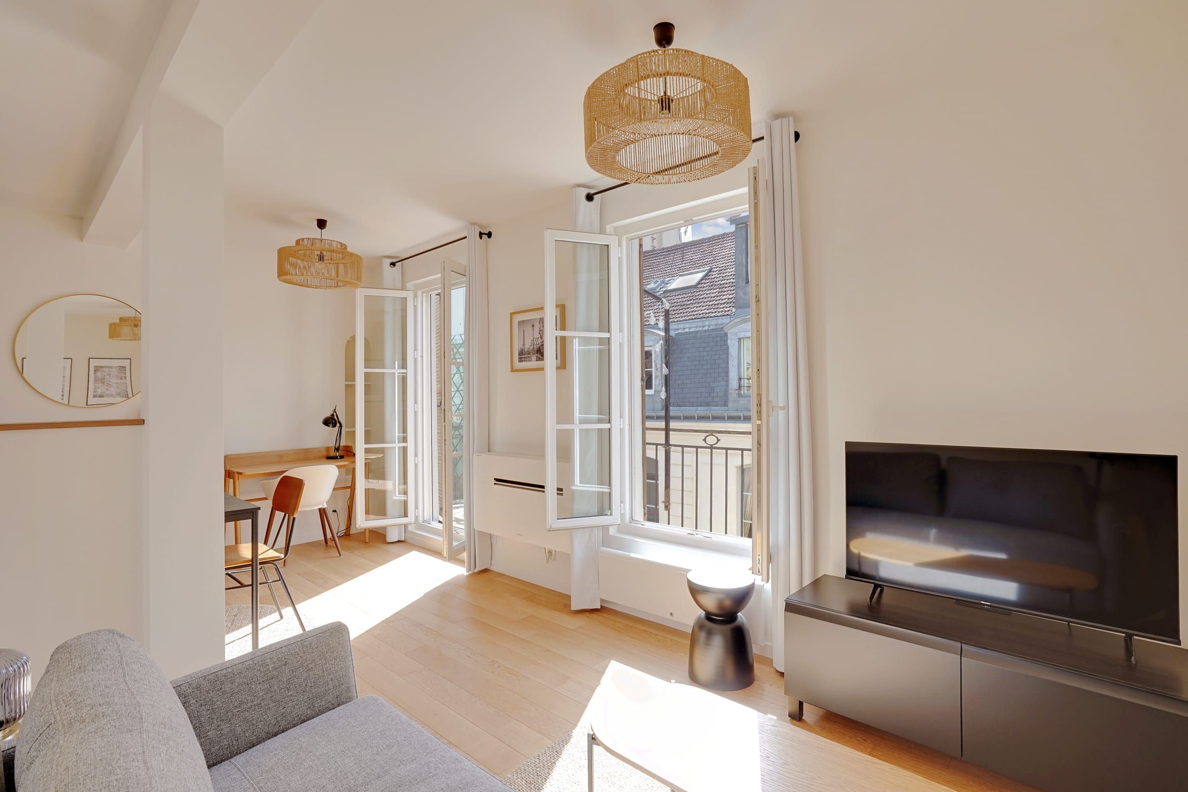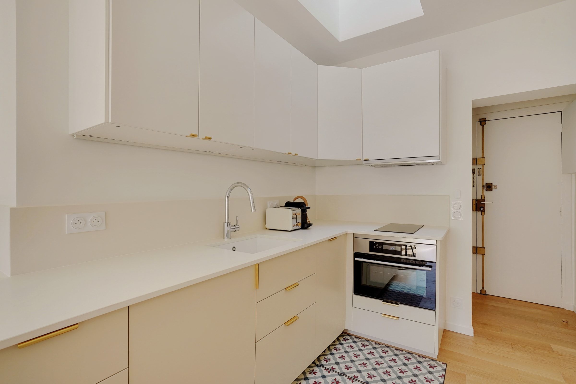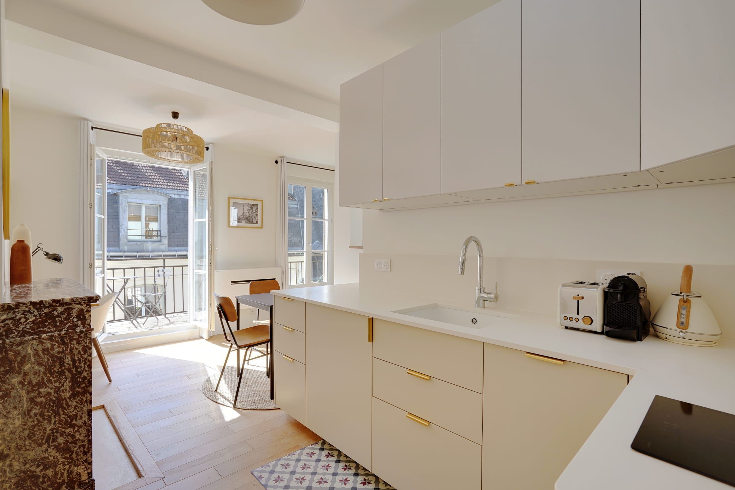 This bright apartment in the heart of the Marais is perfectly placed for exploring Paris. Set on the fourth floor near rue de Bretagne, it features a cosy living space with a sofa, dining table, and fully equipped kitchen, all complemented by large windows. The south-west-facing terrace is the real highlight, providing sunshine throughout the day, making it perfect for lunch outside or evening drinks. It’s a comfortable base for enjoying one of Paris’s most vibrant neighbourhoods.