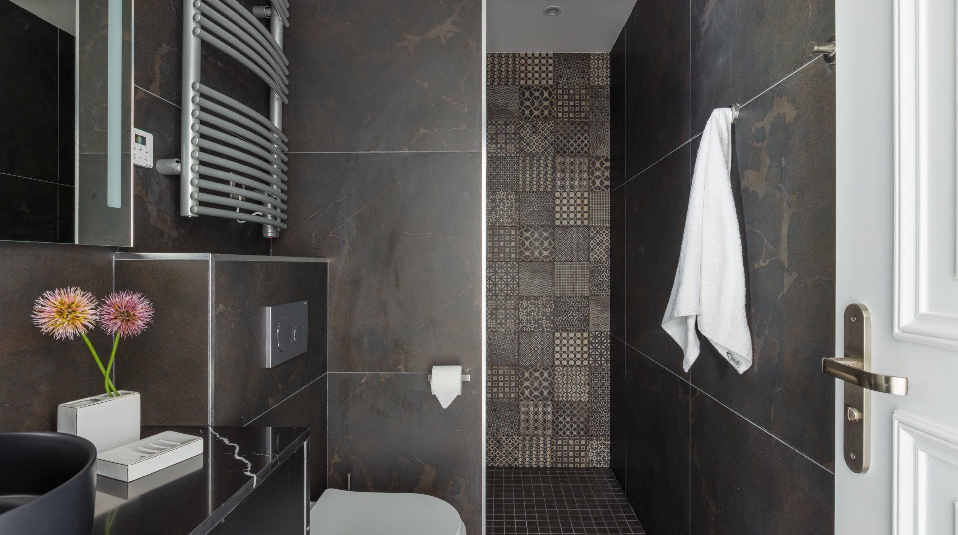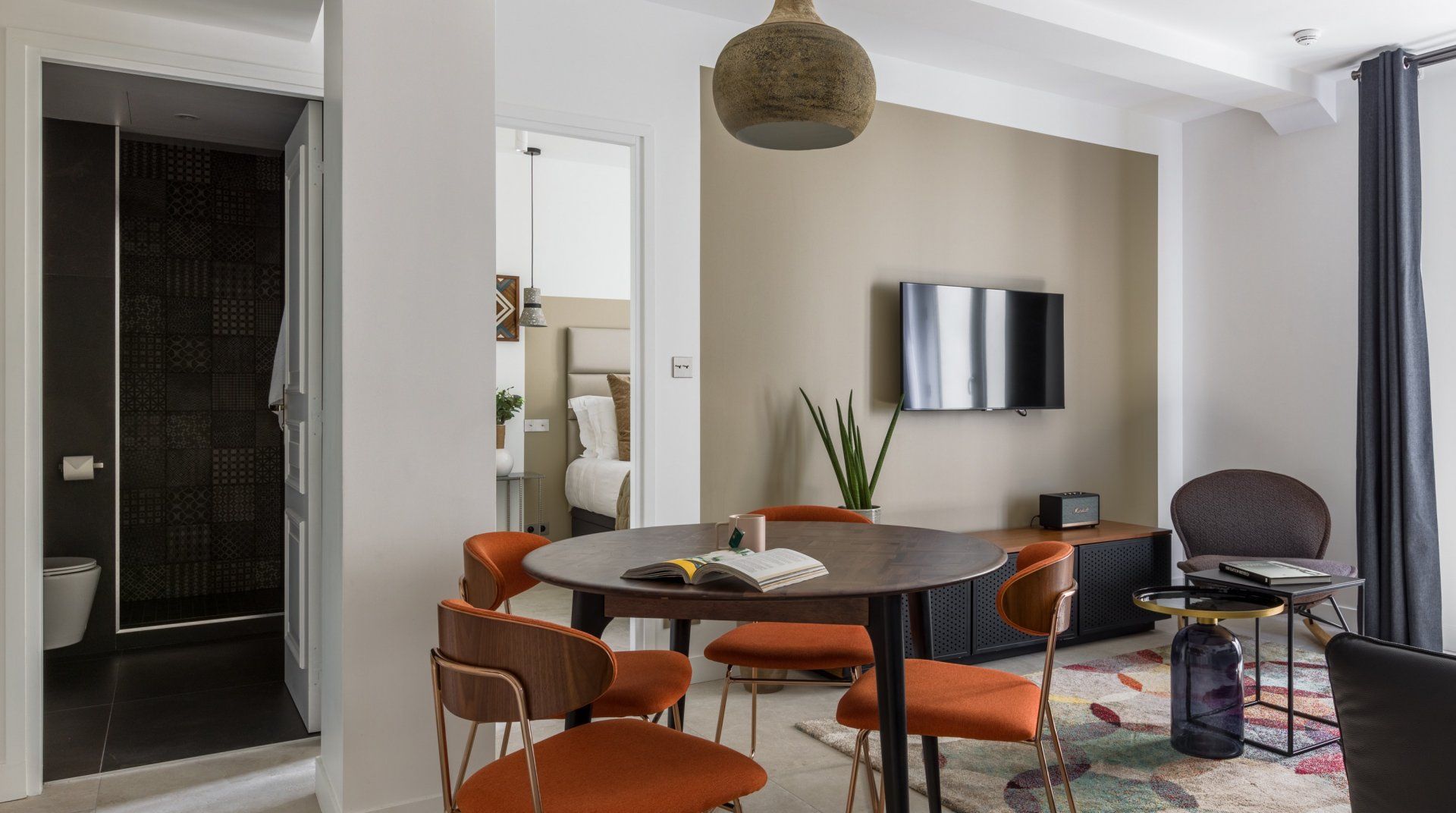 Tucked down a tree-lined boulevard behind the iconic Champs Elysées (a three-minute walk away), this apartment radiates luxury and cool. The black and gold motif wouldn’t look out of place in any of the fashion boutiques a few steps away, and every curated mid-century lamp and quartz counter-top gleams with joie de vivre. The apartment sits in a serviced building where you can request restaurant and taxi bookings at the front desk. Several communal lounges and lobbies offer somewhere to relax in winged armchairs, or with a game of pool perhaps. Or, retreat to your own stylish living room for the evening and put some Edith Piaf on the Bluetooth speaker. Sleep comes easy between silk, while wake-ups are a treat when it means relaxing under the rainfall shower and enjoying your morning coffee by the Juliet balconies. When it comes to sightseeing, you’ve got plenty to see and do within easy walking distance, including the Arc de Triomphe (a five-minute walk), the banks of the Seine (a fifteen-minute walk) and Paris’ most iconic sight of all – the Eiffel Tower – thirty minutes away on foot.