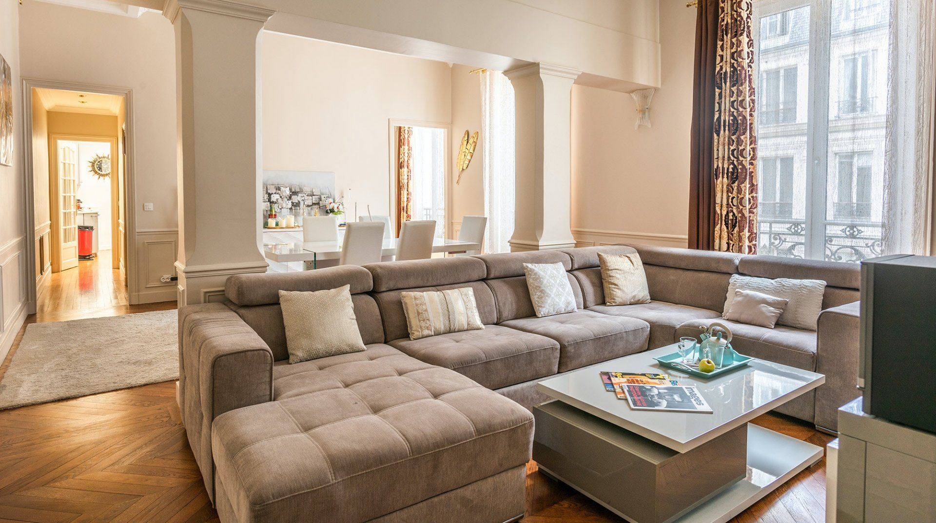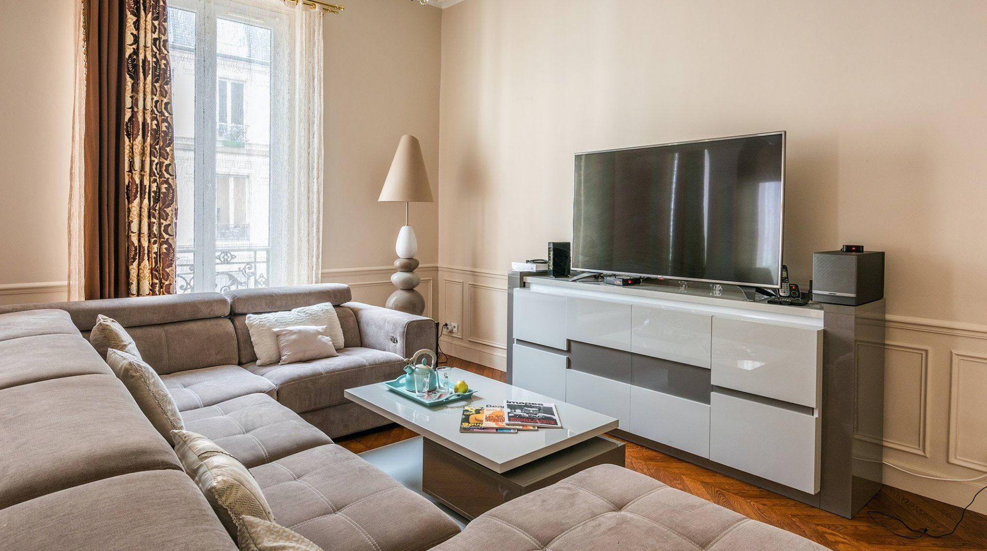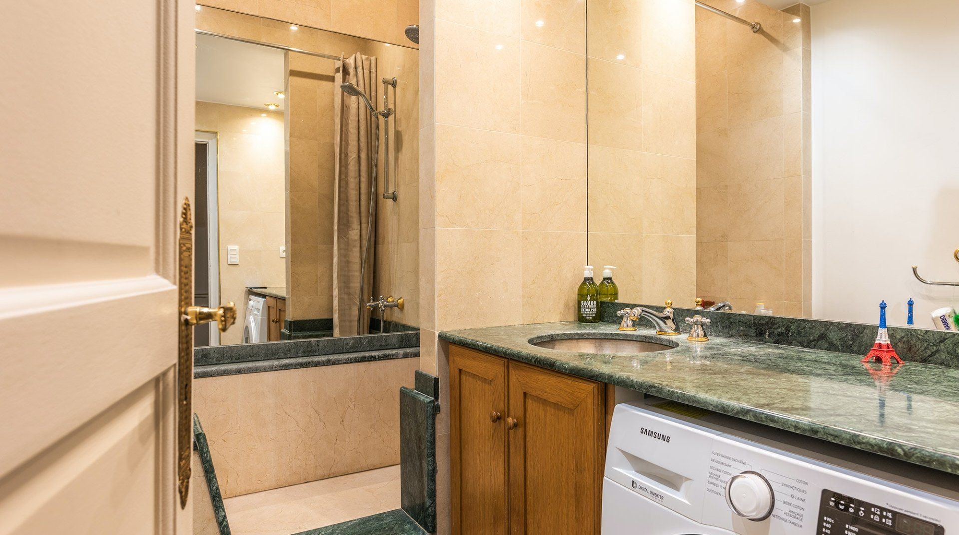 This très chic home just by the exclusive Champs-Élysées boasts minimalist interiors with a few bold touches, packing some real personality. Although the kitchen is not the largest we've seen, high ceilings and large French windows in the living room create an airy and bright communal space with a generous dining table that's fit for a banquet. A group looking to shop 'til they drop in the nearby high-end boutiques will find it a perfect match.