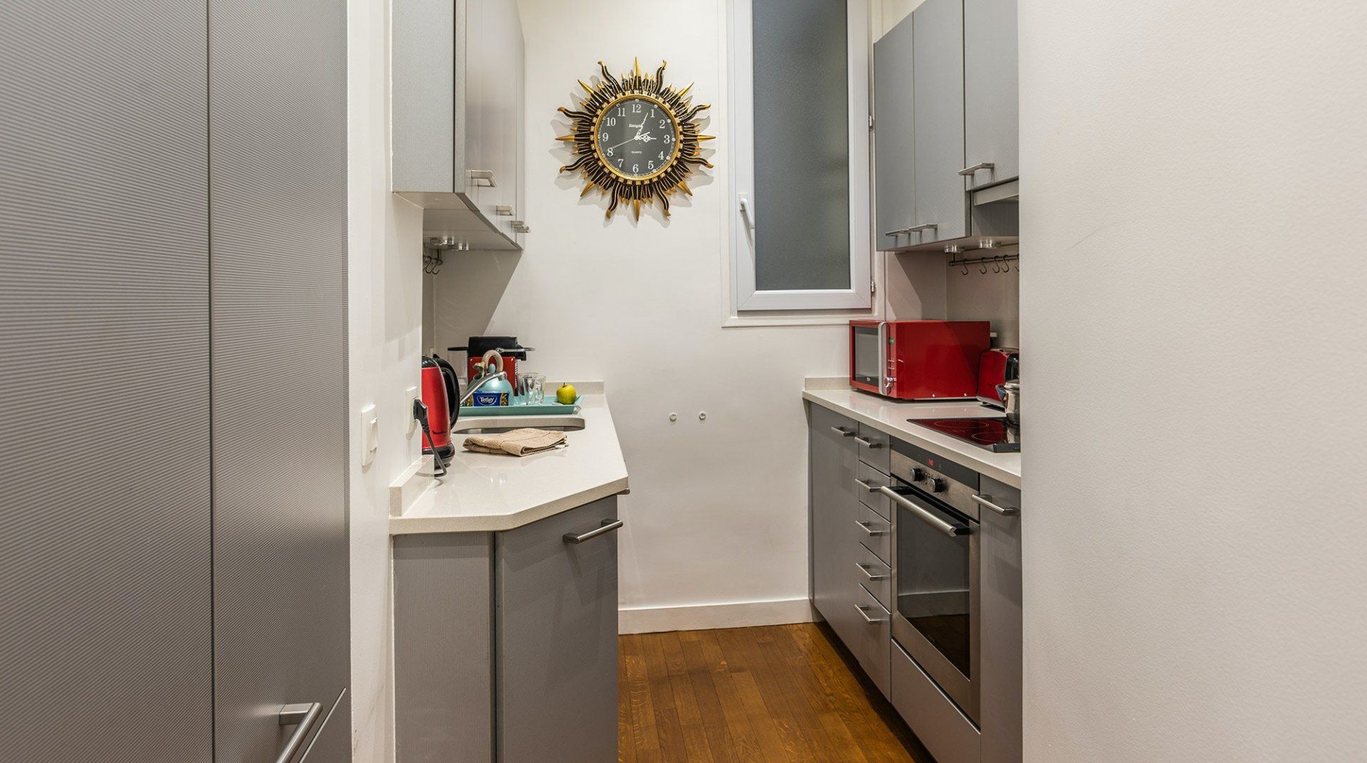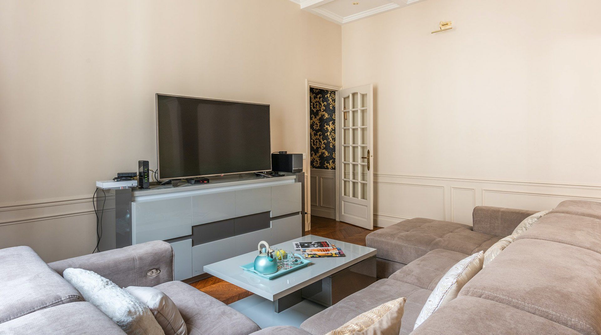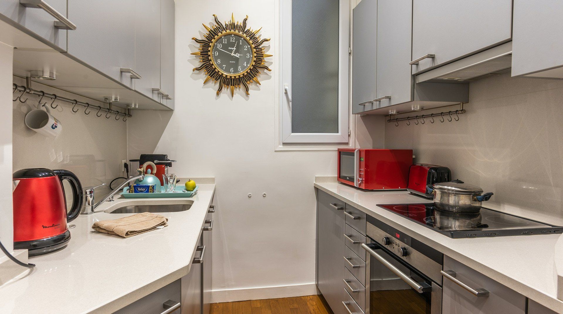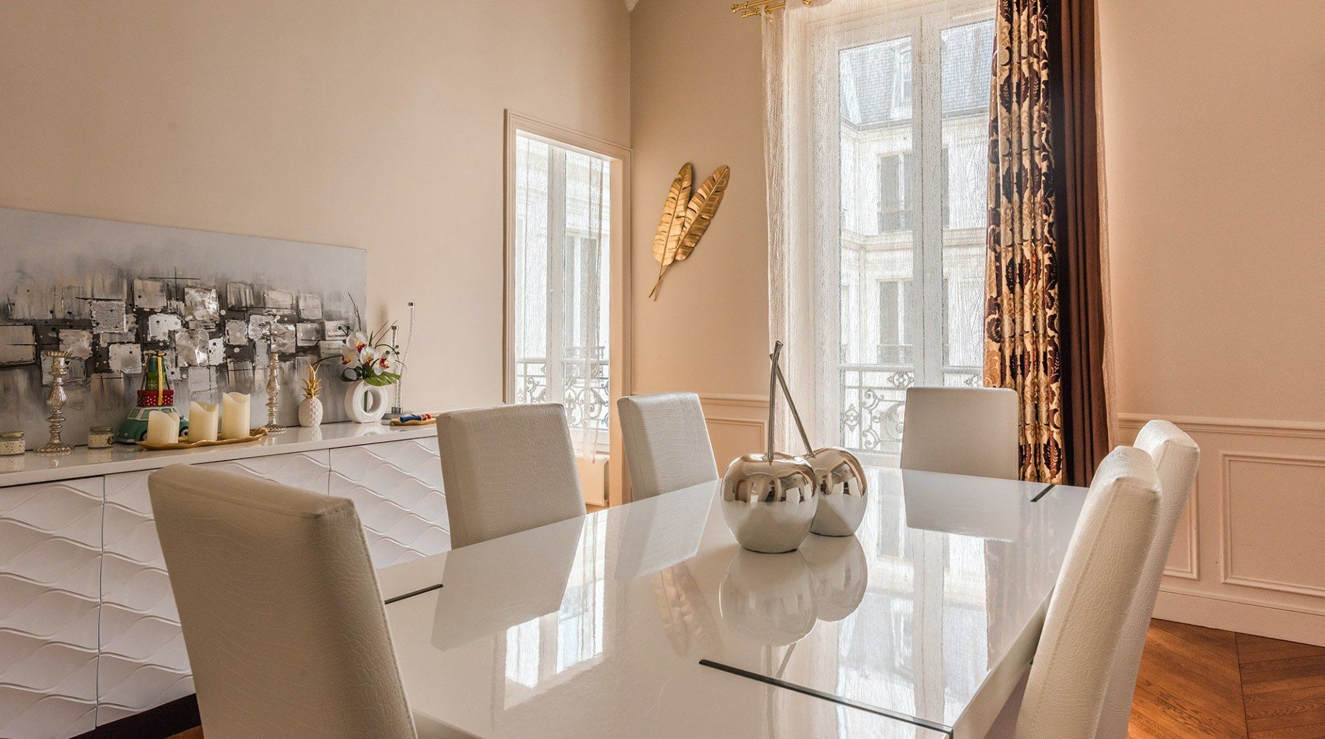 This très chic home just by the exclusive Champs-Élysées boasts minimalist interiors with a few bold touches, packing some real personality. Although the kitchen is not the largest we've seen, high ceilings and large French windows in the living room create an airy and bright communal space with a generous dining table that's fit for a banquet. A group looking to shop 'til they drop in the nearby high-end boutiques will find it a perfect match.