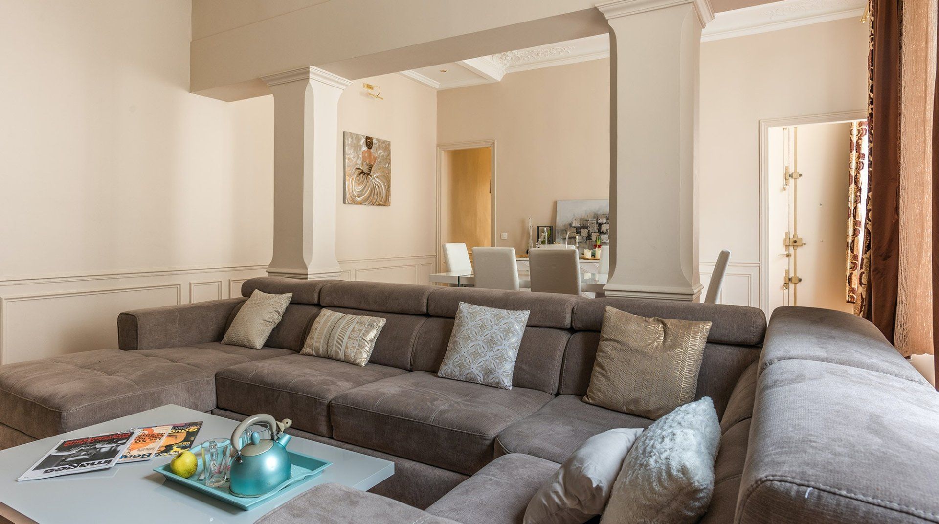 Home truths: *Please note that your host has replaced the one Taupe sofa in the main picture - it now has two new beautiful green sofas in place. We are yet to receive professional photos of the replacement.