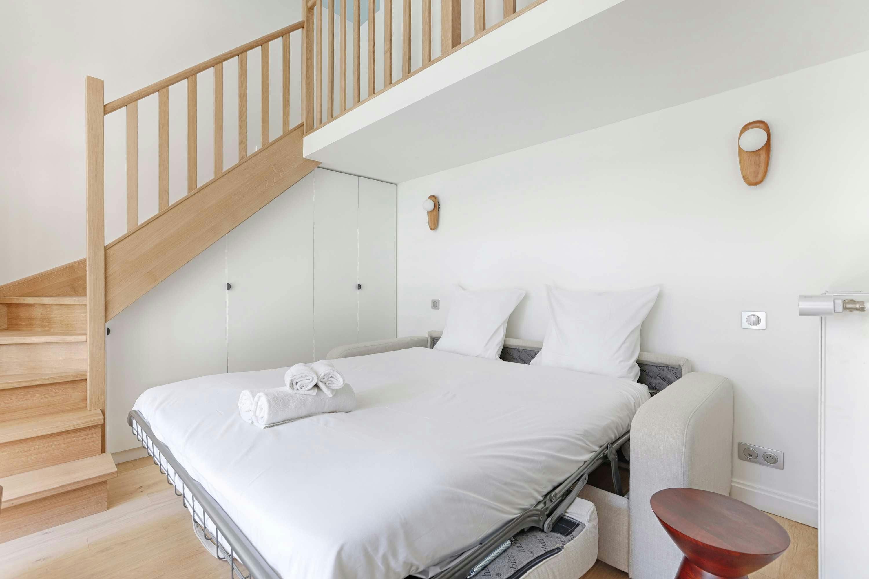 Experience Parisian elegance in this bright duplex positioned in a prestigious area of the city. This duplex offers privacy in a quiet corner of the capital, perfect for relaxing after a day exploring the city. Beyond its chic interiors, the apartment’s prime location puts you just minutes from the Arc de Triomphe, Champs-Élysées boutiques, and gourmet eateries, while the nearby Bois de Boulogne invites morning walks or sunset strolls away from the crowds. Ultra-fast Wi-Fi, a smart TV, and air-conditioning make it feel like a comfortable home-from-home. With secure 24-hour residence access, peace of mind is guaranteed, letting you enjoy the best of Paris effortlessly.