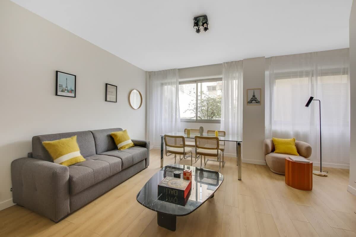 Set in south-west Paris, near the Eiffel Tower, this apartment offers a great location for exploring the city. It’s bright and comfortable with a spacious bedroom, a cosy living room with a sofa bed, and a modern, fully equipped kitchen. The location is what makes this place fantastique, with shops, cafes, restaurants, and the Beaugrenelle shopping centre all nearby. Plus, Paris’s landmarks are only a short metro ride away. It's a convenient base for a Parisian adventure.