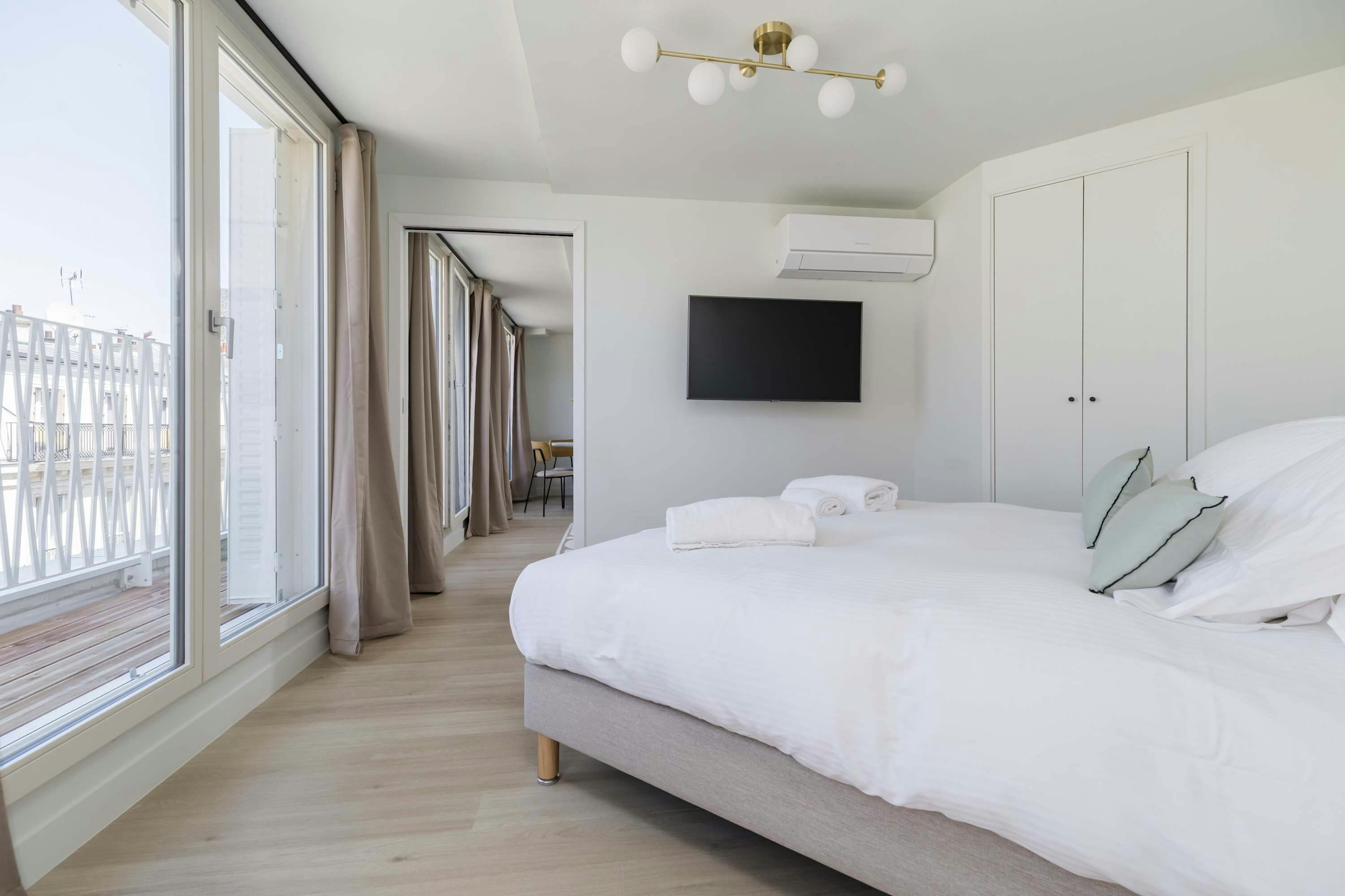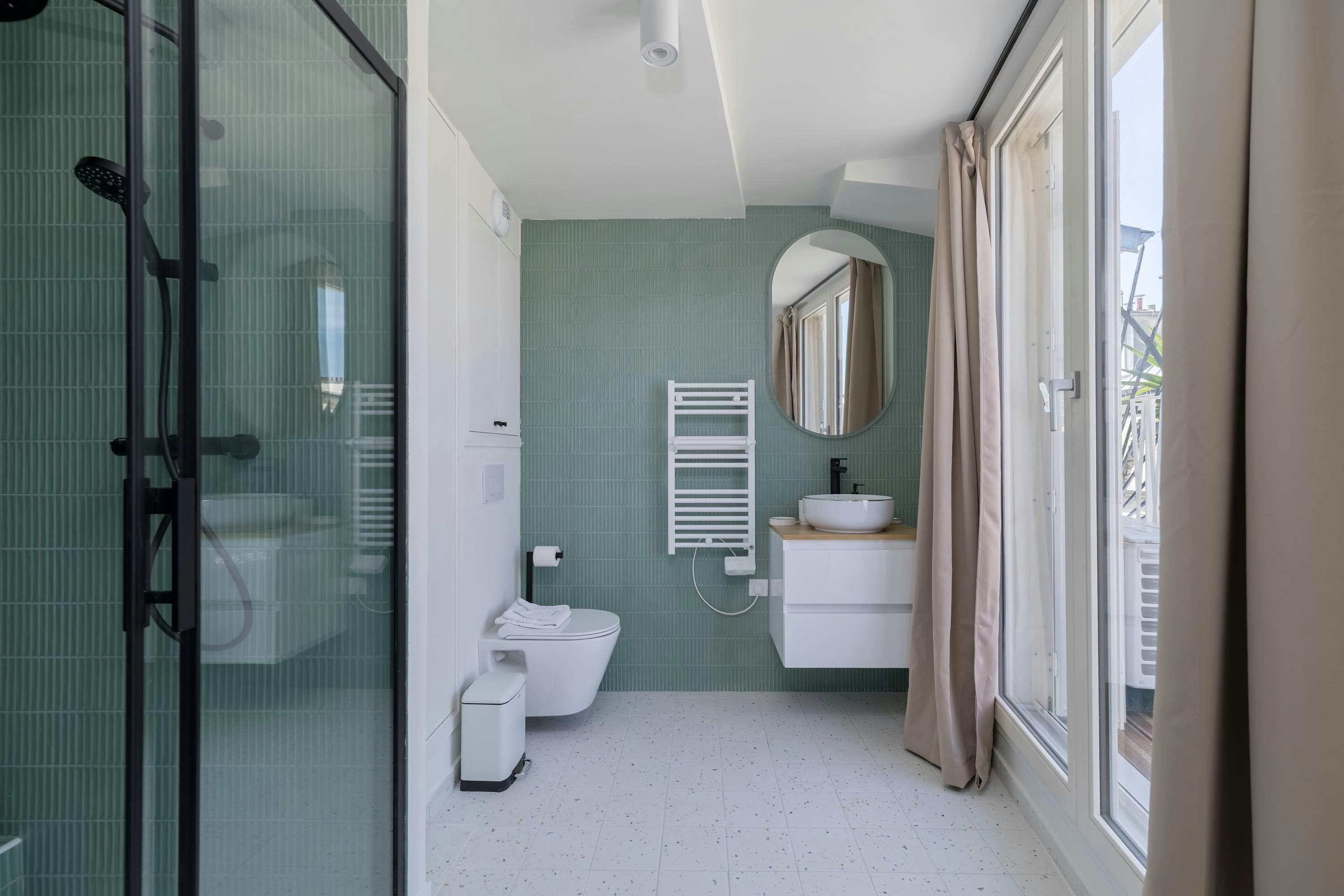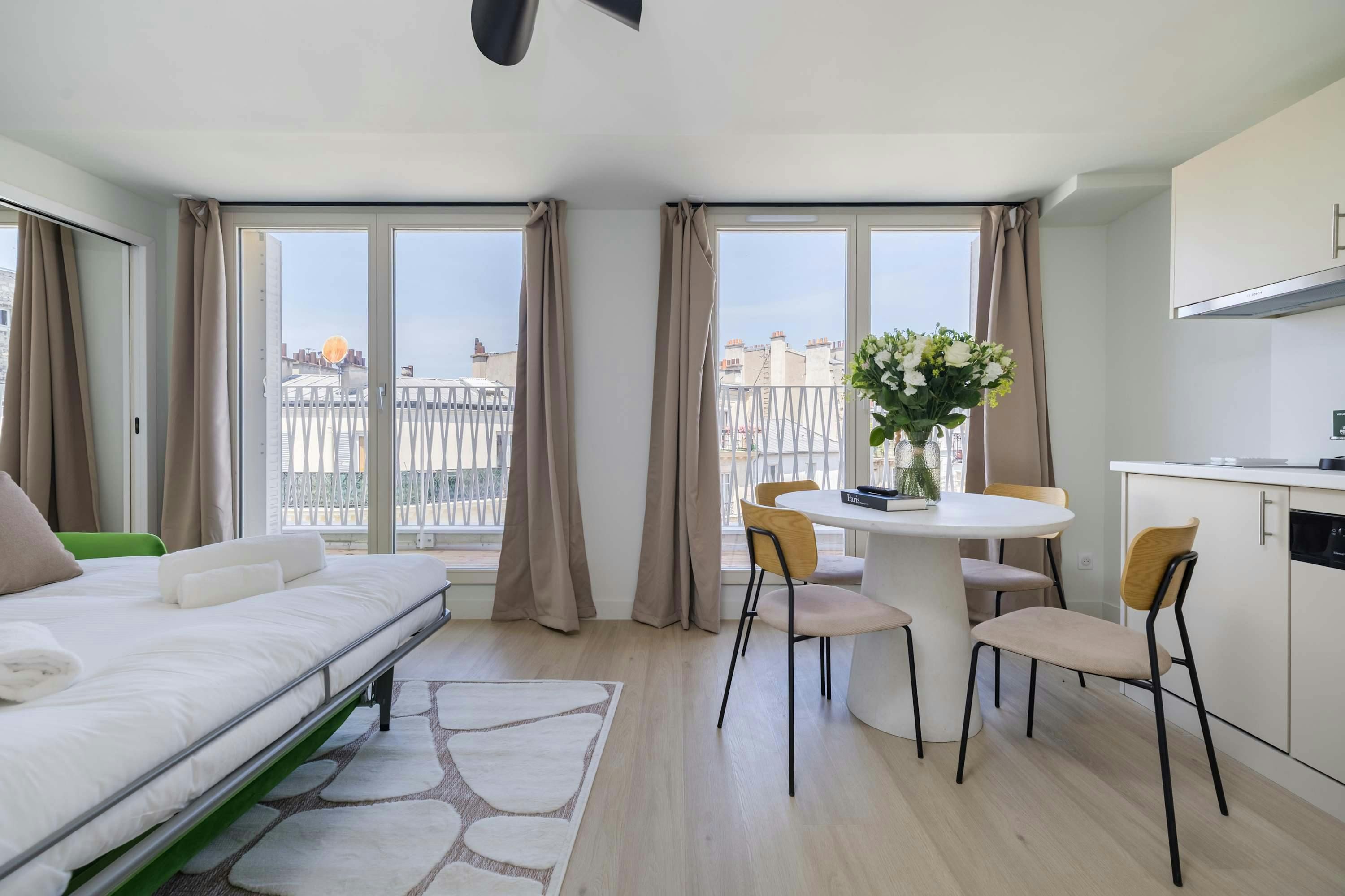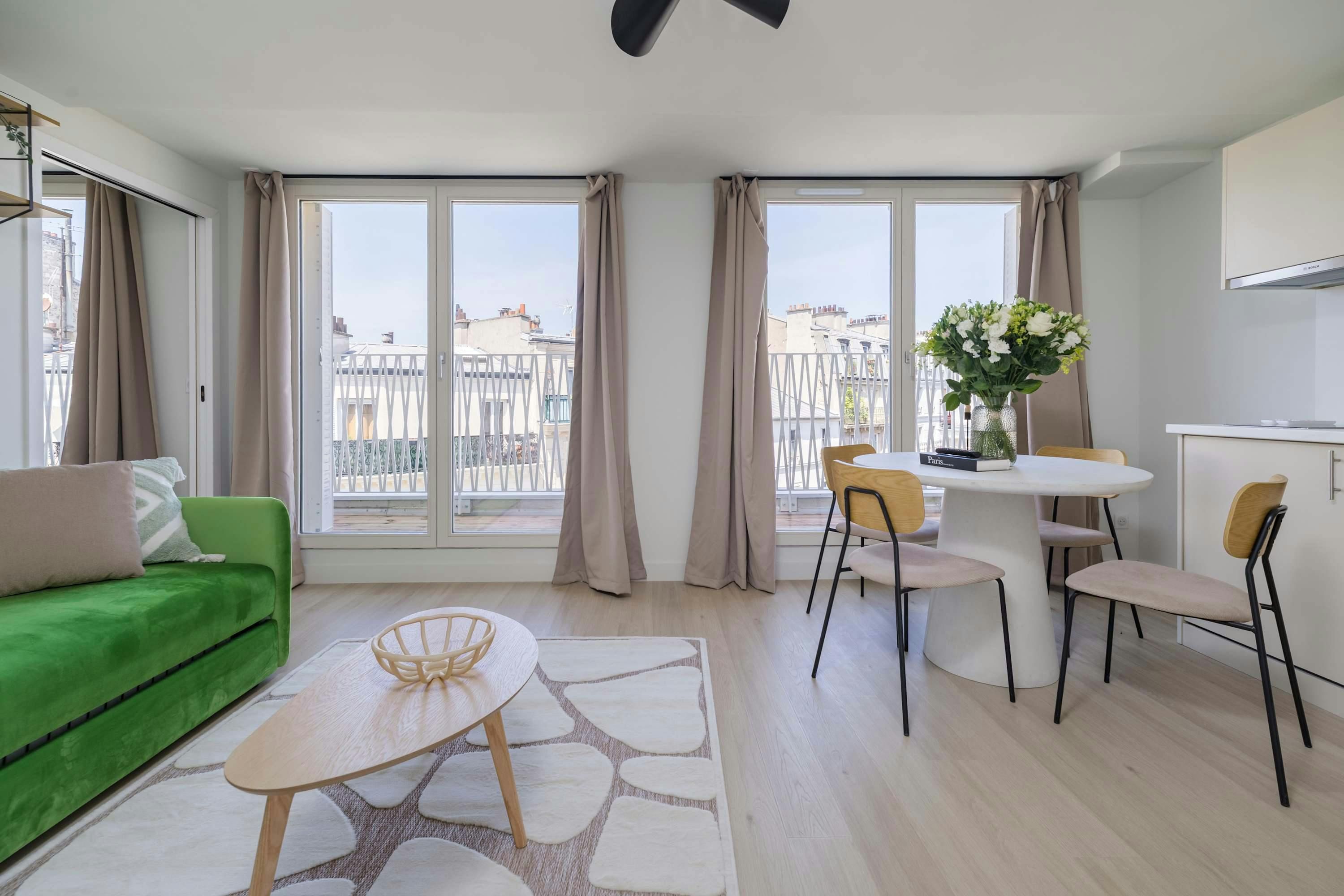 If you like being surrounded by plenty of green spaces, then this apartment’s address is ideal. Montmartre can also be reached on foot or by the excellent public transport links nearby. There are a variety of restaurants in the neighbourhood too, featuring cuisine from around the world. We love the views from this home's narrow balcony of the street’s typically Parisian architecture. Inside, the open-plan living area is bright, and it also sleeps guests three and four on a sofa bed. This apartment offers a comfortable and convenient base for your stay.