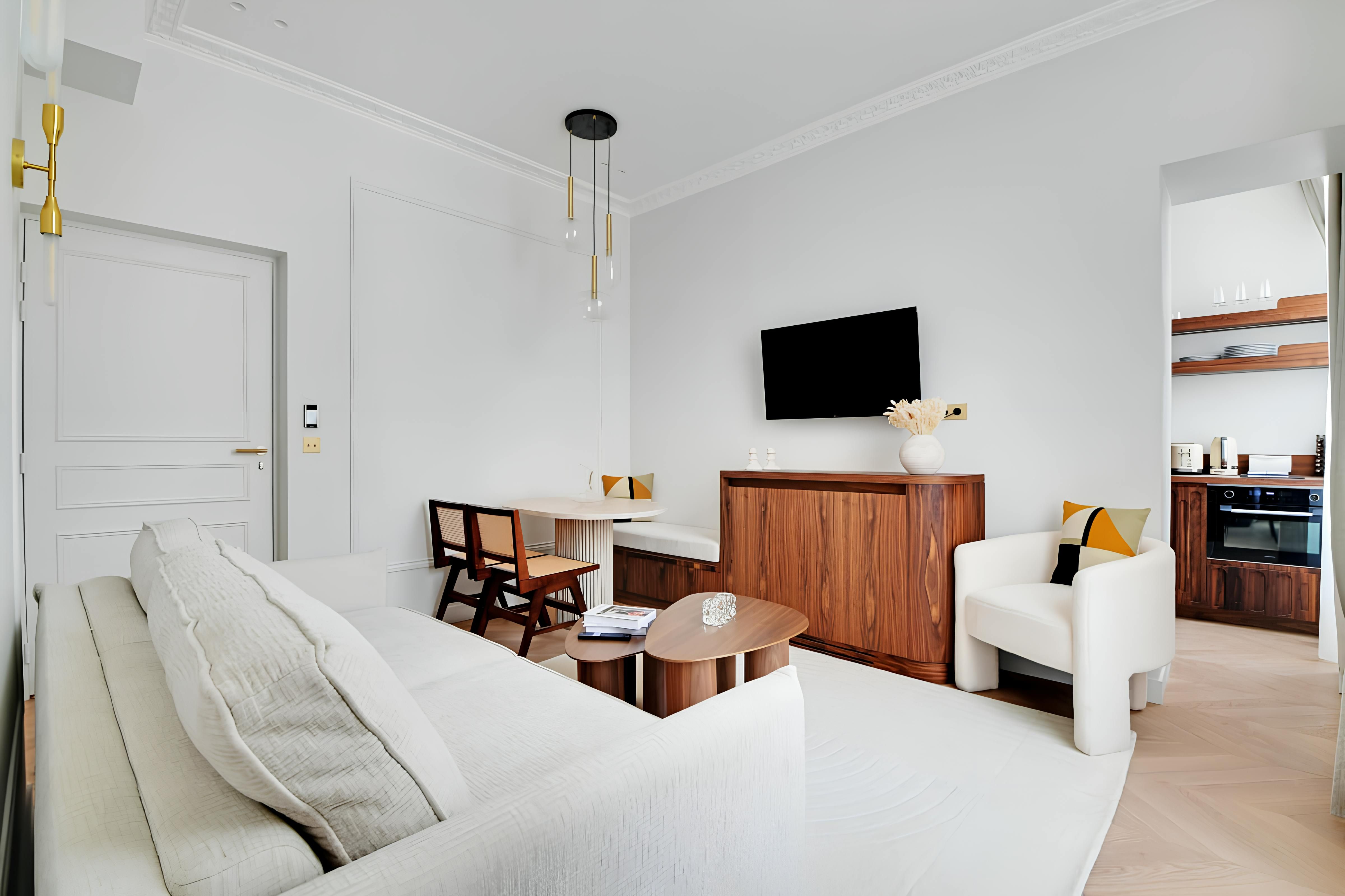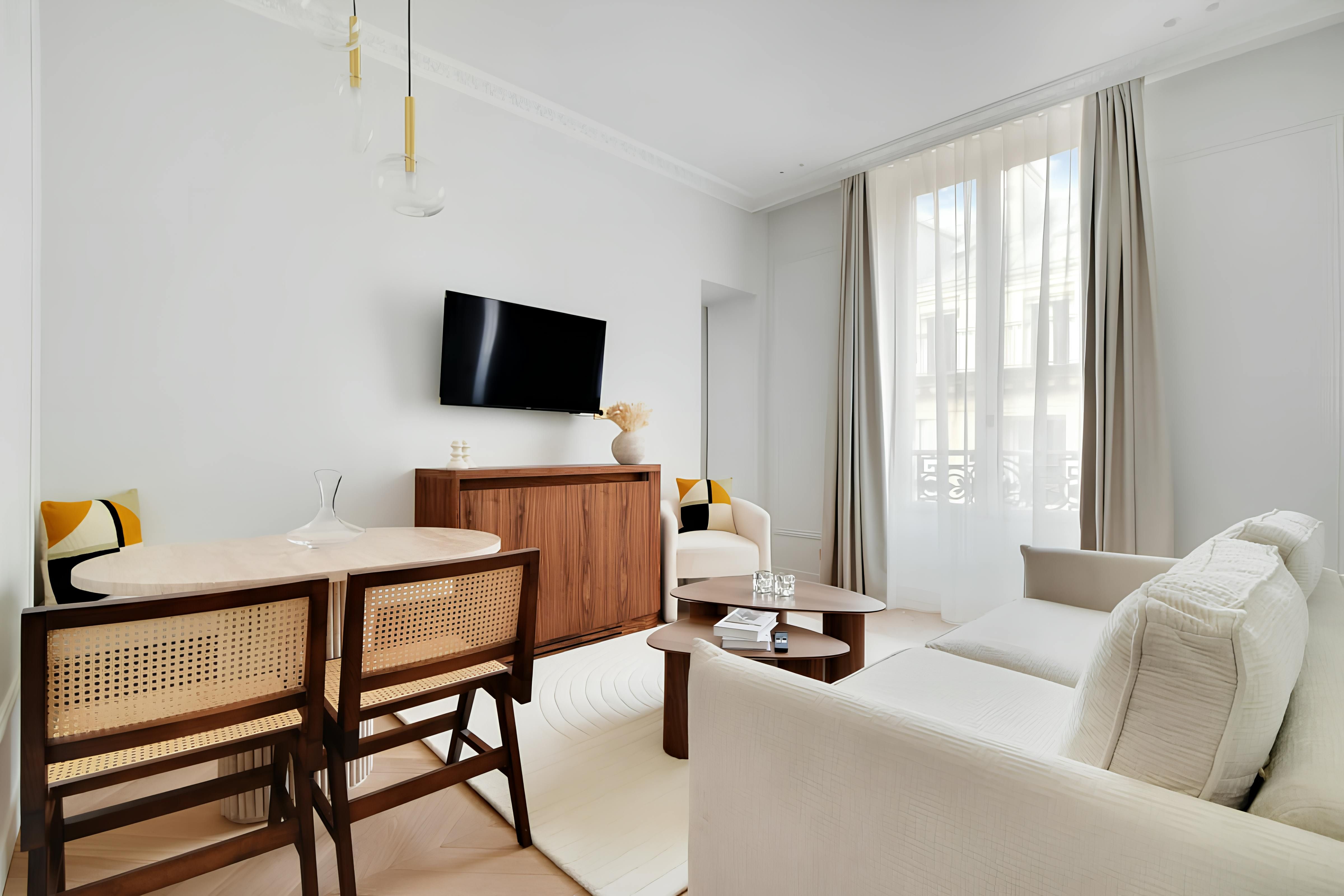 There’s a range of attractions within a short walk of this apartment including the Place de la Concorde and the Palais Garnier. For some of the city's best shopping, and dining, the Champs-Élysées is within walking distance too. Set in a Haussmannian building, this apartment has a well-designed living area which also sleeps two guests on a sofa bed. The separate kitchen is quite compact, but it has everything you need if you prefer to cook at home. Whether you’re a couple, friends or a family, the dedicated team here are available to ensure you have an exceptional stay.