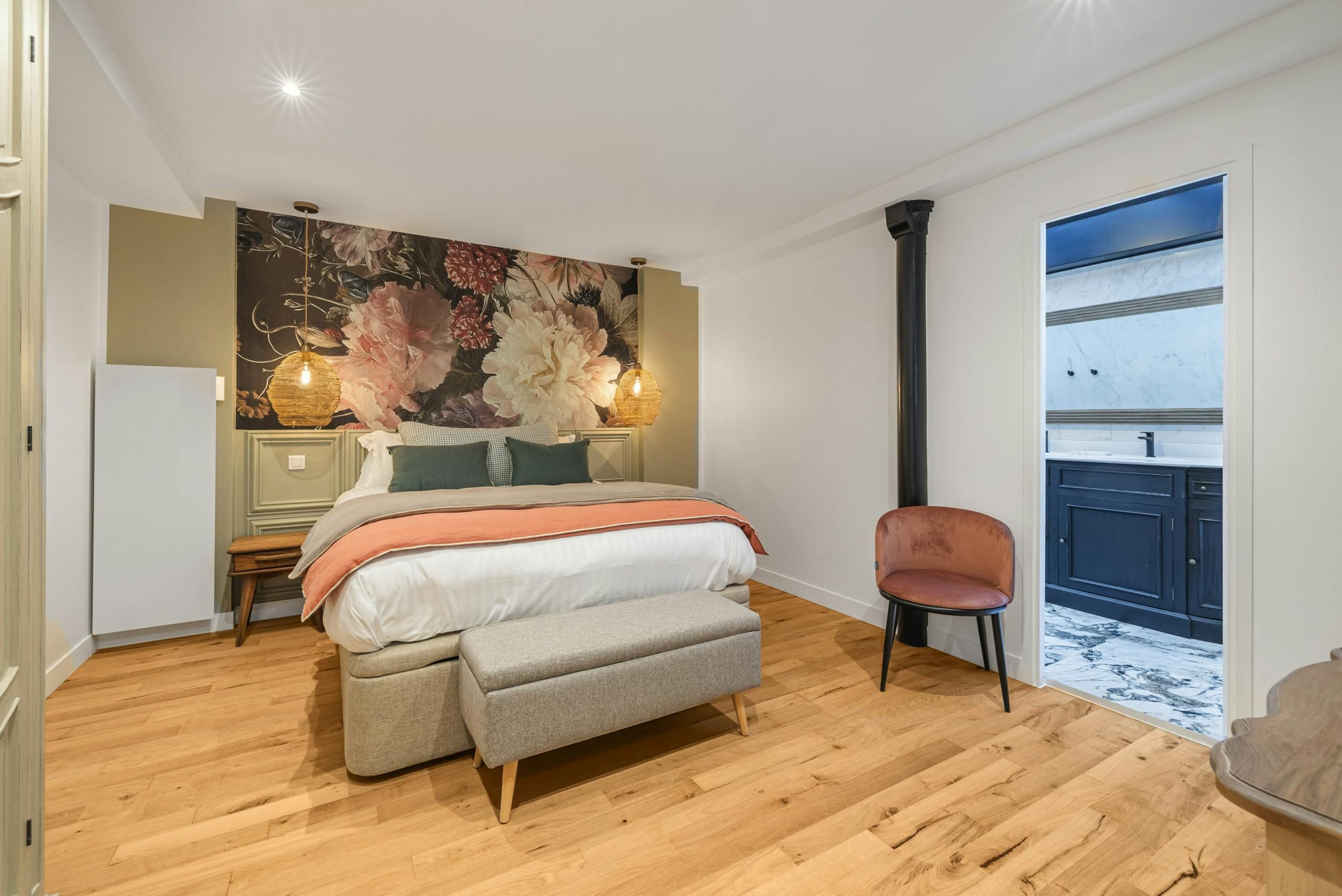 Located in a courtyard, this apartment is close to all the boutiques and restaurants Le Marais has to offer. The decor of this home wouldn’t look out of place in a British country residence – we love the main bedroom’s en-suite, too. This place is ideal for a family or a group of friends, though bear in mind that at full capacity, two guests will be sleeping on a sofa bed in the living space. That said, the open-plan living area is a spacious room.