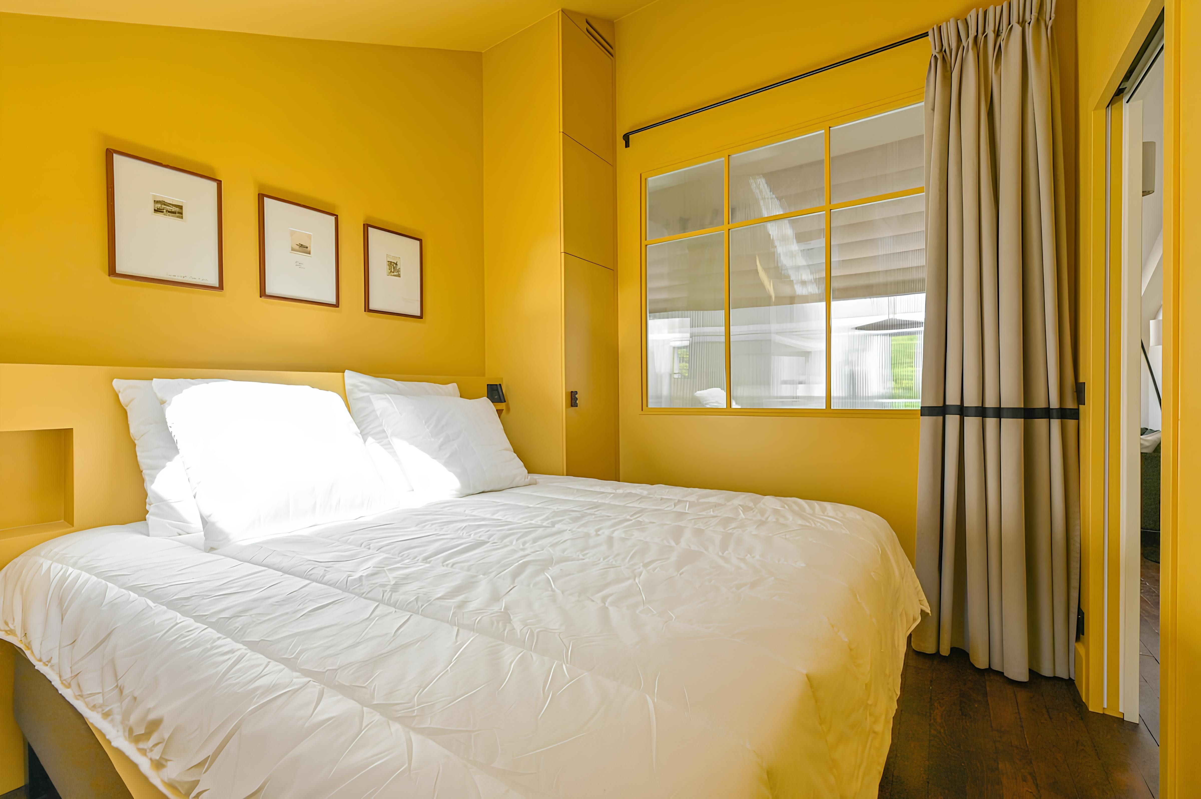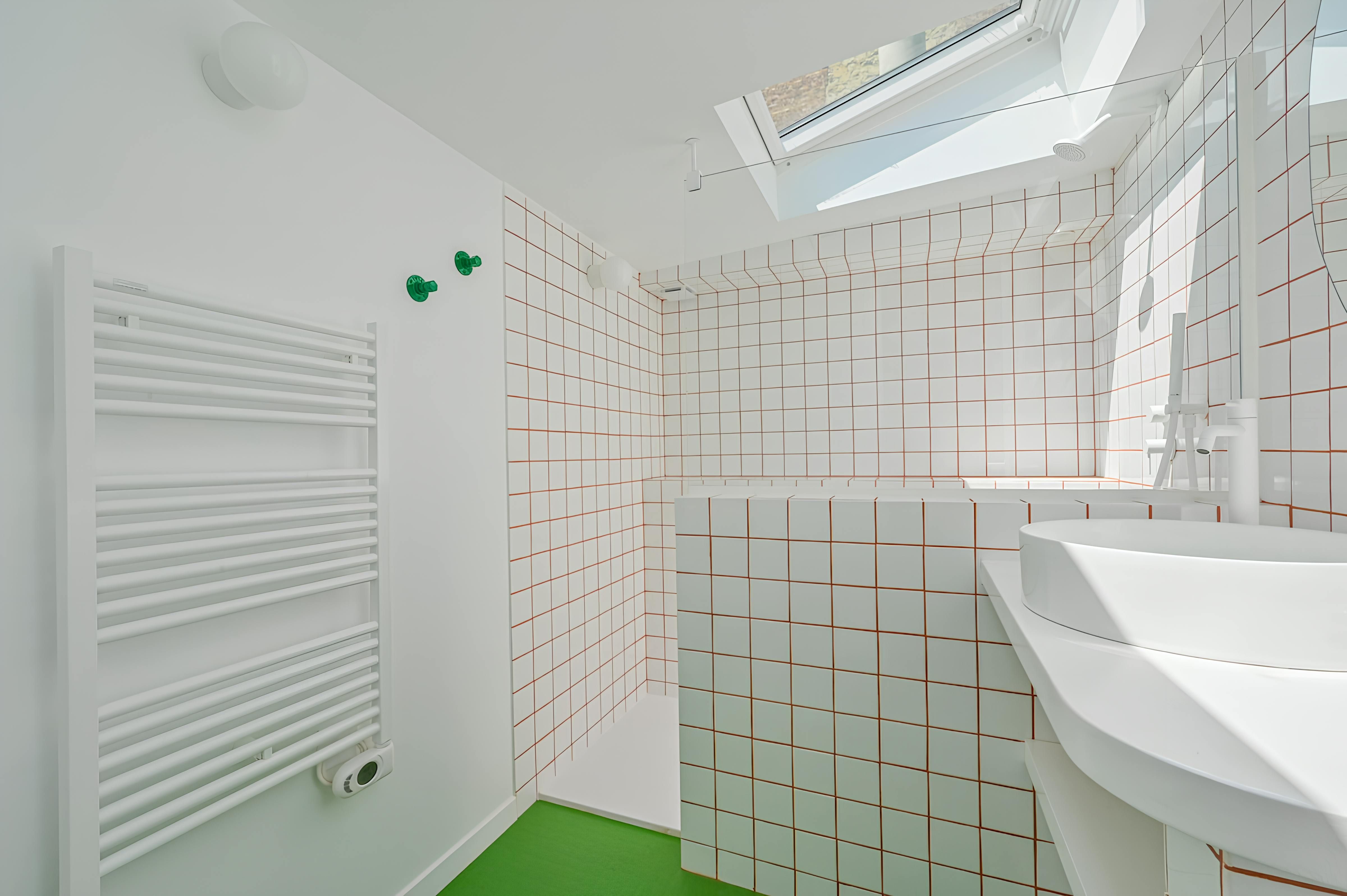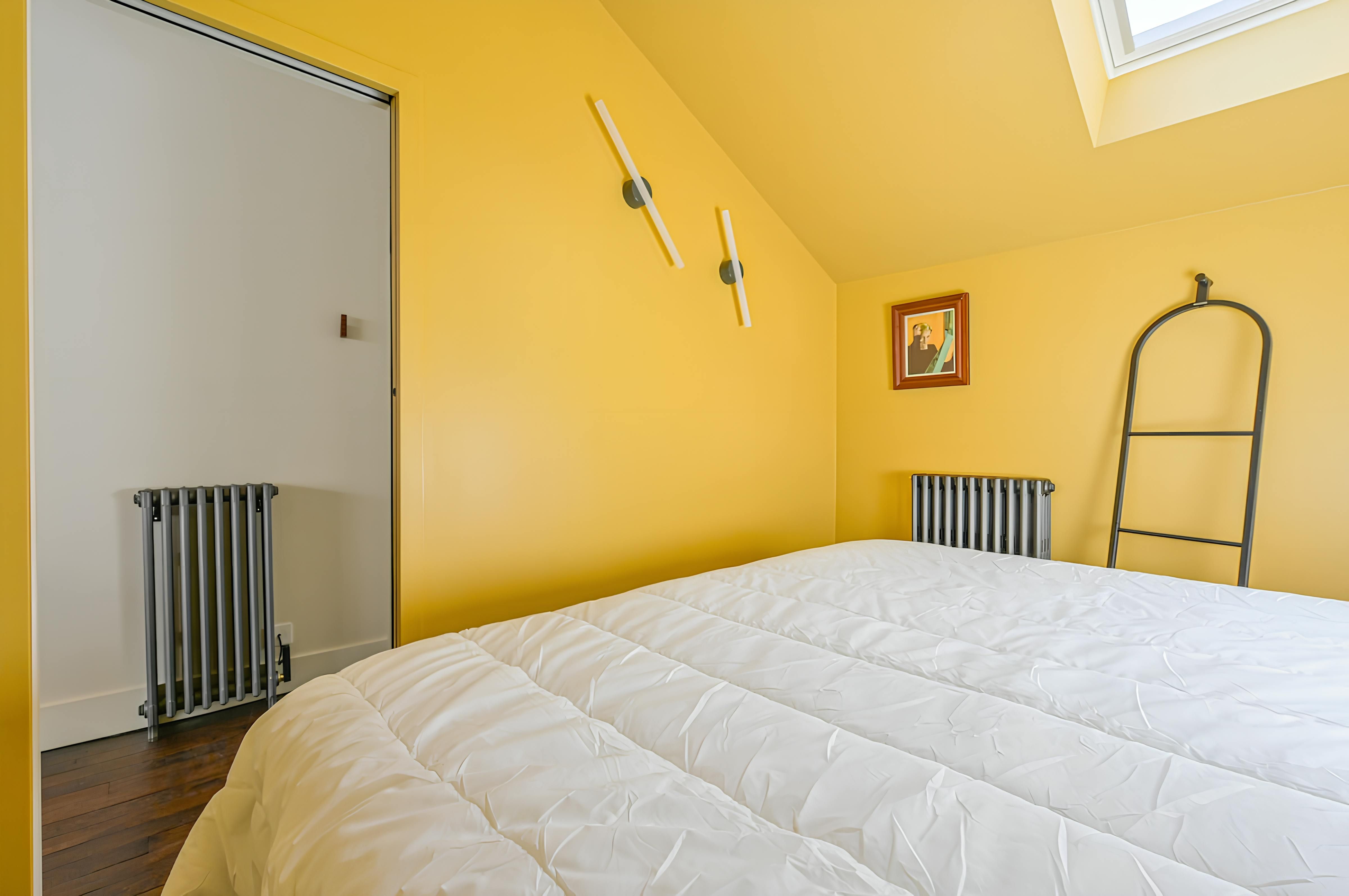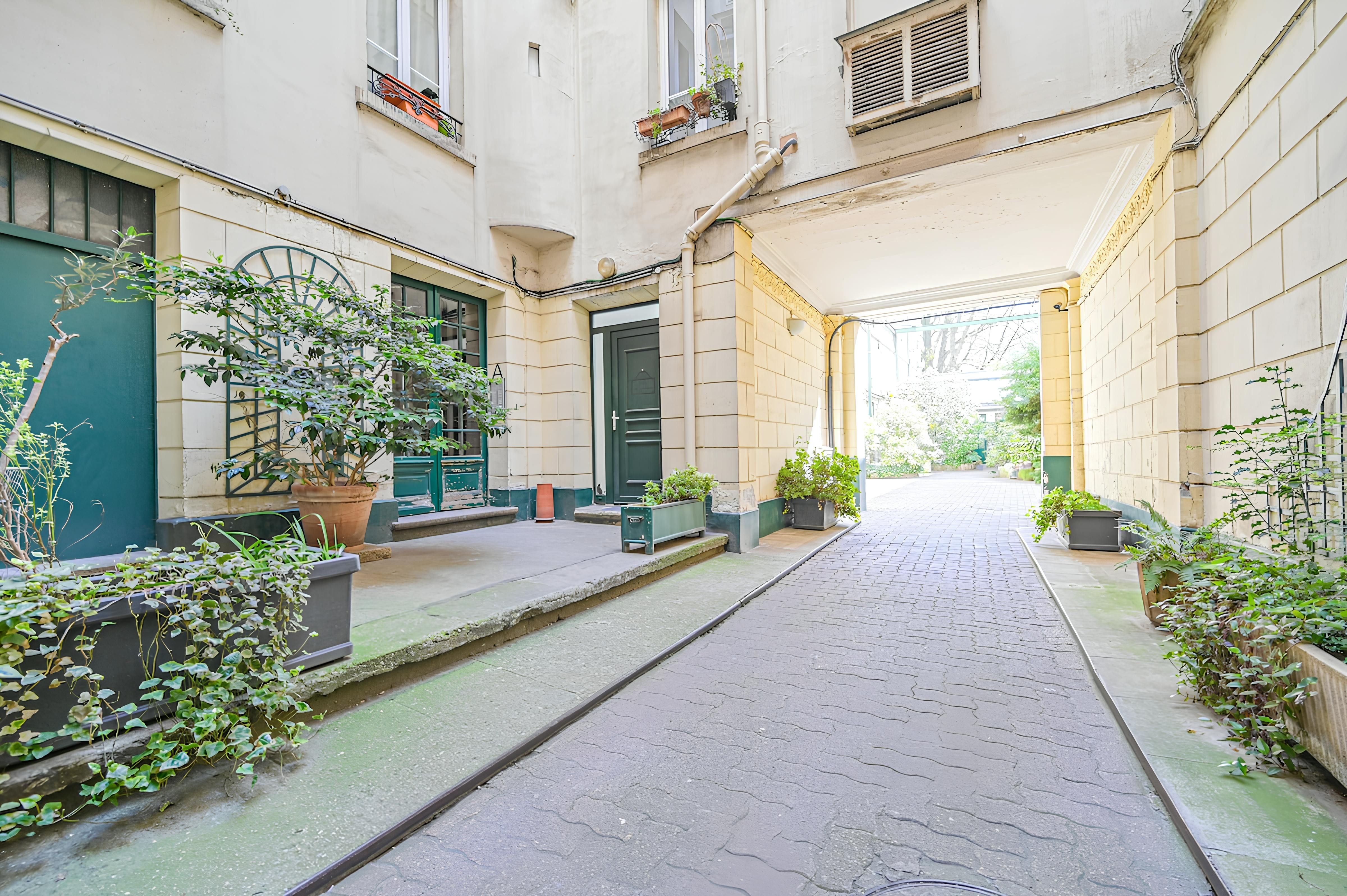 This petite apartment is full of light. It boasts a glass roof and windows that look out onto the greenery of Cimitière de Montmartre, making it a tranquil home-from-home. The combination of glass and a mirrored panel makes the space seem bigger than it is, too – though it’s worth pointing out that there’s only one bedroom so at full occupancy, two guests will sleep on the sofa bed in the living room. You’ll be positioned between the Moulin Rouge and Place de Clichy, tucked away in a quiet tree-filled courtyard.