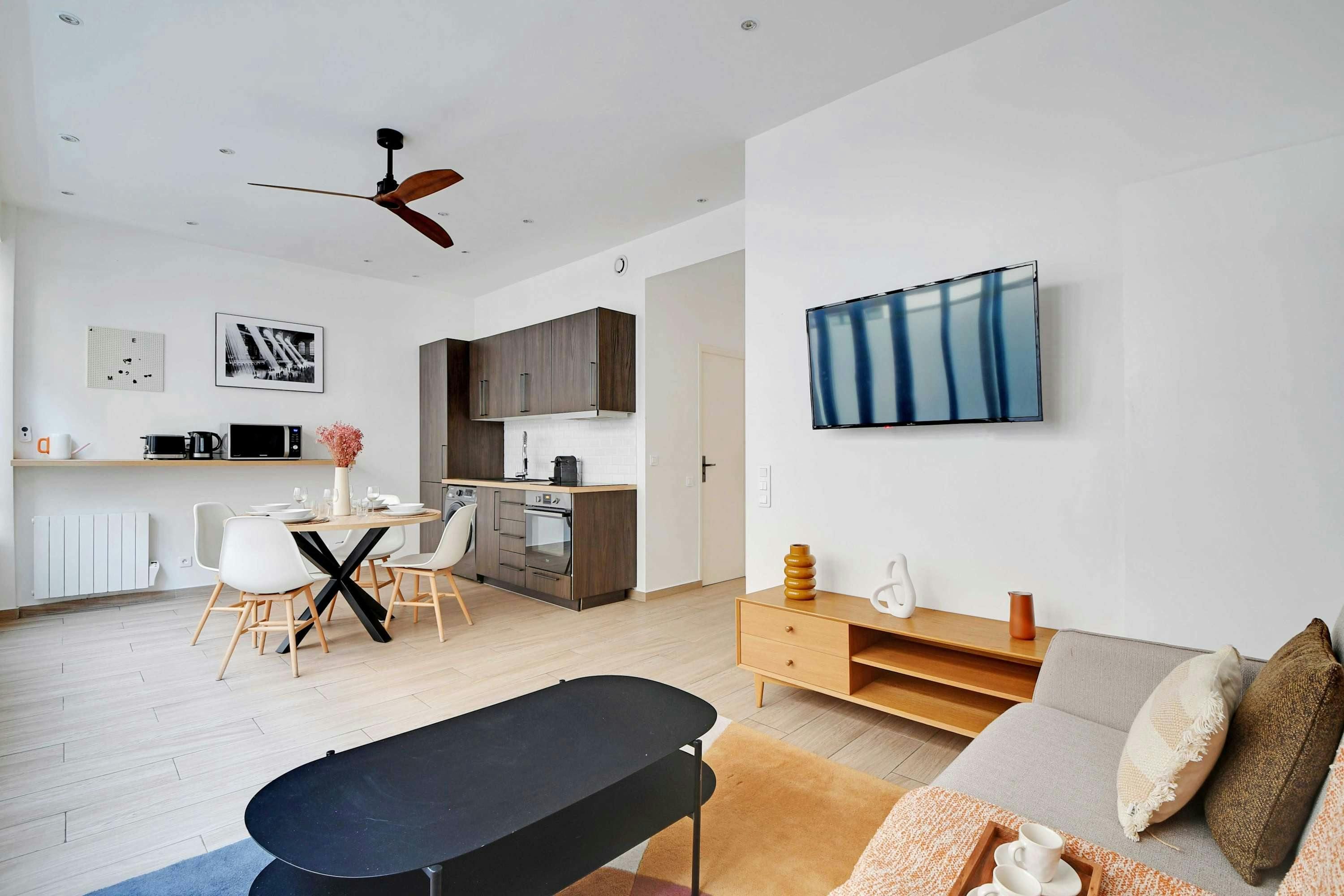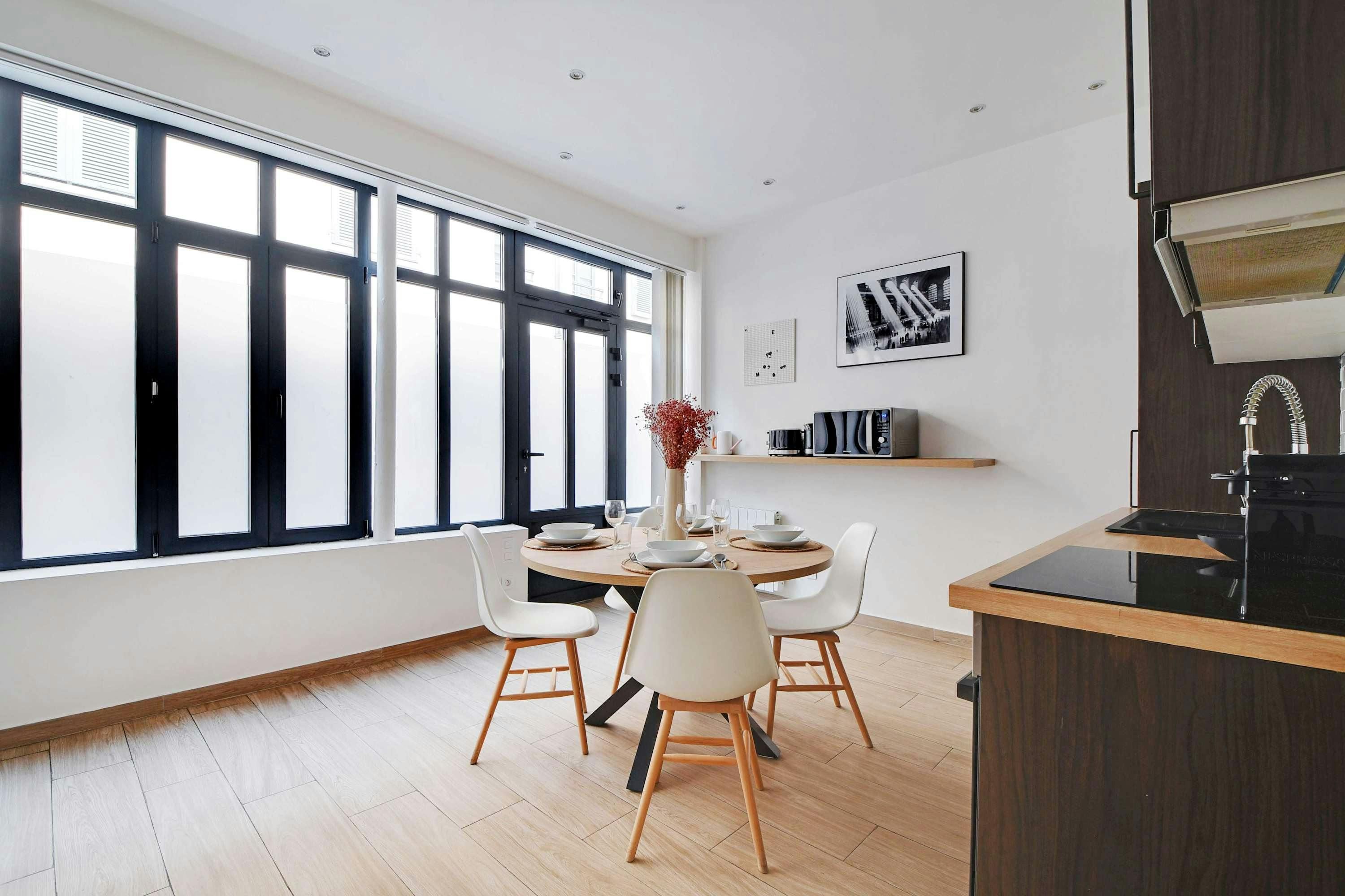 Immerse yourself in the history of the 11th arrondissement. This apartment, in the Saint-Ambroise district, is within walking distance of the Place de la Bastille, the Canal Saint-Martin and Le Marais. There are a variety of restaurants your host recommends trying in the locale too. After exploring the City of Light, there’s a large, bright open-plan living space at this home to relax in. This room also sleeps guests five and six on a comfy sofa bed. Try this modern place for your next trip to Paris.