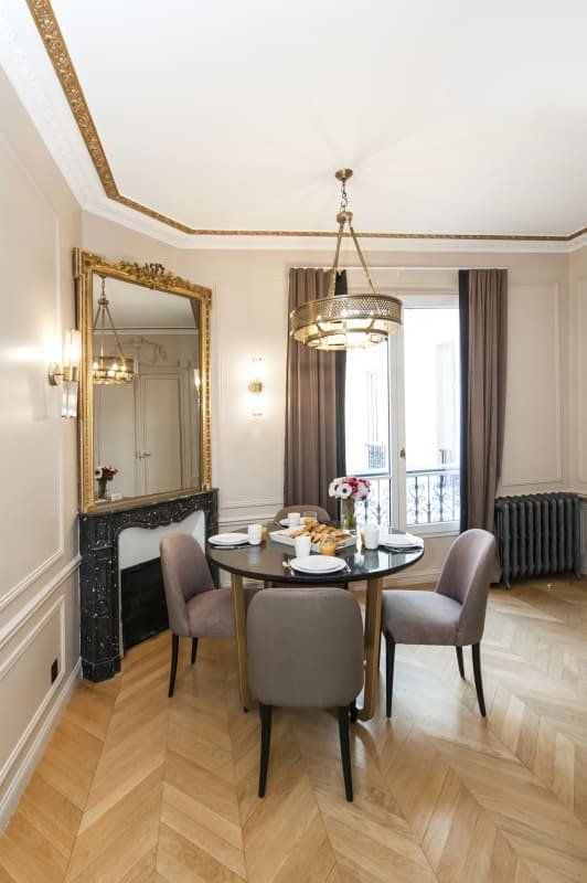This place emanates elegance and quintessentially Parisian glamour – we love the marble, gold, and glass elements woven through, making it feel particularly decadent. But you’ll also feel cosy – the living room welcomes you with a comfy sofa and plenty of space to lounge about and relax with an evening of movies and French wine. Why not welcome the day with a delicious breakfast at the dining table by the huge window – don’t forget to nip out a pick up some fresh pastries at the nearby boulangerie!
