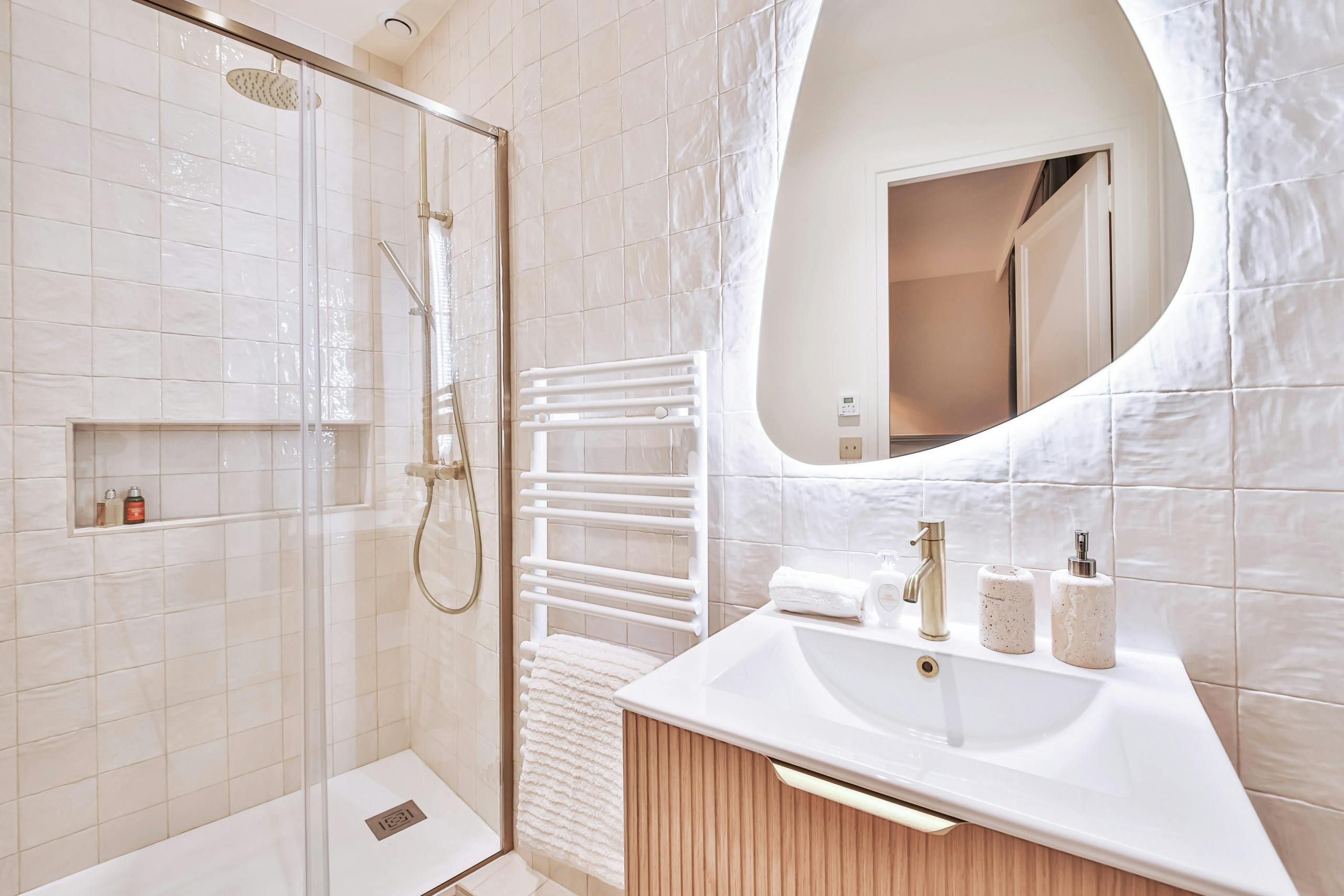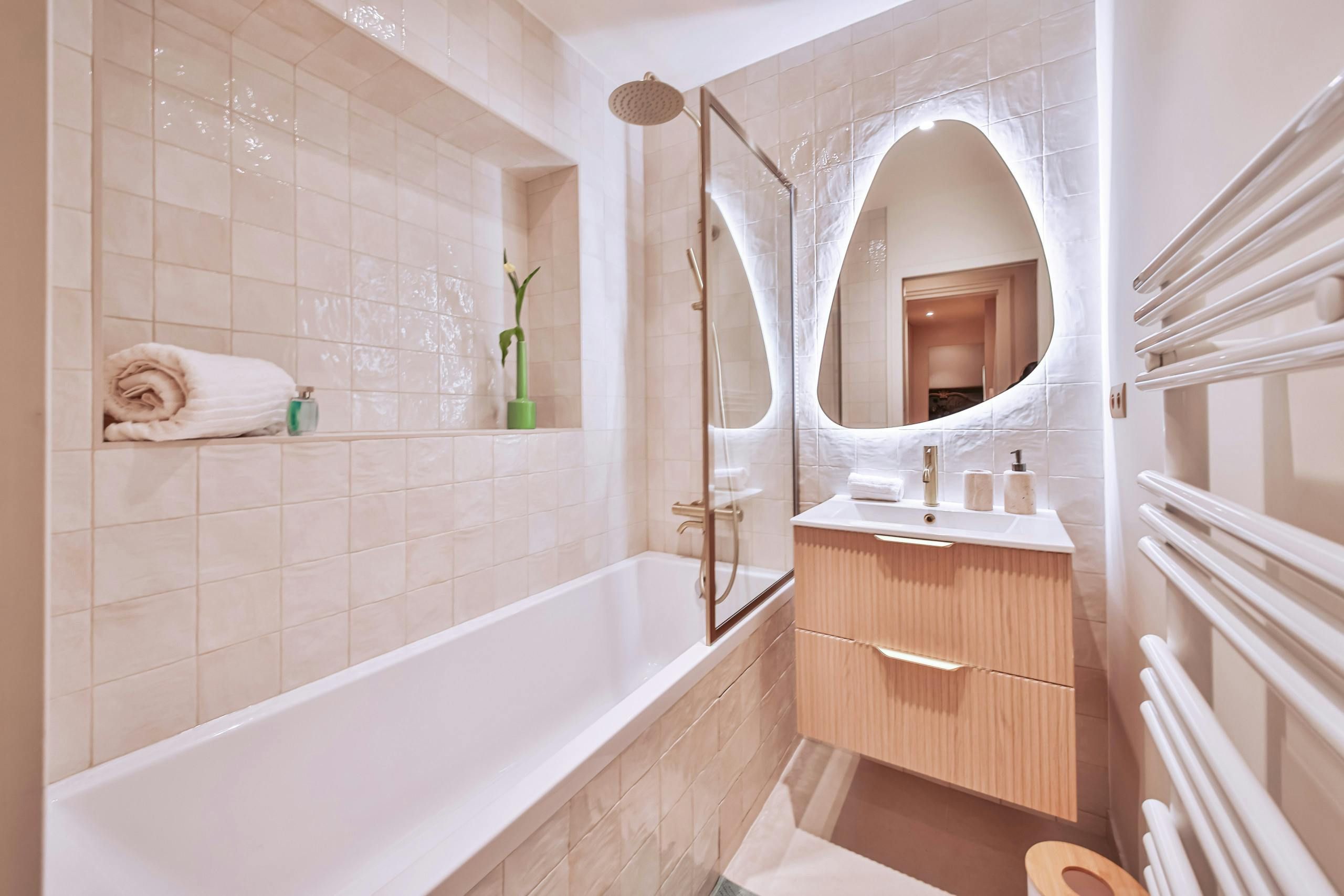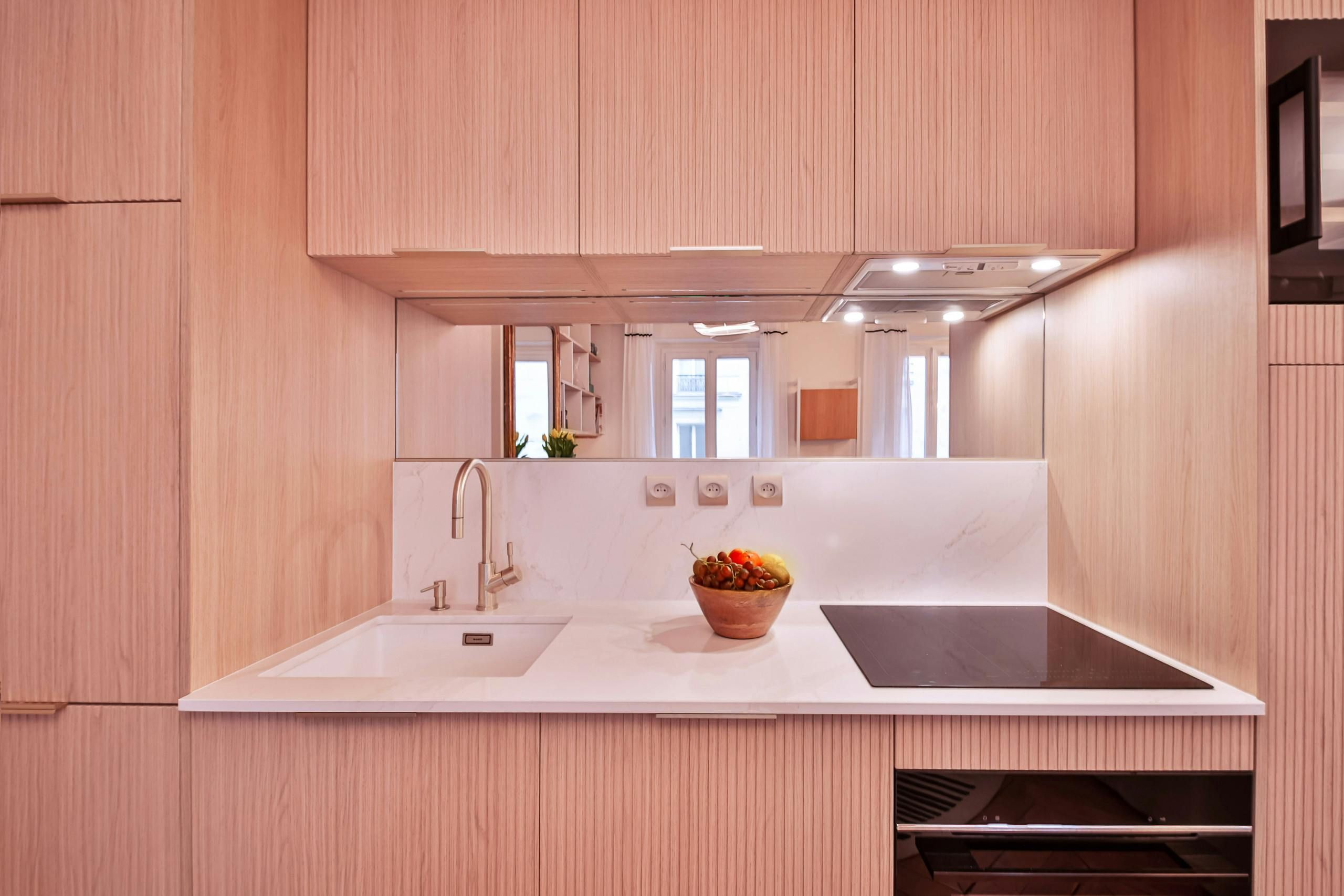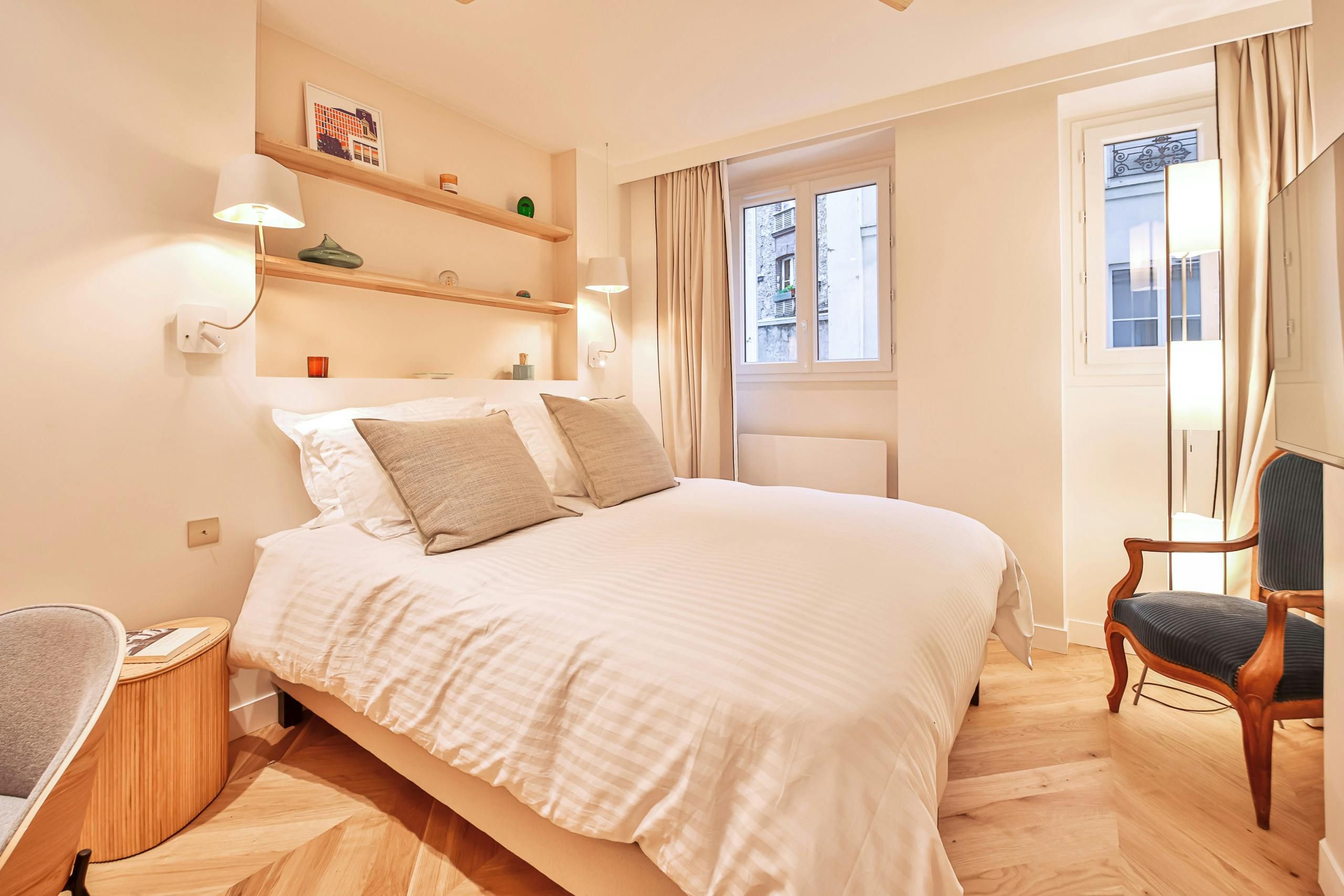 Just a short stroll from the Jardin du Luxembourg, you’ll find this elegant apartment. Cultural landmarks like the Panthéon are also within walking distance. The neighbourhood has a variety of cafes, boutiques, and fine dining options too. Housed in a traditional Parisian building, this home, with its period features, is ideal for families, couples, or friends seeking a comfortable stay. There’s a convivial open-plan living area and a couple of the bedrooms have a desk, too, if you need to work while away in Paris.