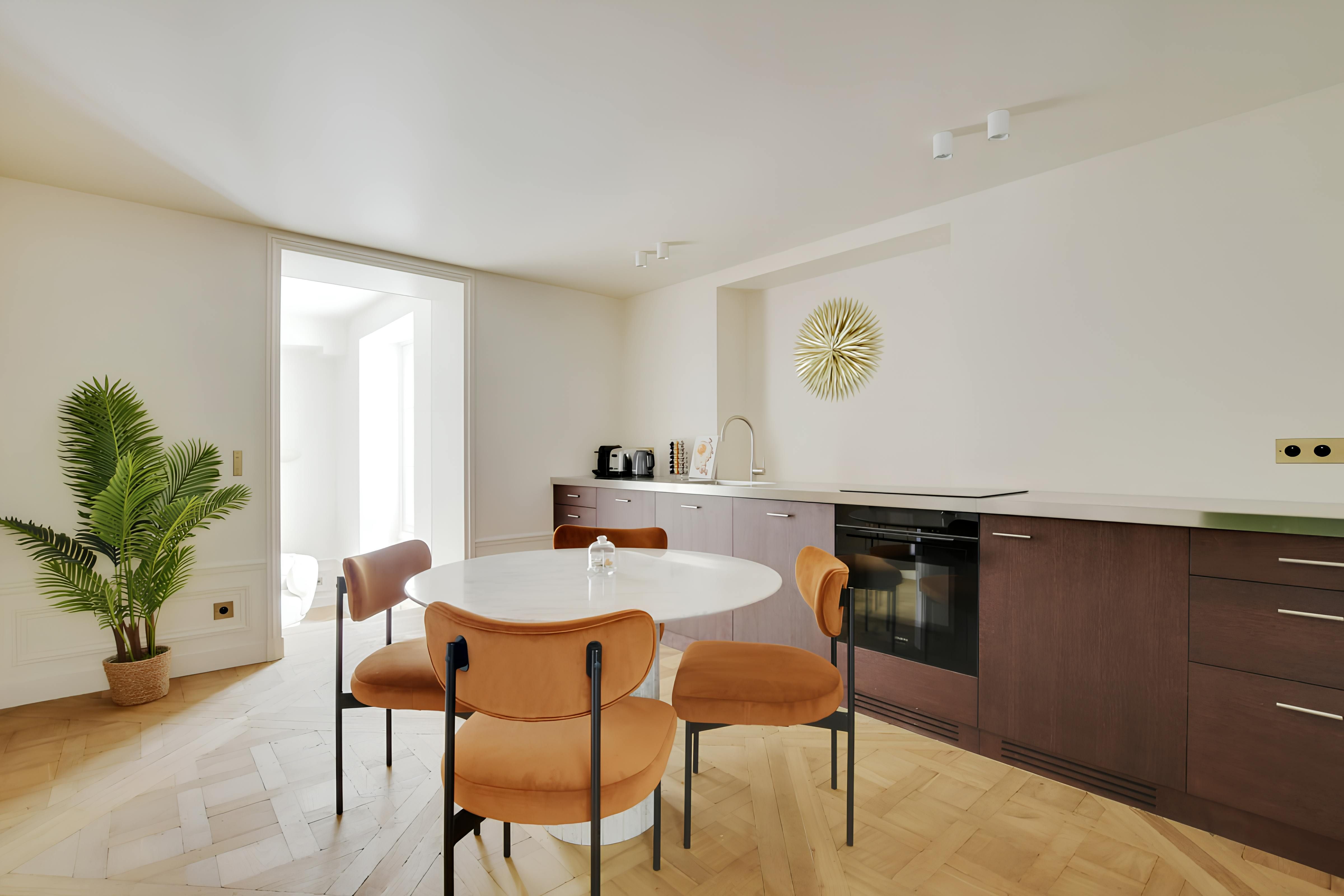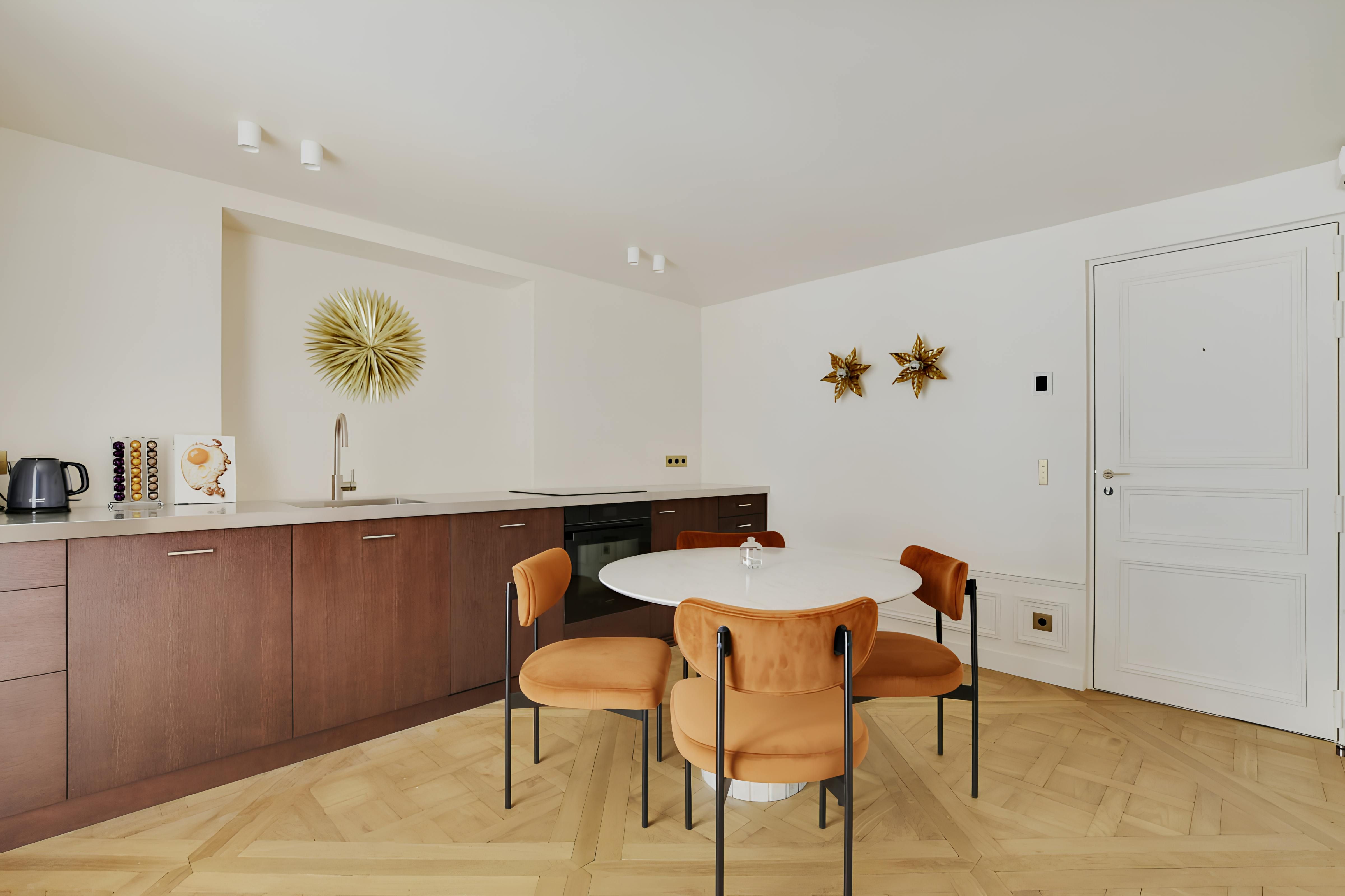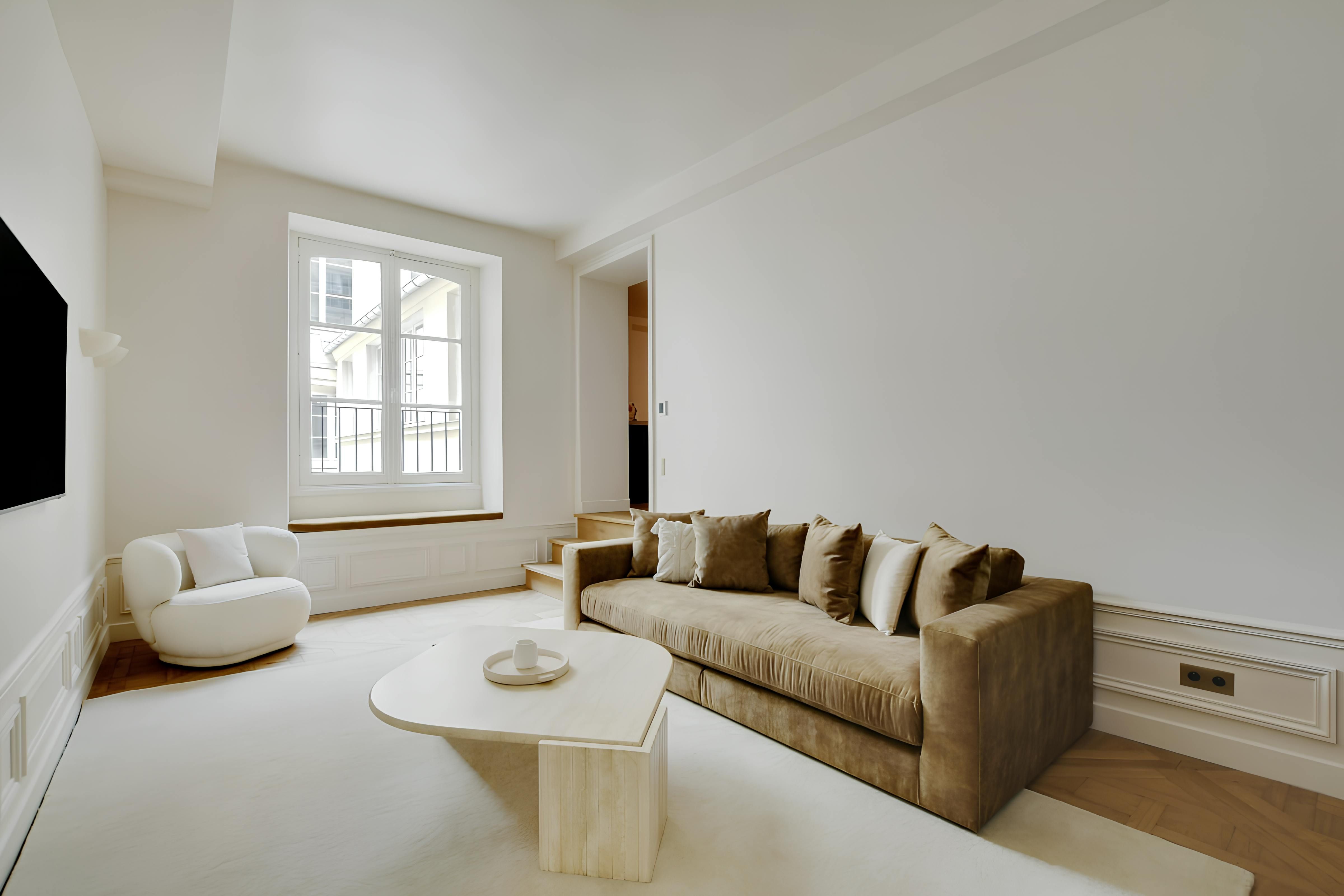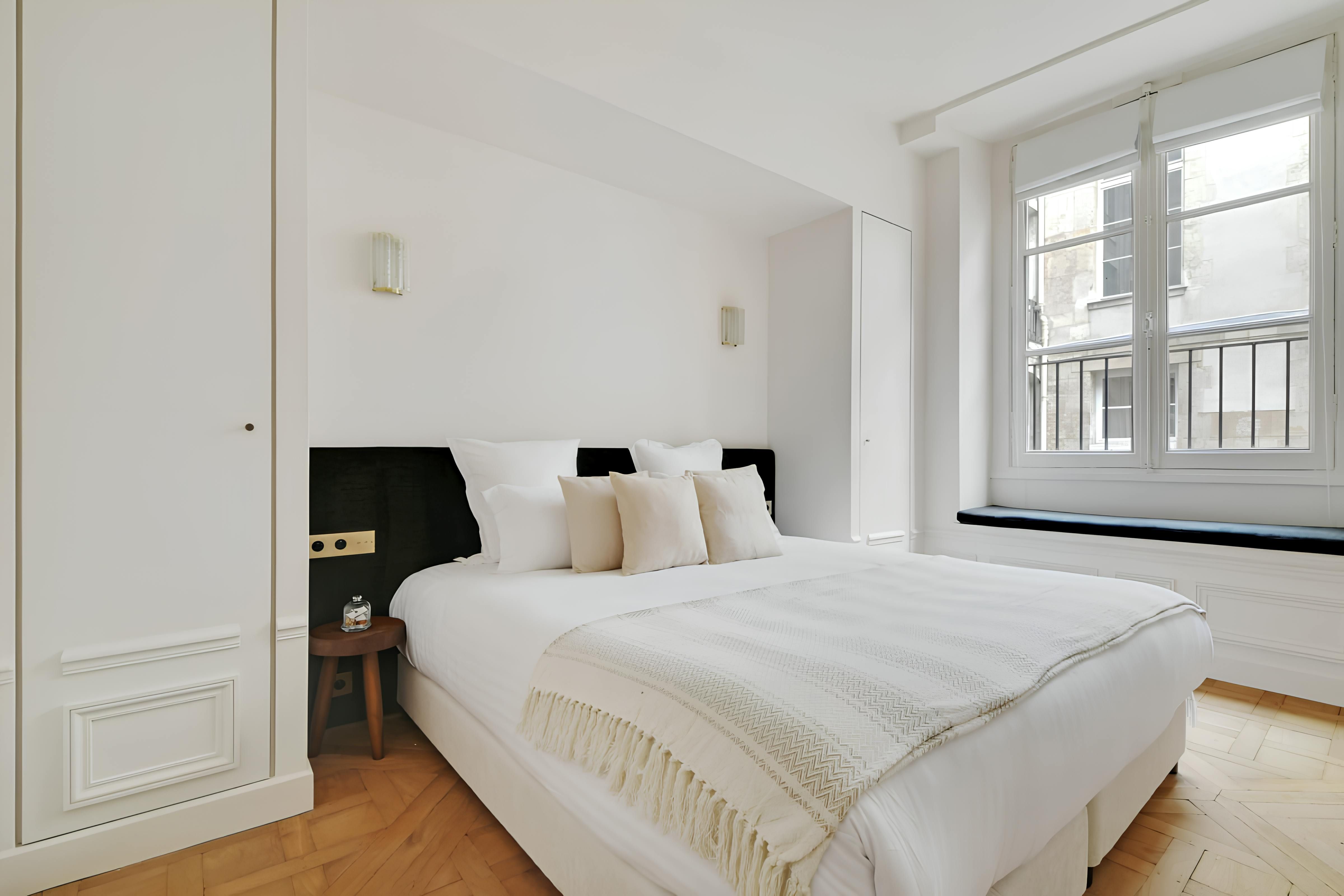 This home’s location is great – it’s just a short walk from the Louvre Museum and the Tuileries Gardens, so it’s perfect for those seeking a bit of culture. The address on Rue des Halles means it’s also fantastic for shoppers with an array of shops and department stores just waiting to be explored. We love the grand communal courtyard here and the apartment itself offers a paired-back design. A couple of things to note, there’s no lift and there are a few steps up from the living room to the kitchen. All in all, this apartment is ideal for couples, families or business colleagues seeking an exceptional location.