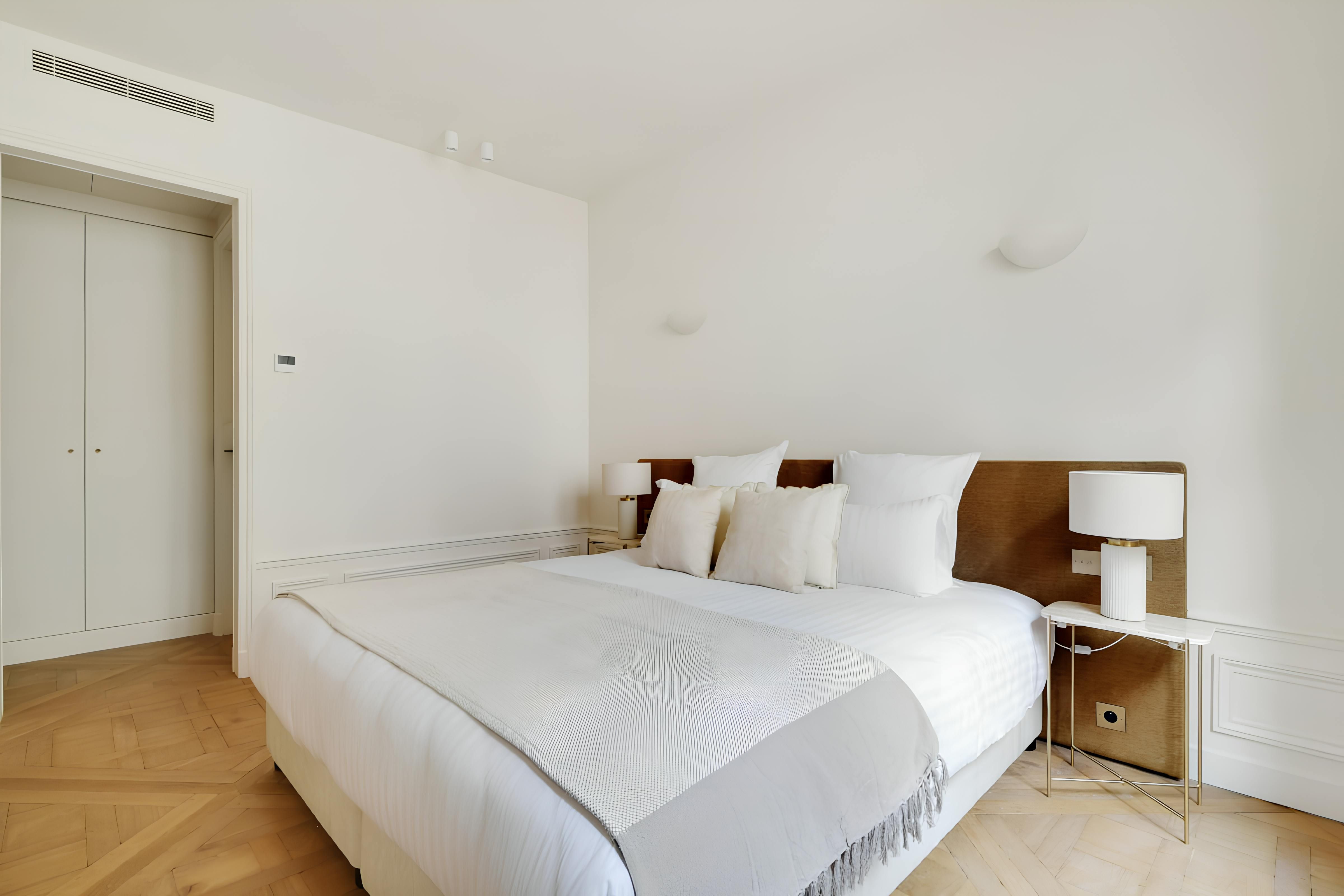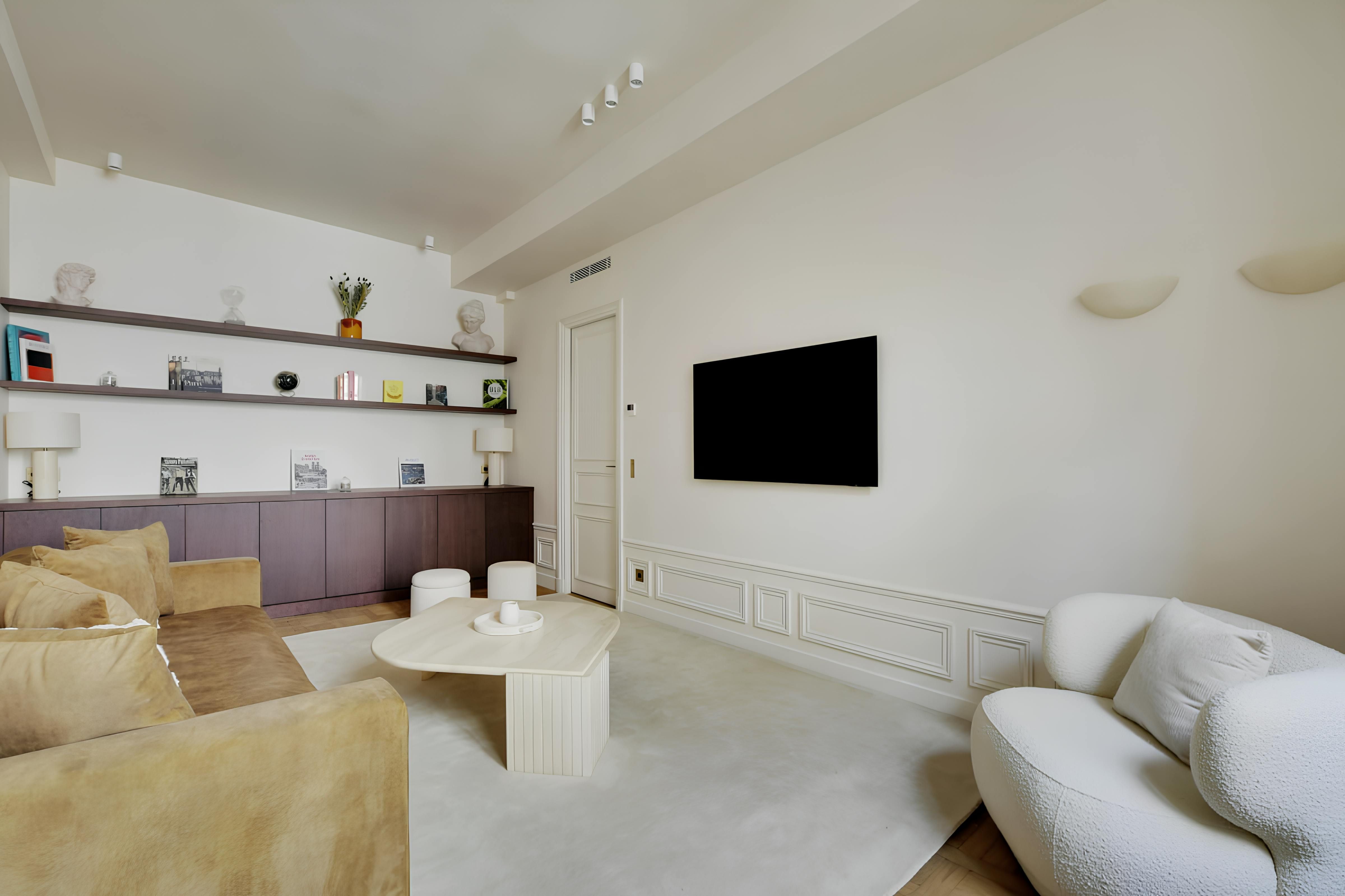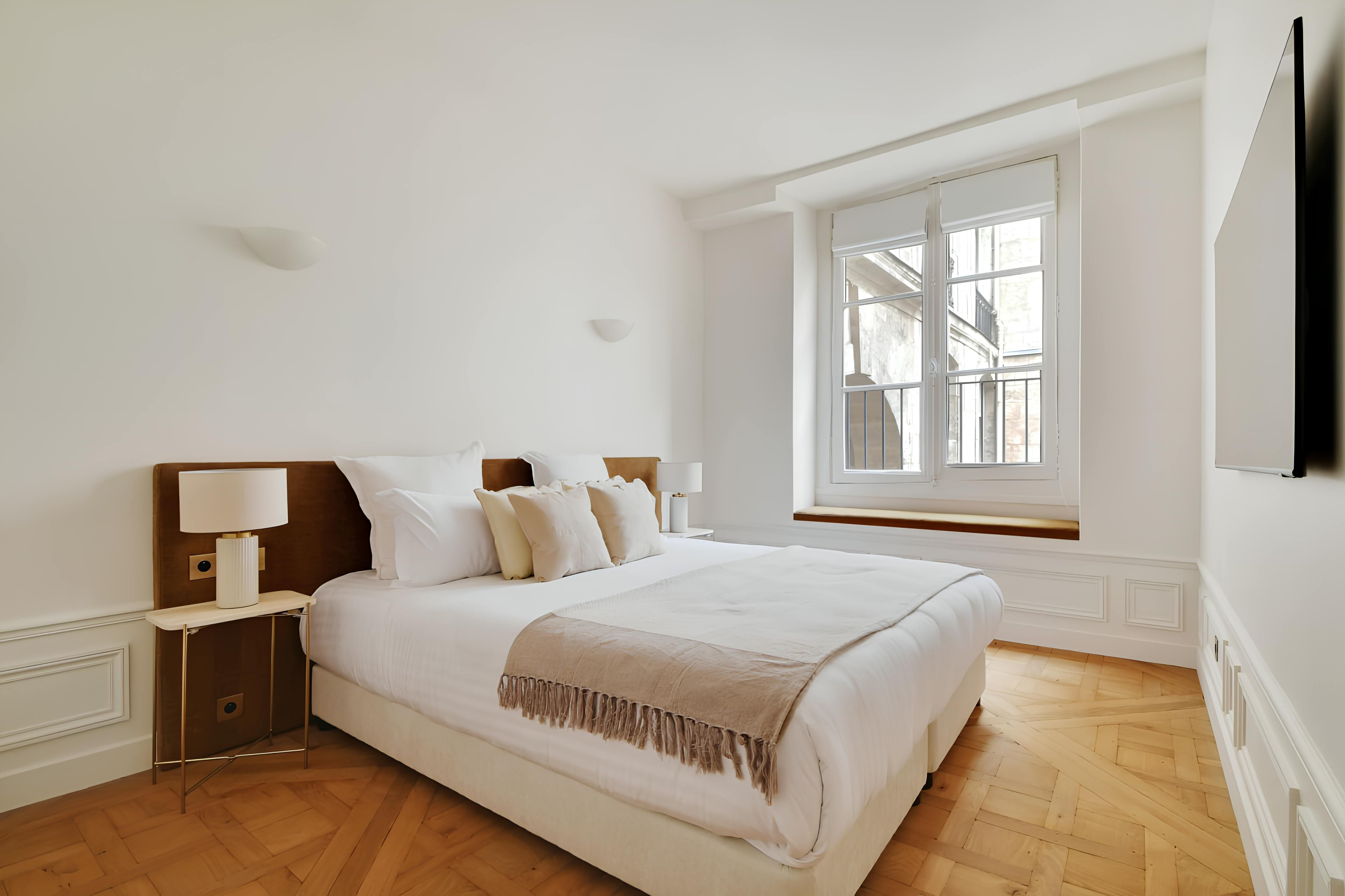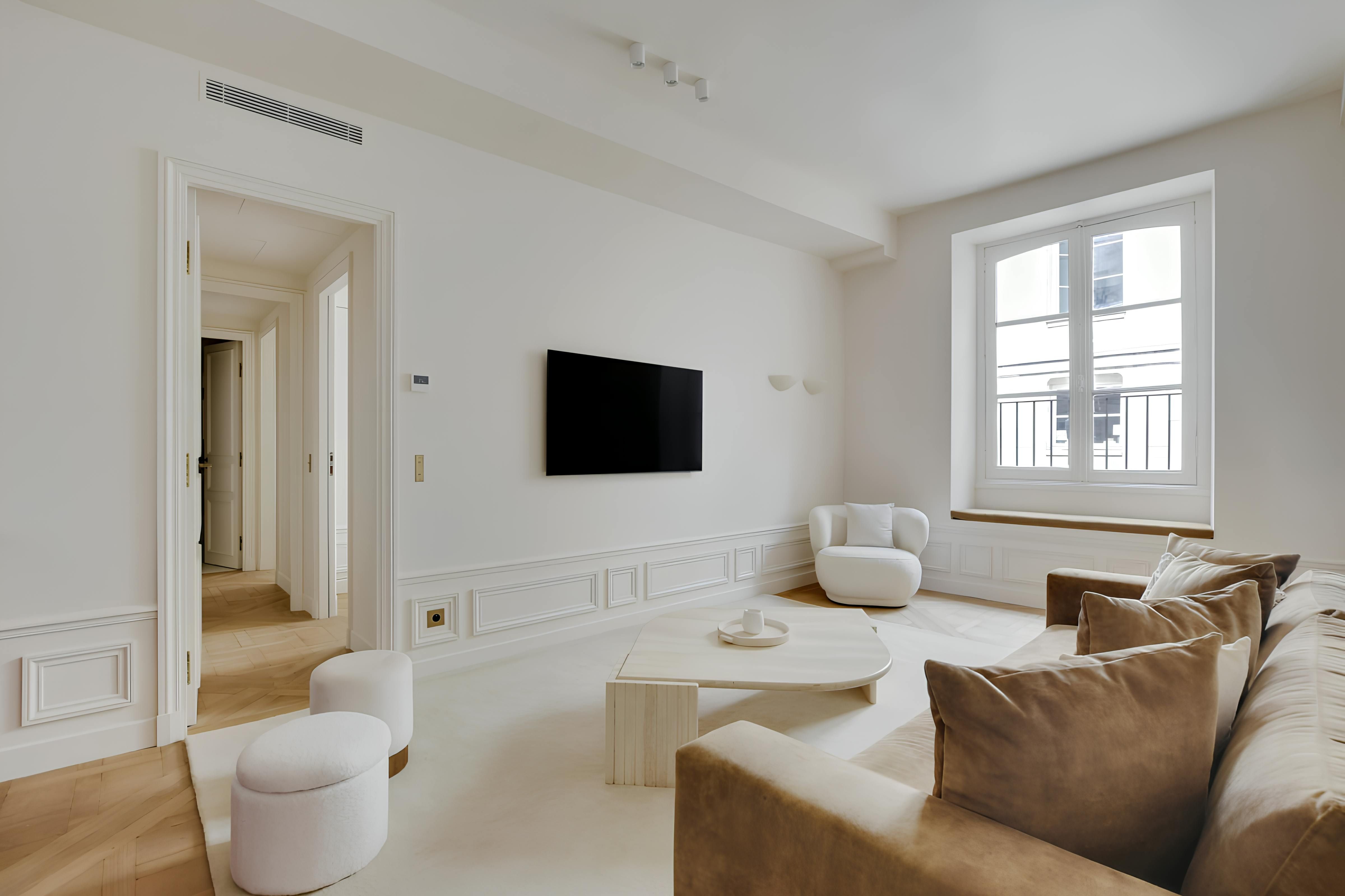 This home’s location is great – it’s just a short walk from the Louvre Museum and the Tuileries Gardens, so it’s perfect for those seeking a bit of culture. The address on Rue des Halles means it’s also fantastic for shoppers with an array of shops and department stores just waiting to be explored. We love the grand communal courtyard here and the apartment itself offers a paired-back design. A couple of things to note, there’s no lift and there are a few steps up from the living room to the kitchen. All in all, this apartment is ideal for couples, families or business colleagues seeking an exceptional location.