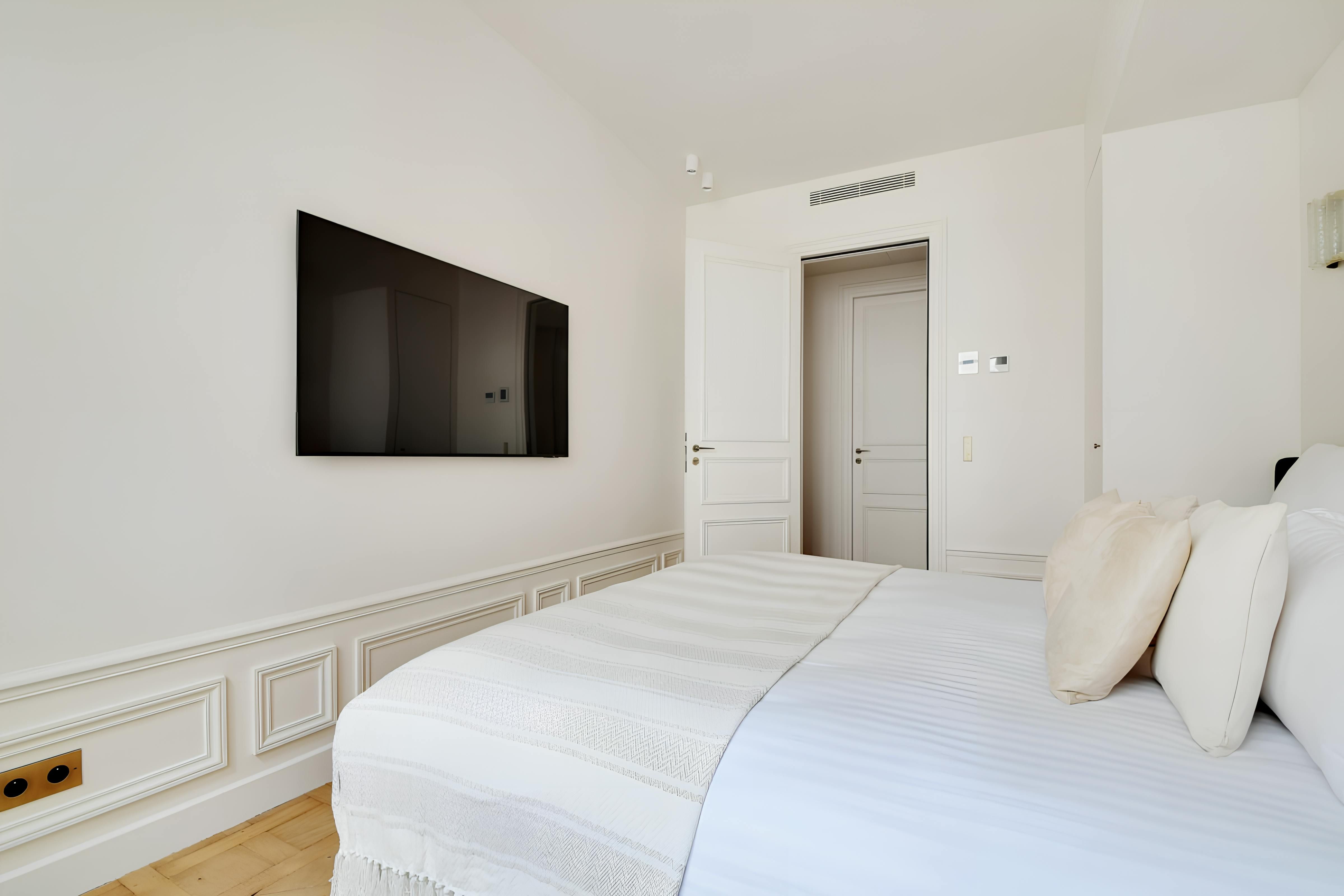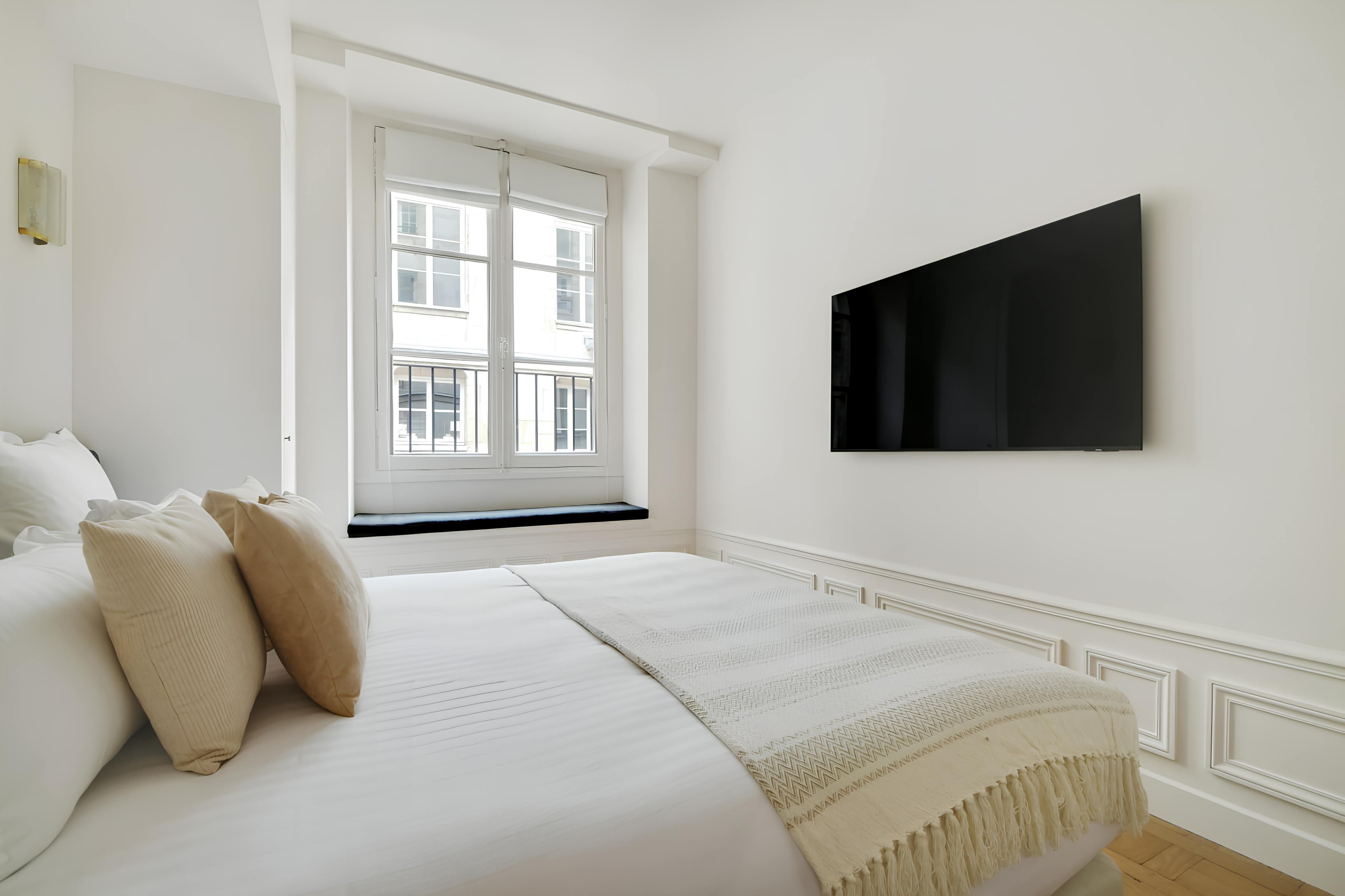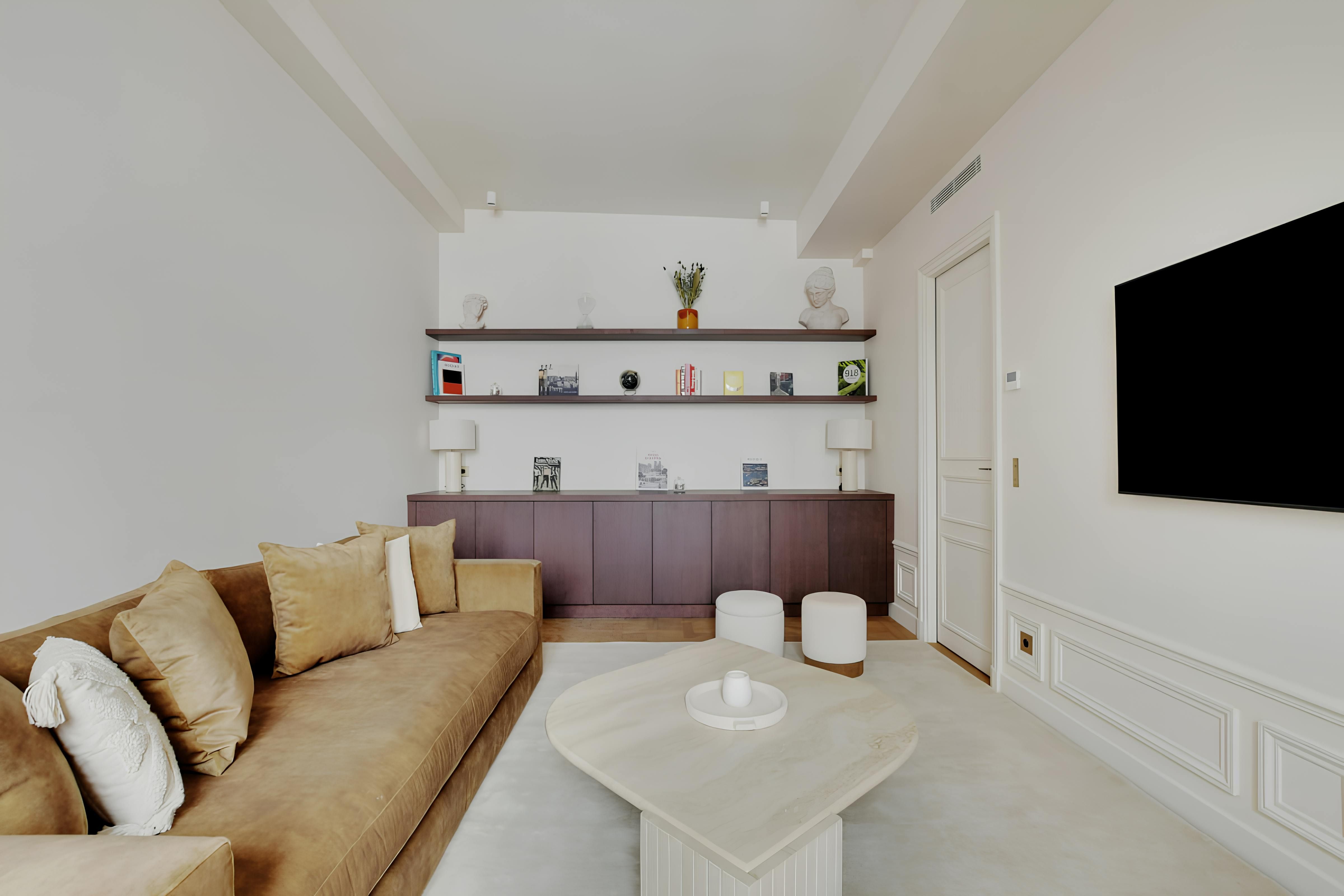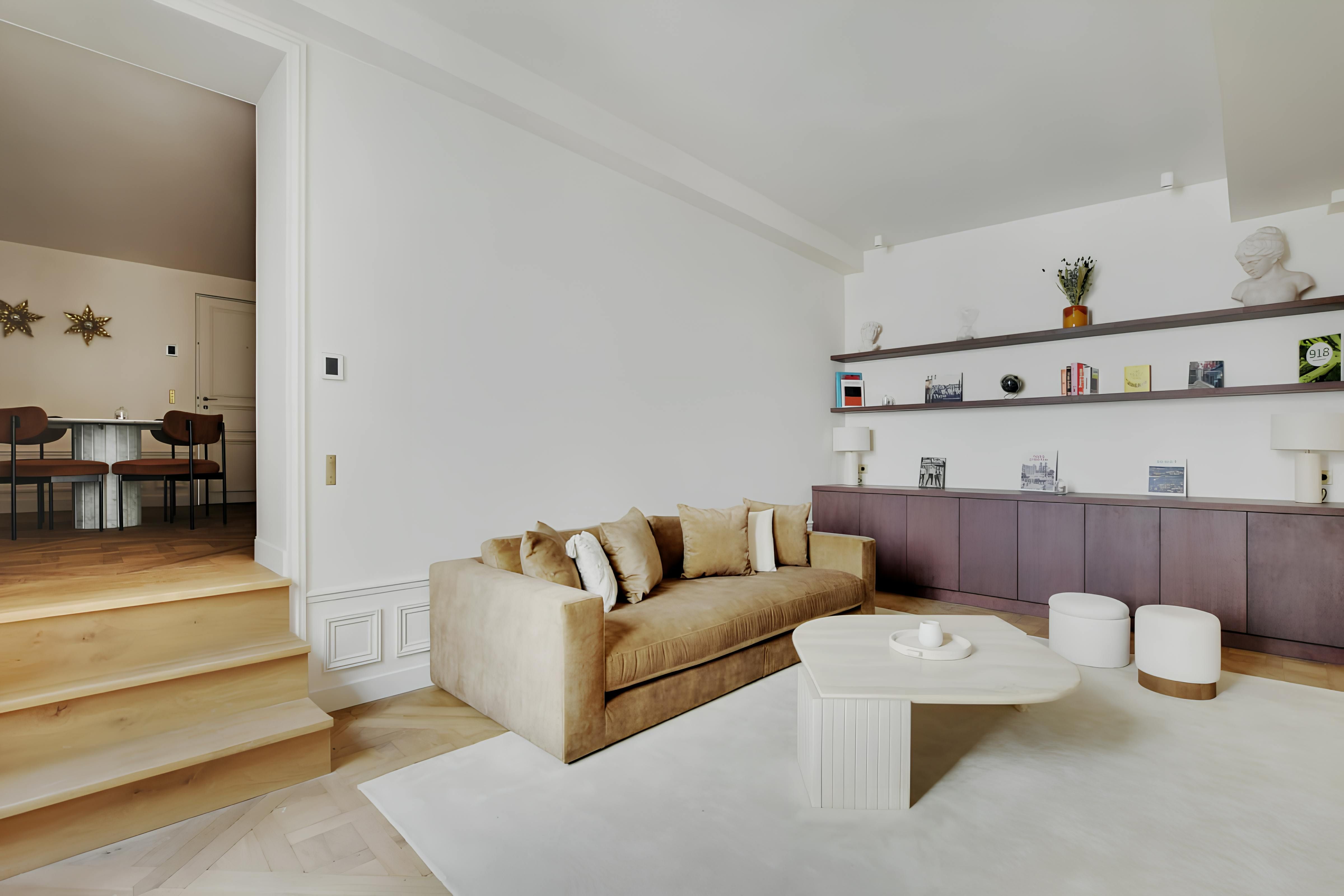 This home’s location is great – it’s just a short walk from the Louvre Museum and the Tuileries Gardens, so it’s perfect for those seeking a bit of culture. The address on Rue des Halles means it’s also fantastic for shoppers with an array of shops and department stores just waiting to be explored. We love the grand communal courtyard here and the apartment itself offers a paired-back design. A couple of things to note, there’s no lift and there are a few steps up from the living room to the kitchen. All in all, this apartment is ideal for couples, families or business colleagues seeking an exceptional location.