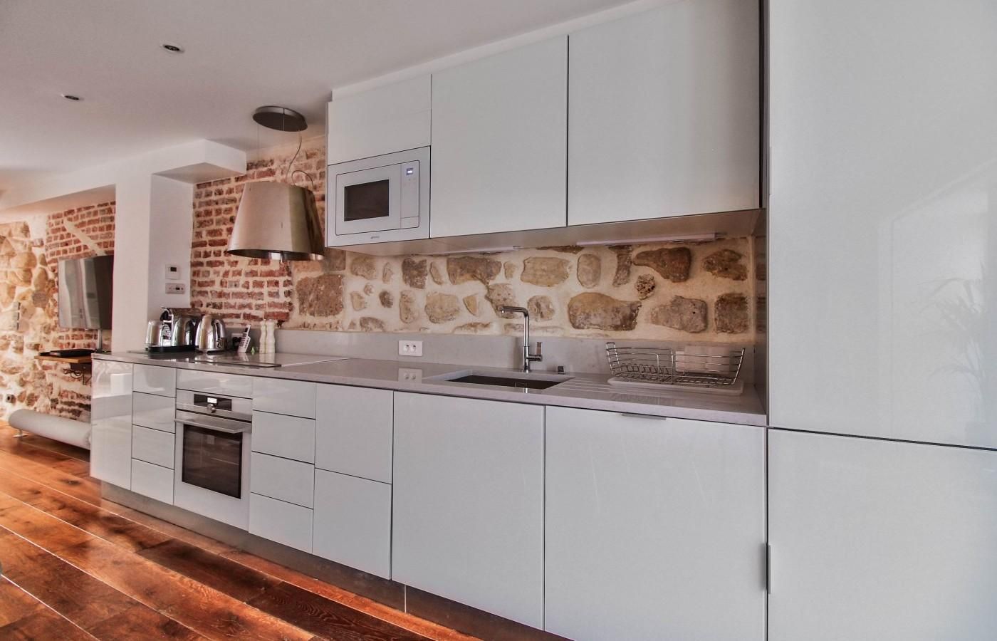 Set in the heart of Le Marais, one of the most beautiful and lively neighbourhoods of Paris, this home is especially enviable when it comes to its location. You’ll be just two minutes from Marché des Enfants Rouges, a typical Parisian food market where you can pick up fresh produce or try delicious Lebanese fare. You’ll also be surrounded by art on all sides, just an eight-minute walk from the Picasso Museum, twelve minutes from the Carnavalet Museum and fourteen from Centre Pompidou – although the whole neighbourhood, with its narrow cobblestone streets and former mansions, feels a bit like an open-air museum already. The home itself is enviable for its own set of reasons – with original exposed limestone walls and oiled oak floors, its authentic character has been lovingly preserved. There’s a modern kitchen, elegant dining area, massive cosy sectional and our personal favourite – the lovely private courtyard with a dining table for meals alfresco and a vertical garden that’s thriving. Spend early mornings out here with a strong coffee and also some late nights, chatting over a bottle (or two) of good French wine.
