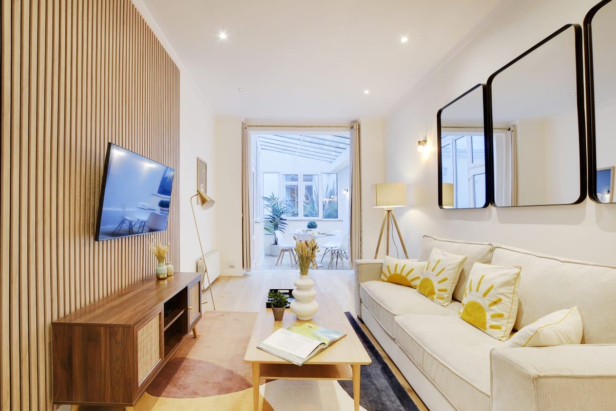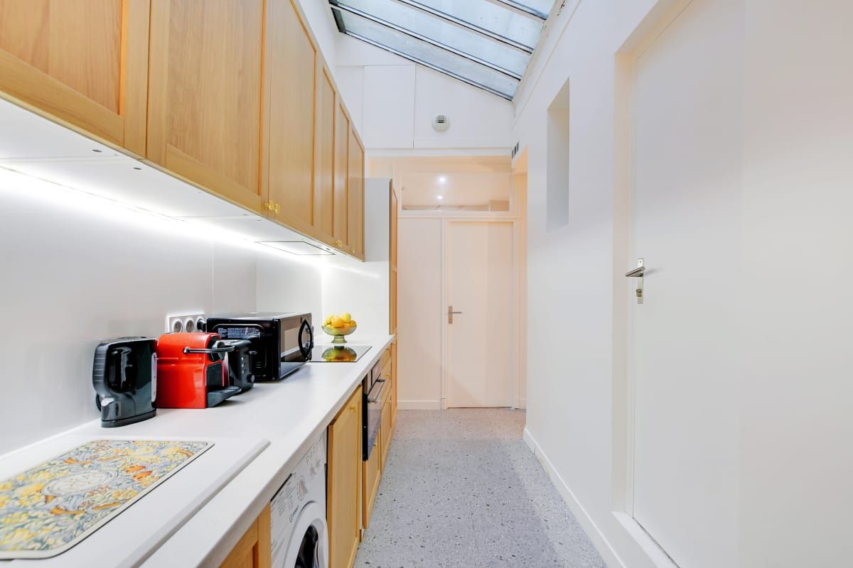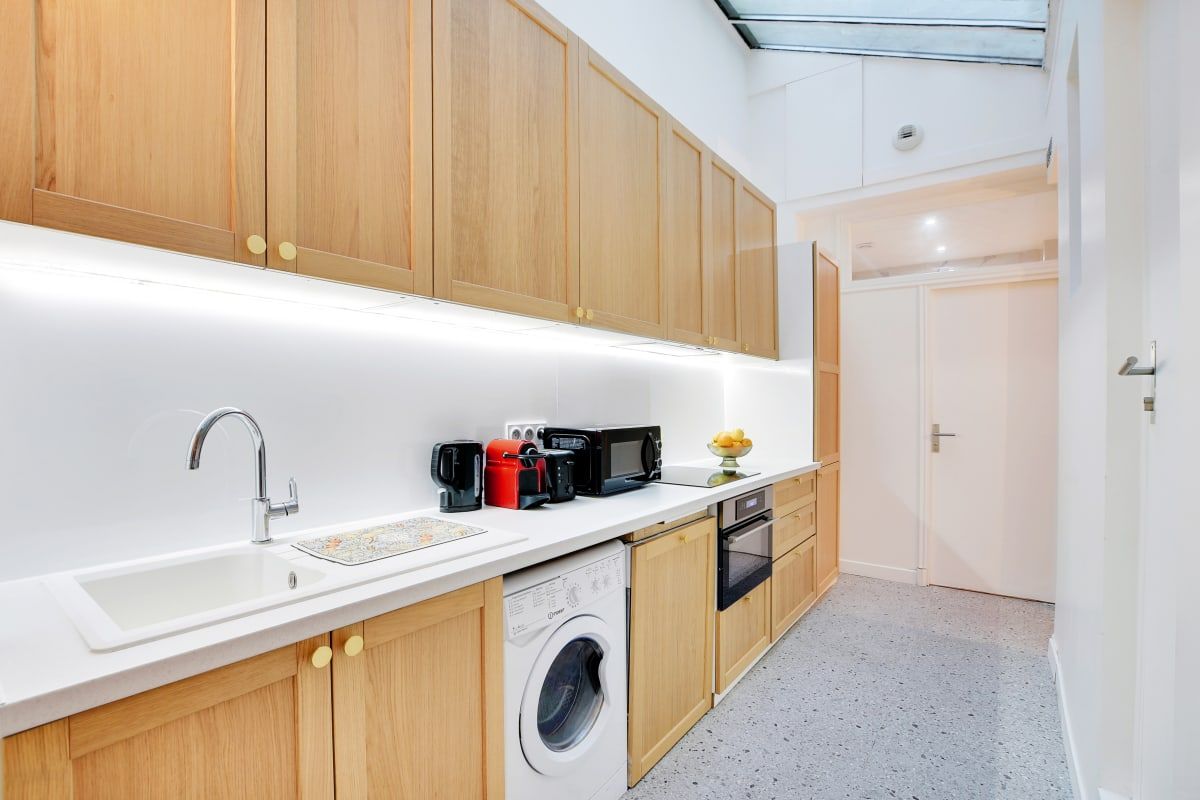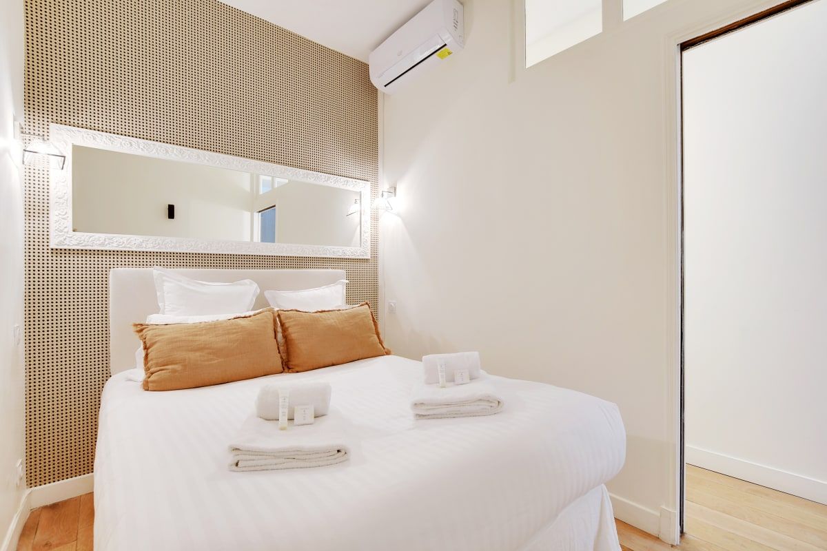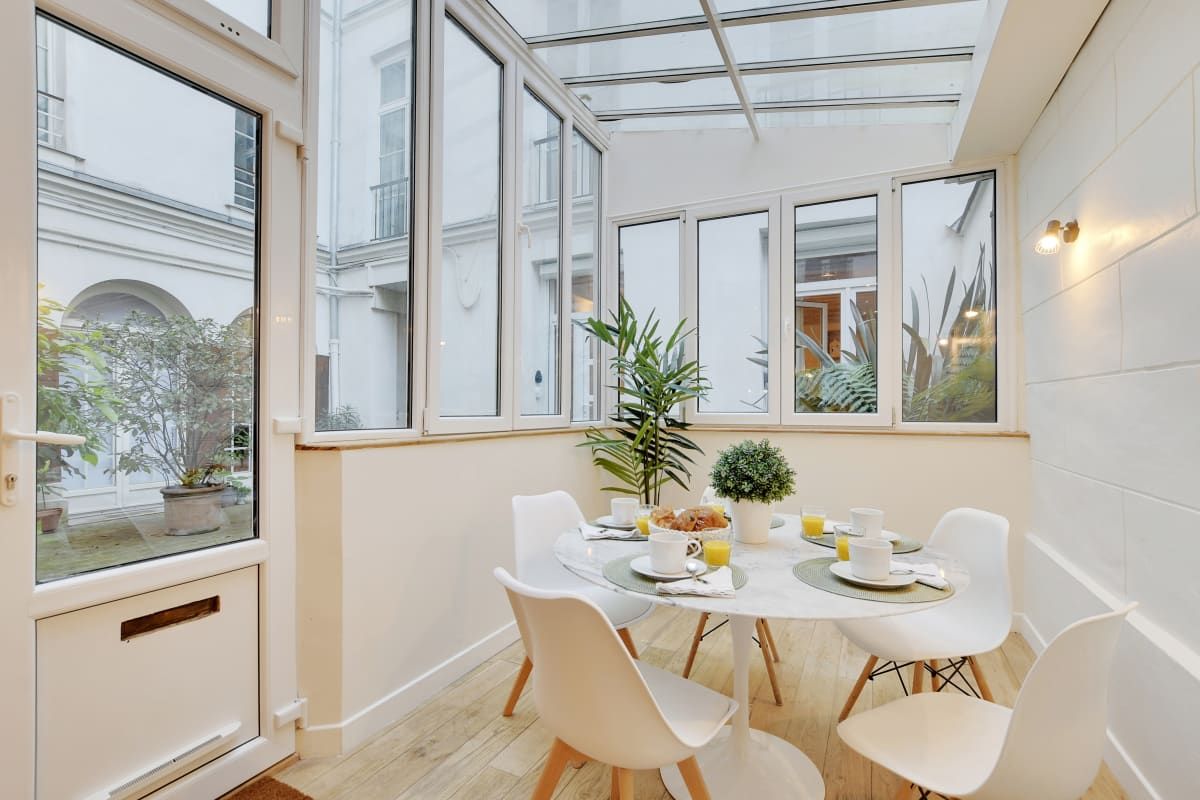 Just steps from the Jardins des Archives Nationales, you’ll find this apartment. There are plenty of museums and art galleries within walking distance of this home too, so it has a perfect address for culture lovers. Overlooking a communal interior courtyard, this ground-floor apartment has a sunroom for dining, while the bright kitchen is well-equipped for when you want to do some home cooking. The separate living room accommodates guests five and six on a sofa bed and for the hot summer months, you’ll be glad to know there’s air conditioning here.