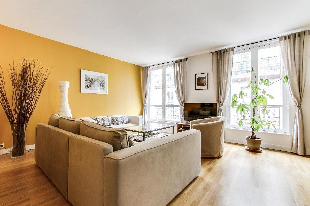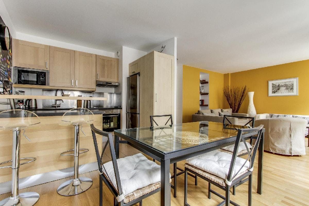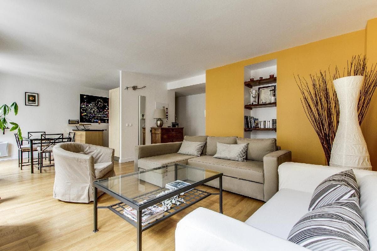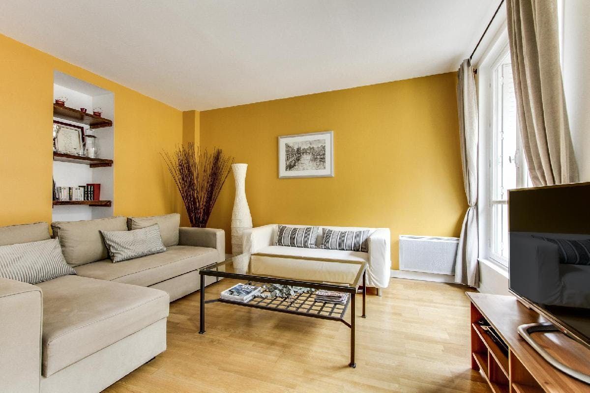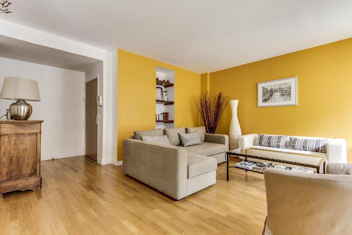 As bright and beautiful as its sunshine yellow feature wall, this apartment in Paris’ Montparnasse neighbourhood offers a wonderfully quiet stay within easy reach of the city’s famous sights.