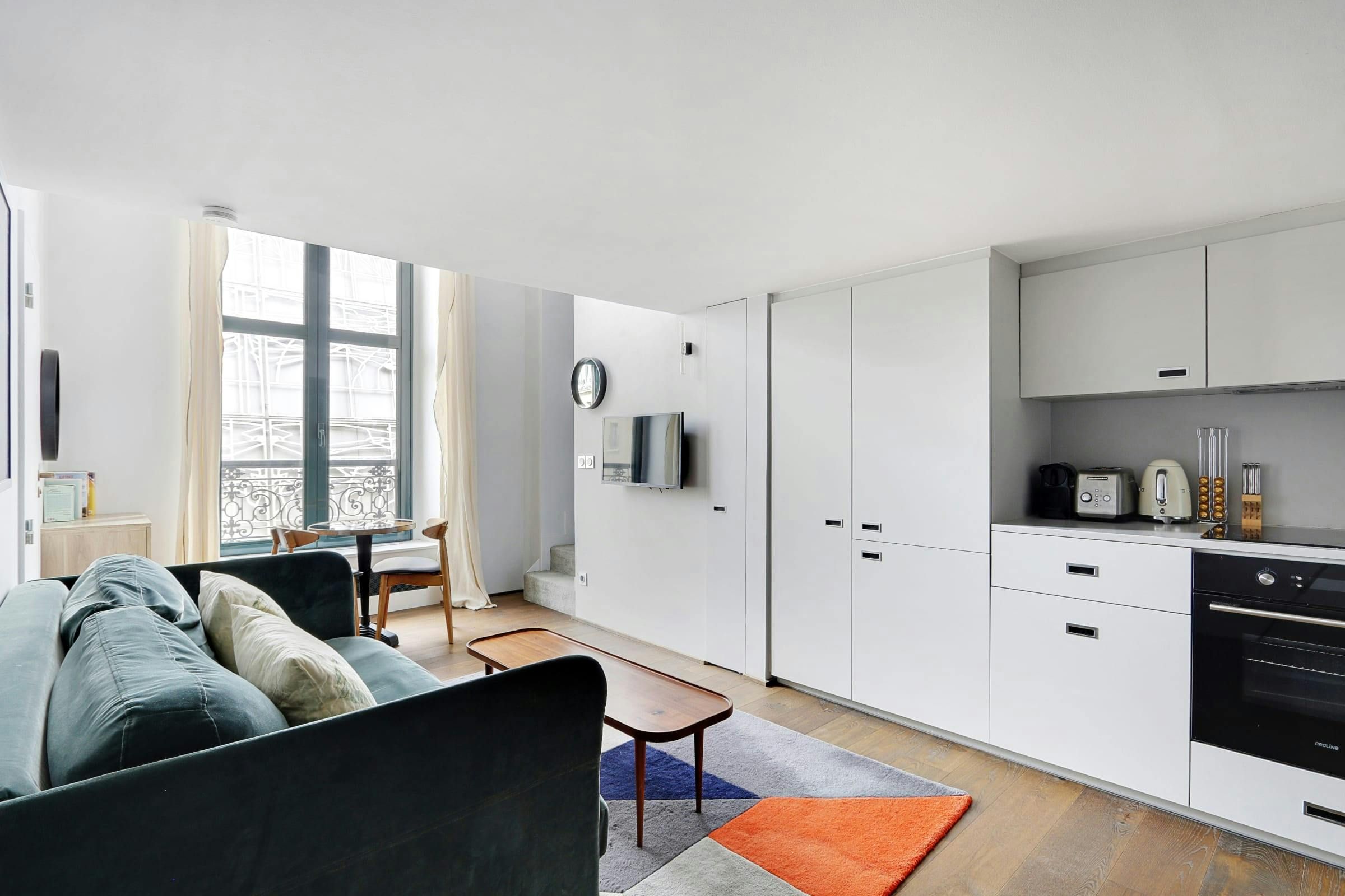 Set in a charming Parisian building, just a short distance from top sights like the Louvre Museum, Tuileries Garden, and Rue Saint Honoré, this is an ideal location to get the best out of your trip to Paris. As for the apartment itself, it's split across two levels and has everything you could need for a comfortable stay. And, the living room sofa bed, which accommodates an extra two guests, is a bonus – especially if you're travelling with the kids or a couple of friends.