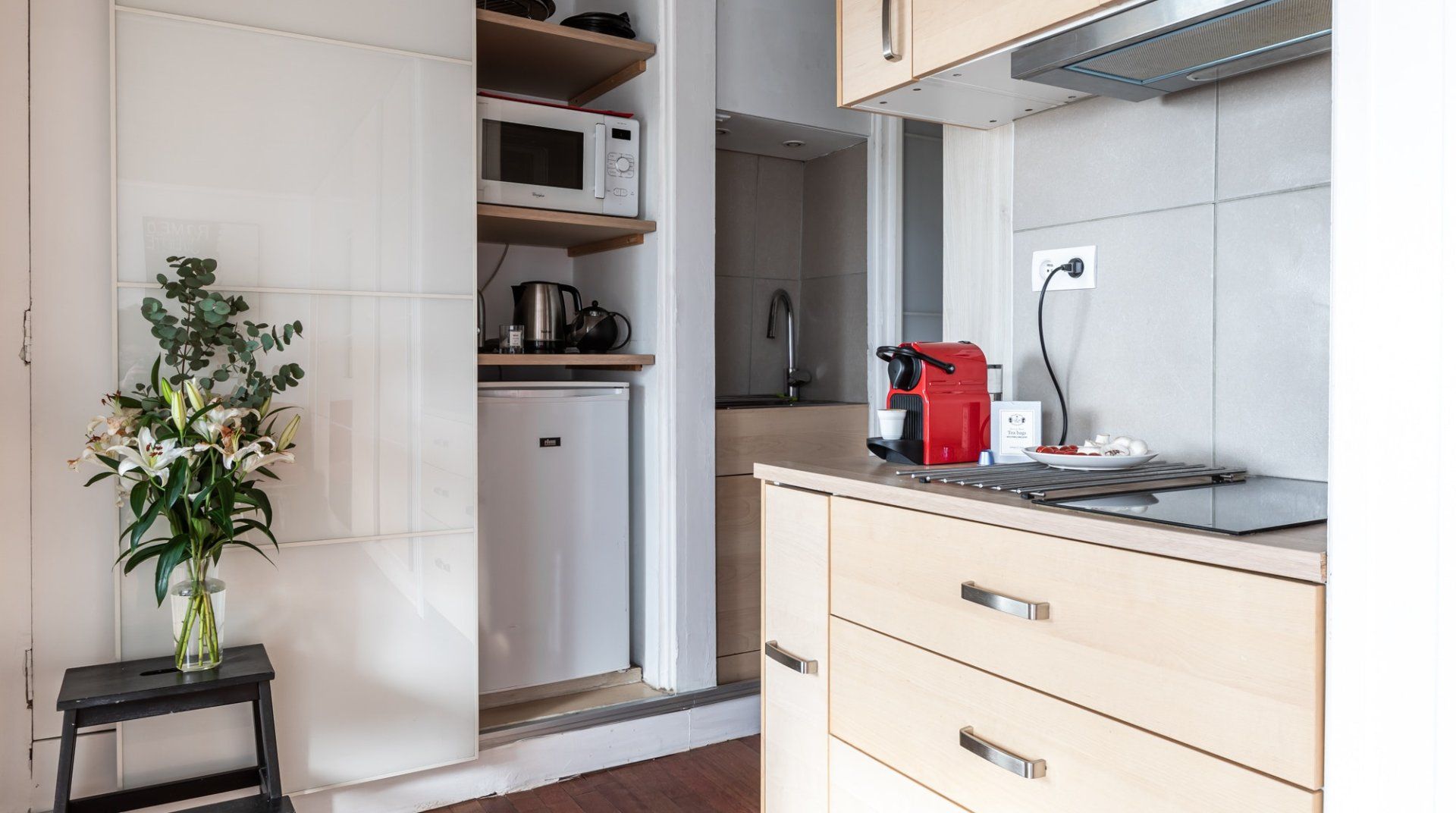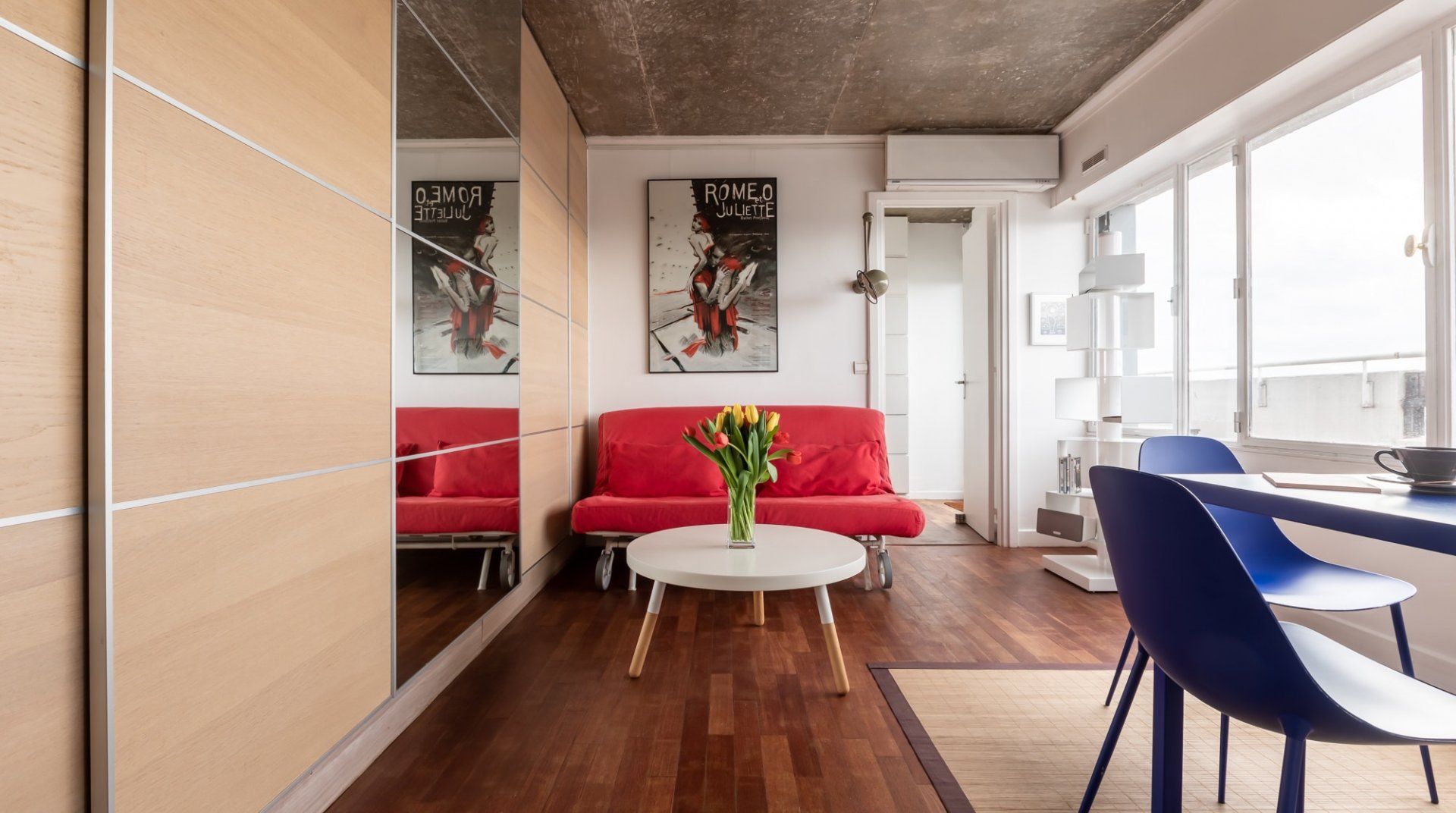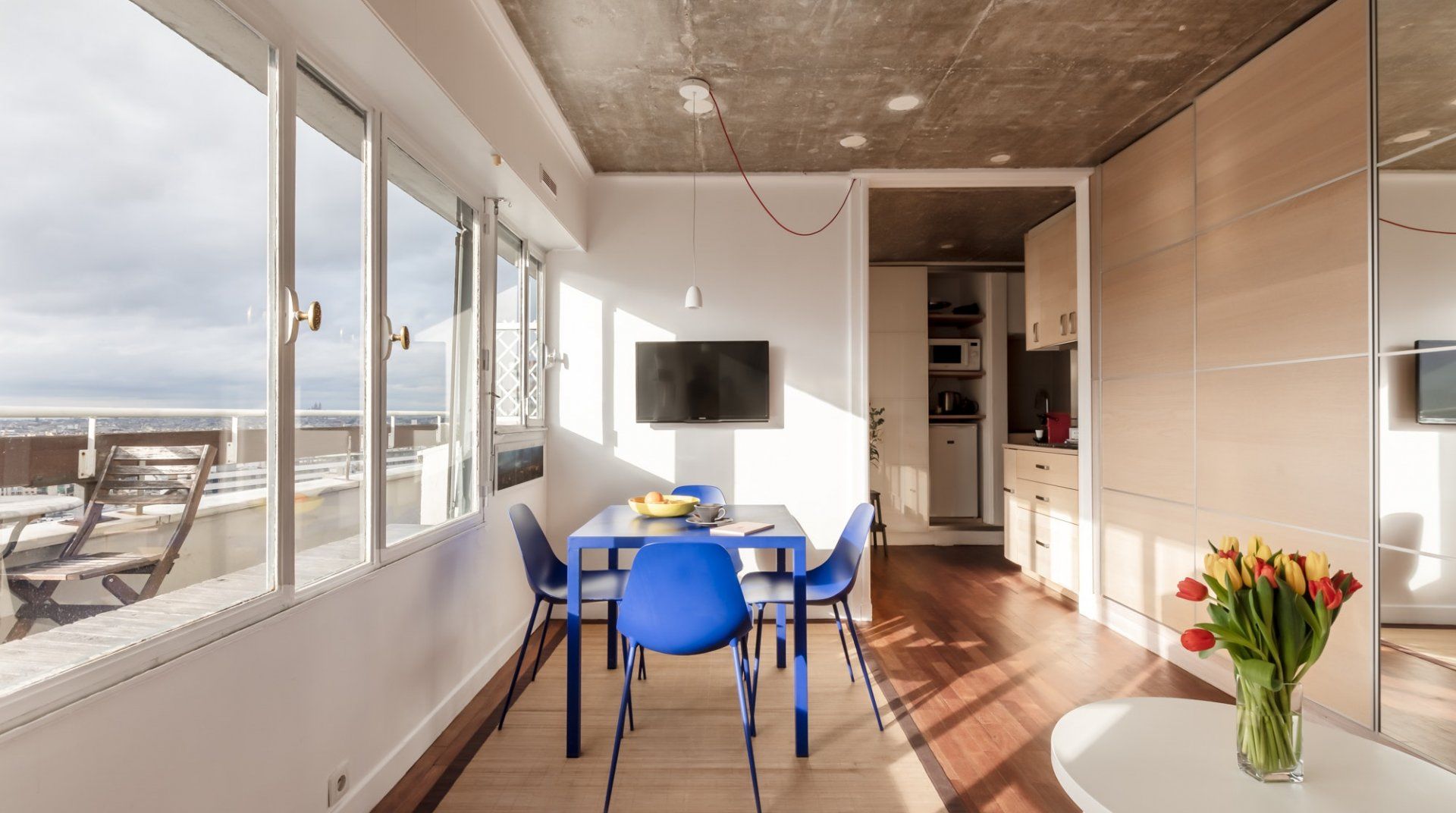 You'll feel like you're on top of the world from this 19th-floor apartment, featuring stunning panoramic views over Paris. Needless to say, this home is full of light, which makes up for its somewhat small footprint inside. It goes without saying that the wraparound terrace is what makes this home stand out from the rest. Enjoy a romantic meal under the stars with views of the city skyline, including the Eiffel Tower and Sacré-Coeur. You'll even catch the views from the bathroom – brushing your teeth in the morning has never been so enchanting – and probably never will be again, after a stay here. Serve up breakfast, or sit back with some jazz music playing in the background as you take in the sites from the comfort of your own balcony. And when you're ready to head out, hop on the metro at Reuilly-Diderot or Gare de Lyon – both within ten minutes walking distance to wherever your heart is pulling you. If photography is your jam, take some snaps over on Rue Cremieux, a fifteen-minute walk away, as it offers the perfect Instagram backdrop with its standout colourful architecture. We recommend spending a morning at Place d'Aligre – one of Paris' best farmer's markets. Once you've picked up some fresh local produce, make your way over to the Seine for a picnic of dreams on its charming banks and an afternoon well spent – Parisian style.
