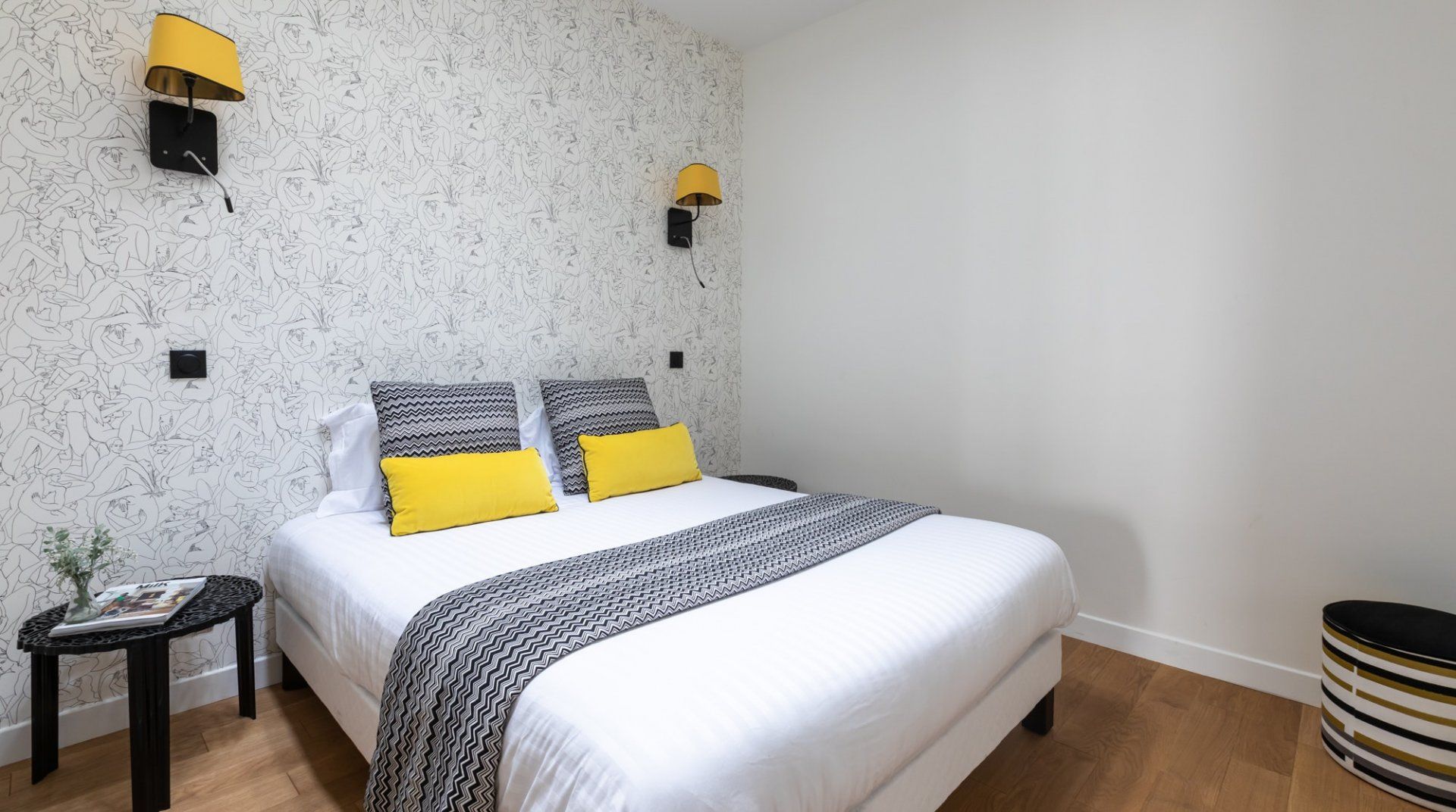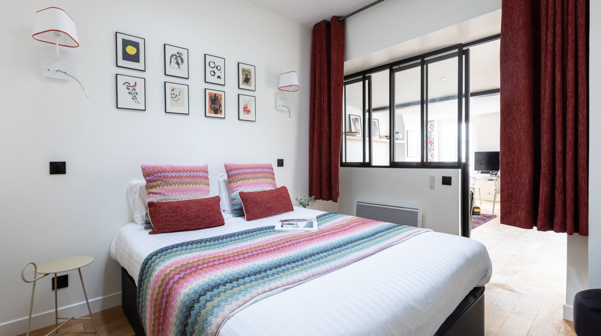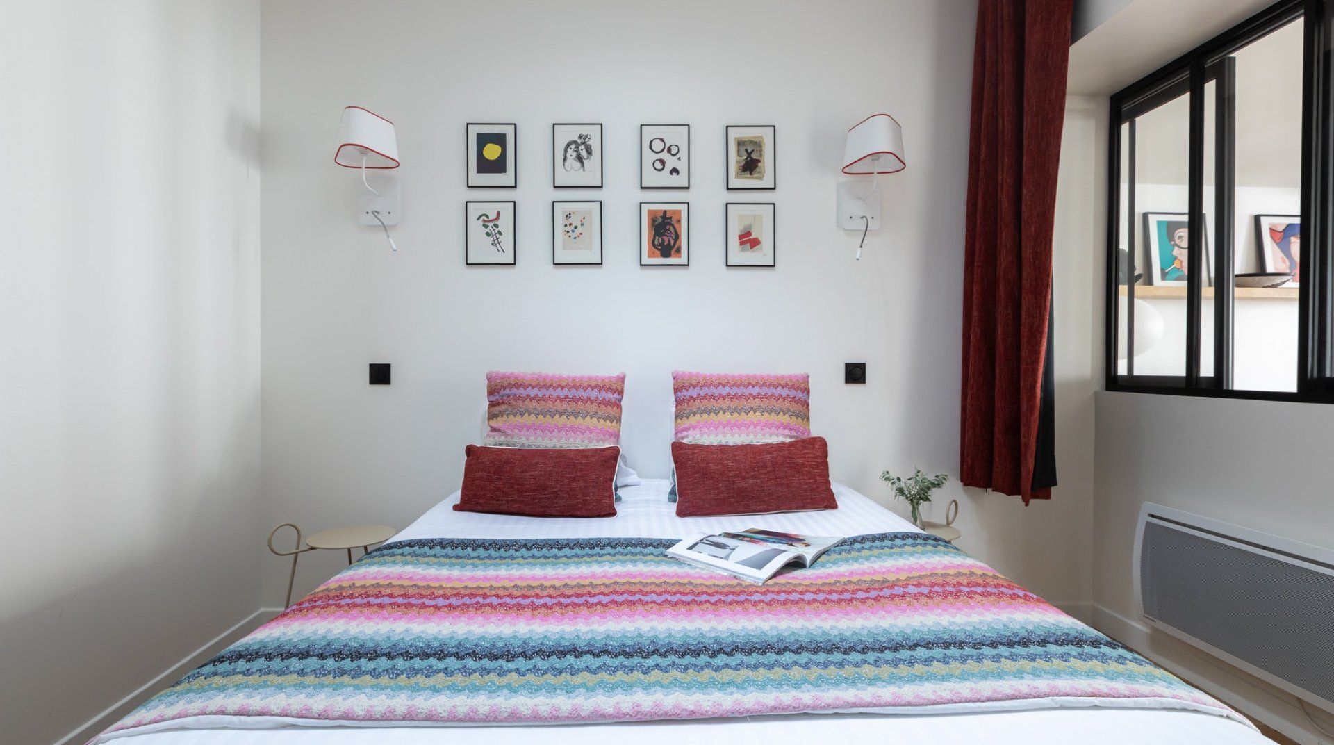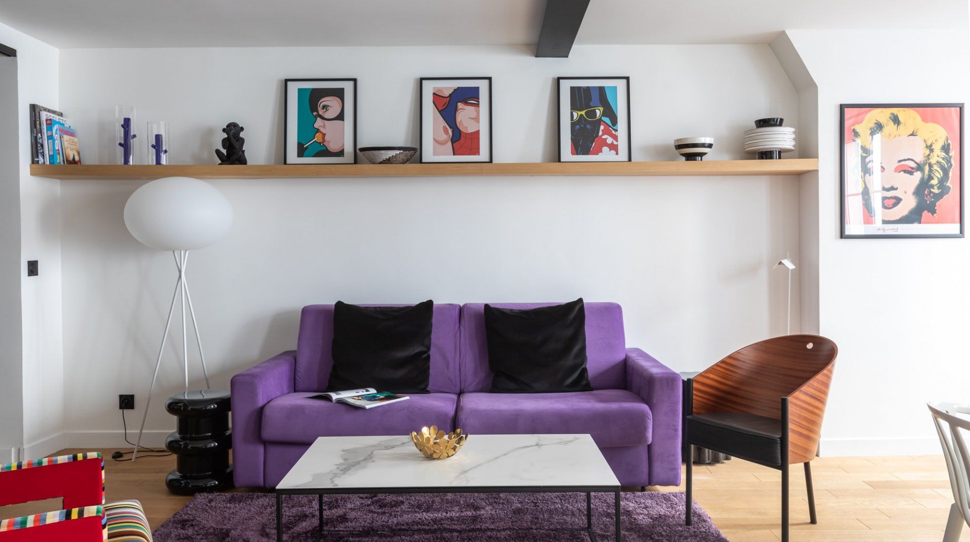 Bold and playful, this apartment is sure to put a smile on your face. How could it not, when there's a cushy purple sofa, rainbow-striped chair, quirky wallpaper in the bedrooms and pop art peppering the walls? With a well-stocked kitchen, marble bathroom and cosy bedrooms to boot, you couldn't ask for a better place to call home. Greet the day with a typical French breakfast of croissants and coffee at the dining table, then head out to explore all the city has to offer. Much like the apartment, Le Marais is vibrant and animated, known as a quintessential Parisian neighbourhood steeped in history. You'll find an array of shops and eateries on Rue Beaubourg, which is just around the corner, and there are even more options nestled among the arcades near Place des Vosges. Culture vultures can get their fix at museums like Maison de Victor Hugo (home of the famous novelist, just a twenty-minute walk) and Musée National Picasso (ten minutes on foot). Or just stroll down the cobblestone streets letting the spirit of Paris guide you to your next destination.