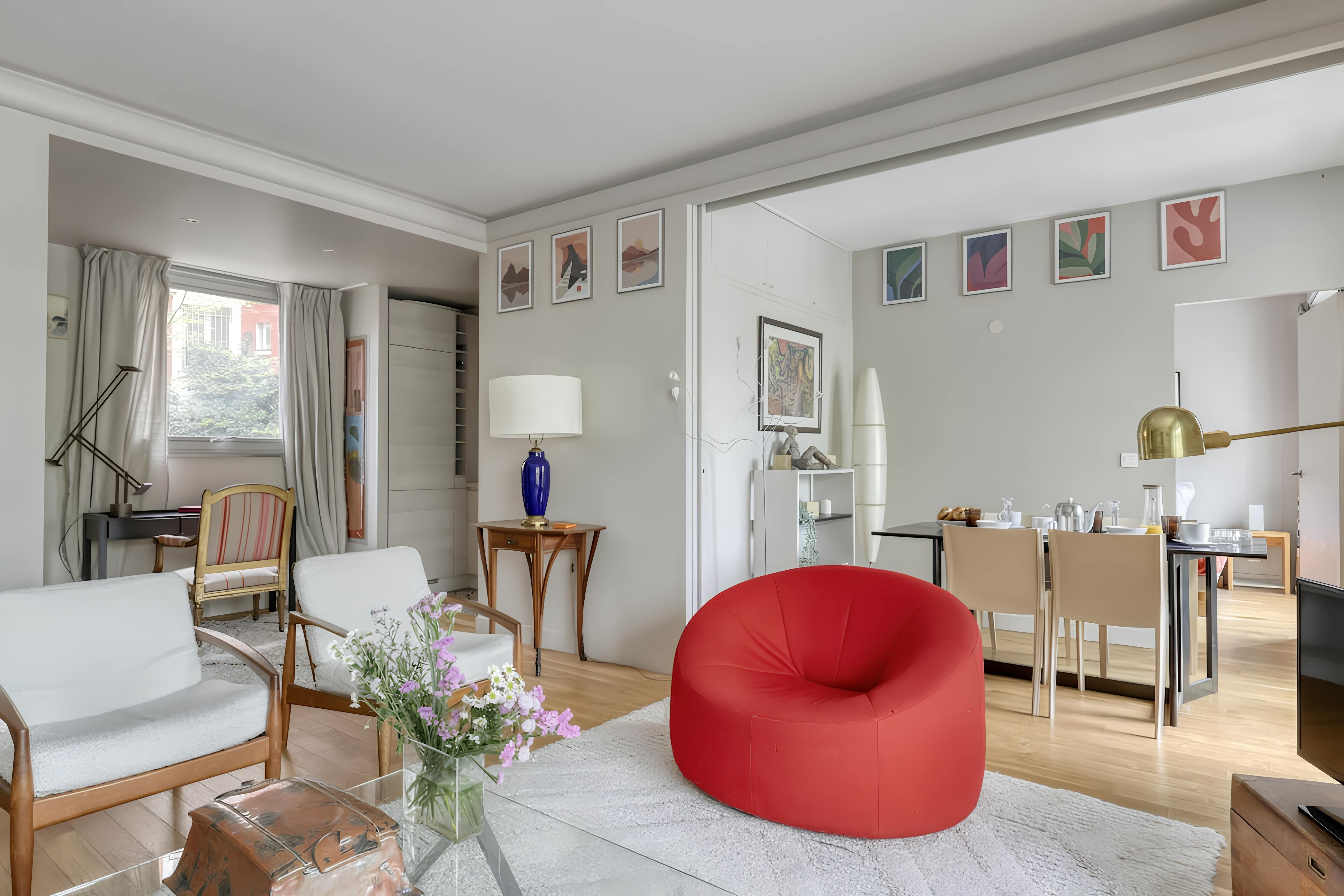 Wonderfully located in the heart of the Bastille, this apartment is a superb base for exploring Paris. It’s close to the Seine, with an array of shops, restaurants, and cafes nearby. You’ll be within walking distance of Place des Vosges and the Notre Dame, with excellent transport links to the rest of the city. The apartment has a laid-back vibe – it’s a real home-from-home, with art on the walls and enough space to make yourselves comfortable. At full occupancy, one guest will sleep on a sofa bed in the living room.