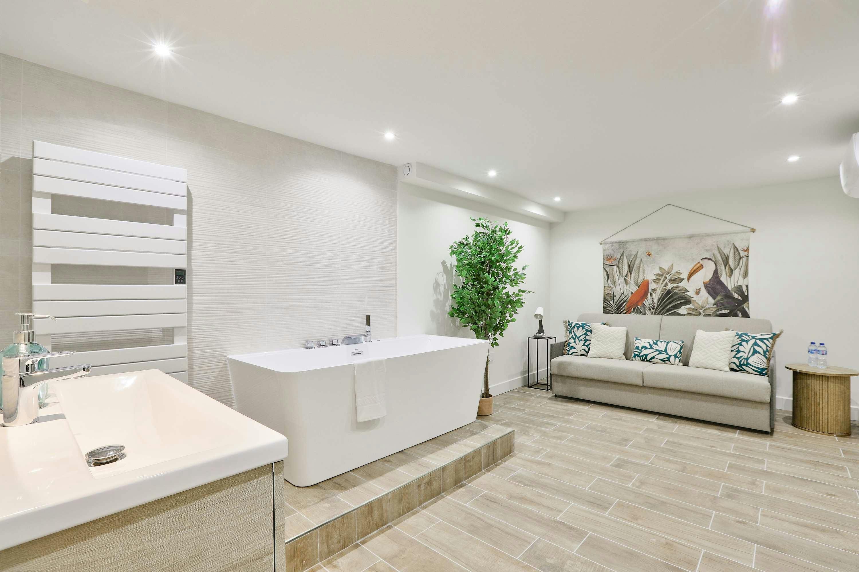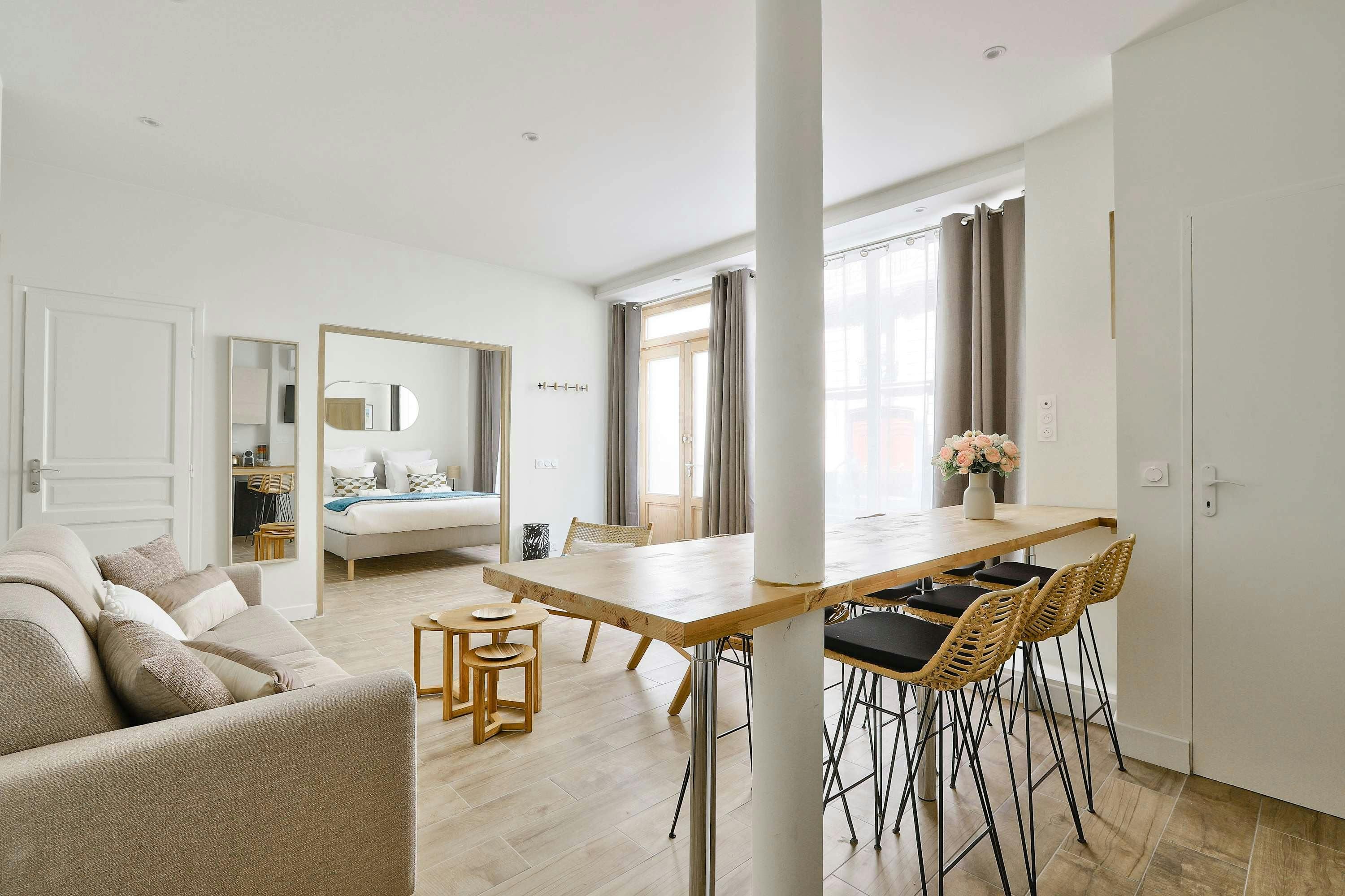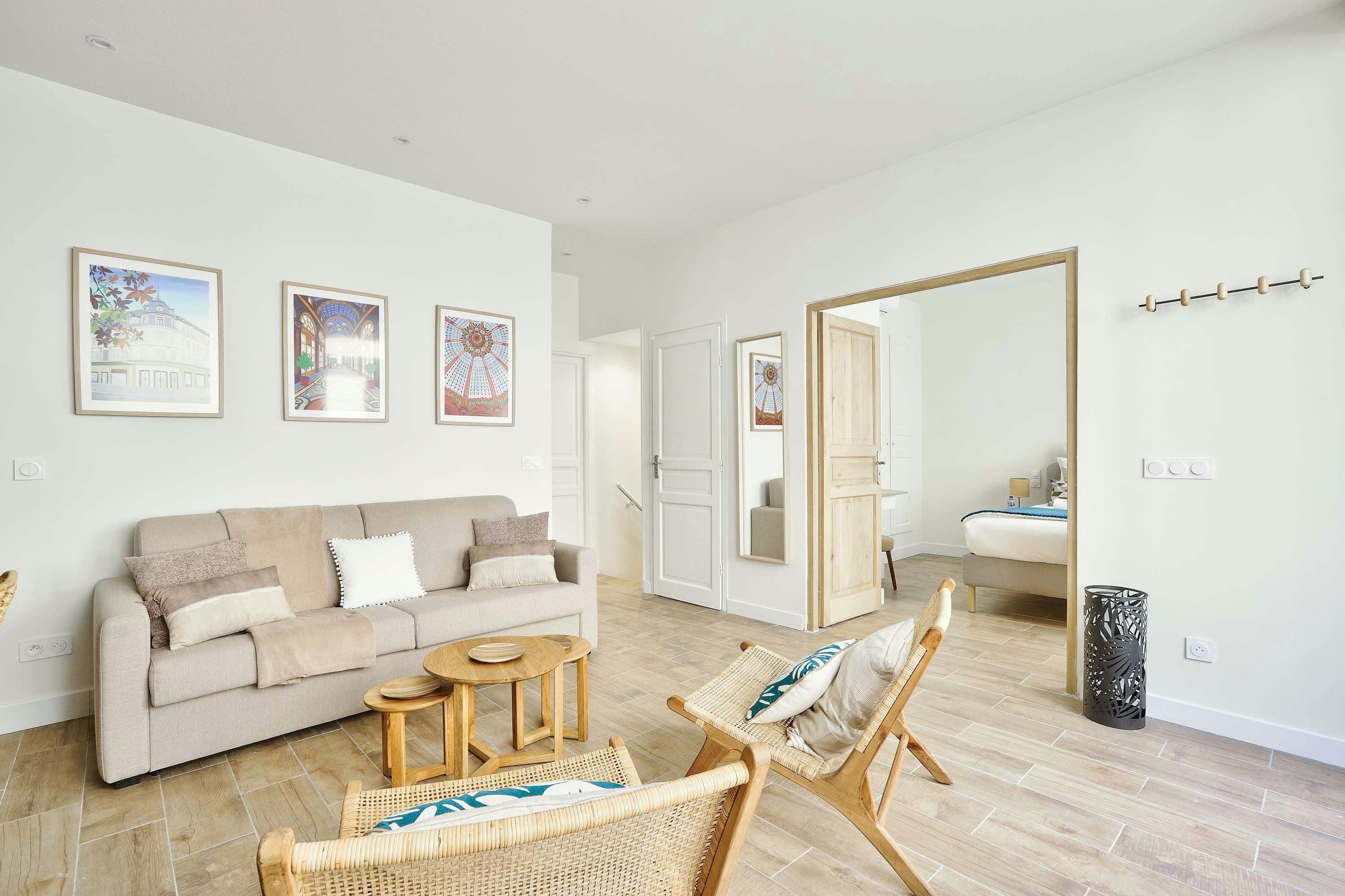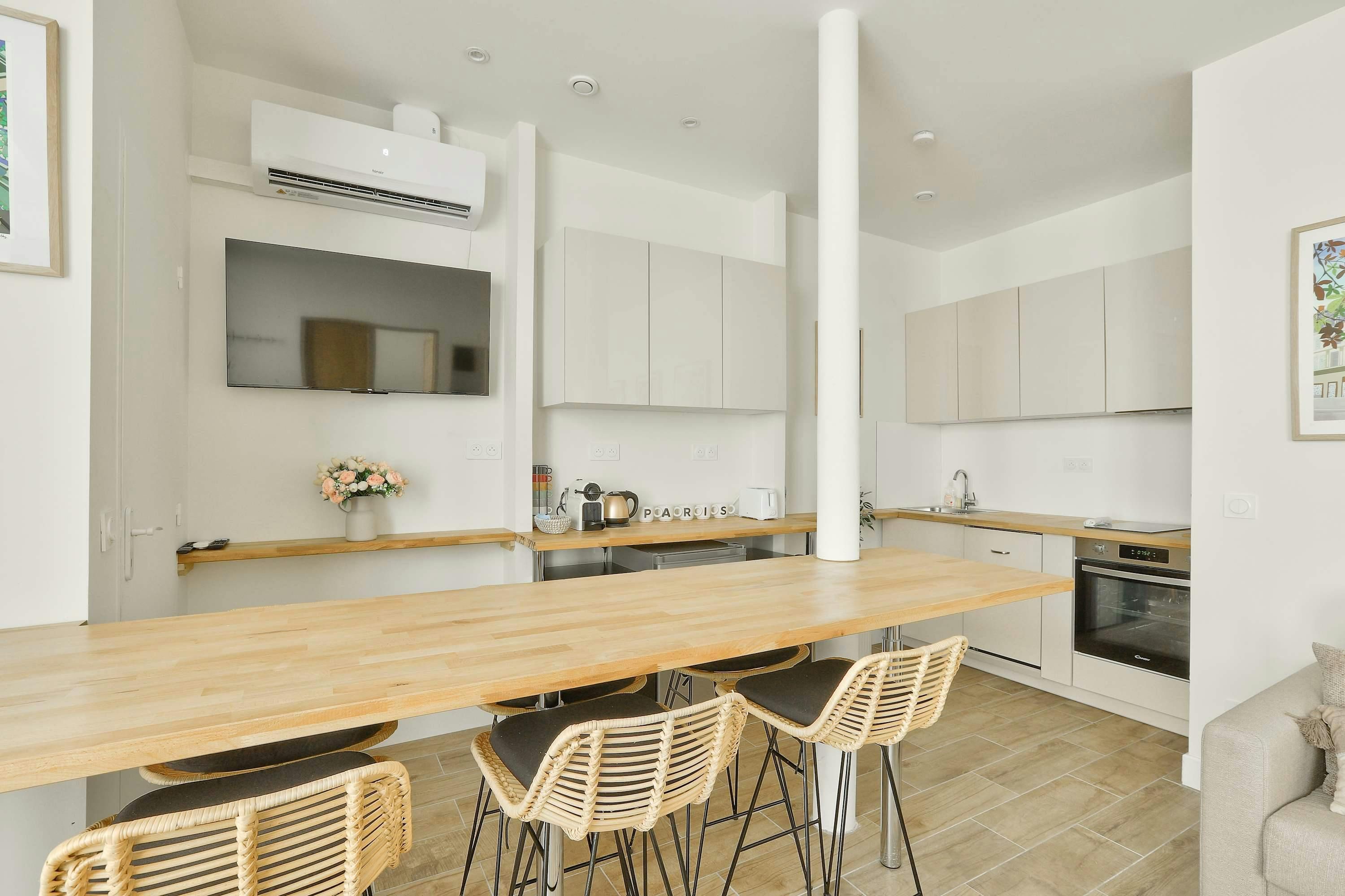 A haven of relaxation, this apartment is the kind of tranquil space you long to call home during a busy city break. It’s been beautifully decorated in soothing tones of white, blue, and wood, and even boasts a spa relaxation area with a Jacuzzi bath. We think it’s ideal for a couple looking for plenty of space, or a family with little ones sleeping on the sofa beds in the living room and relaxation area. You’ll be close to the department stores of Opéra, the peace and quiet of Parc Monceau, and the historic attractions of Montmartre.