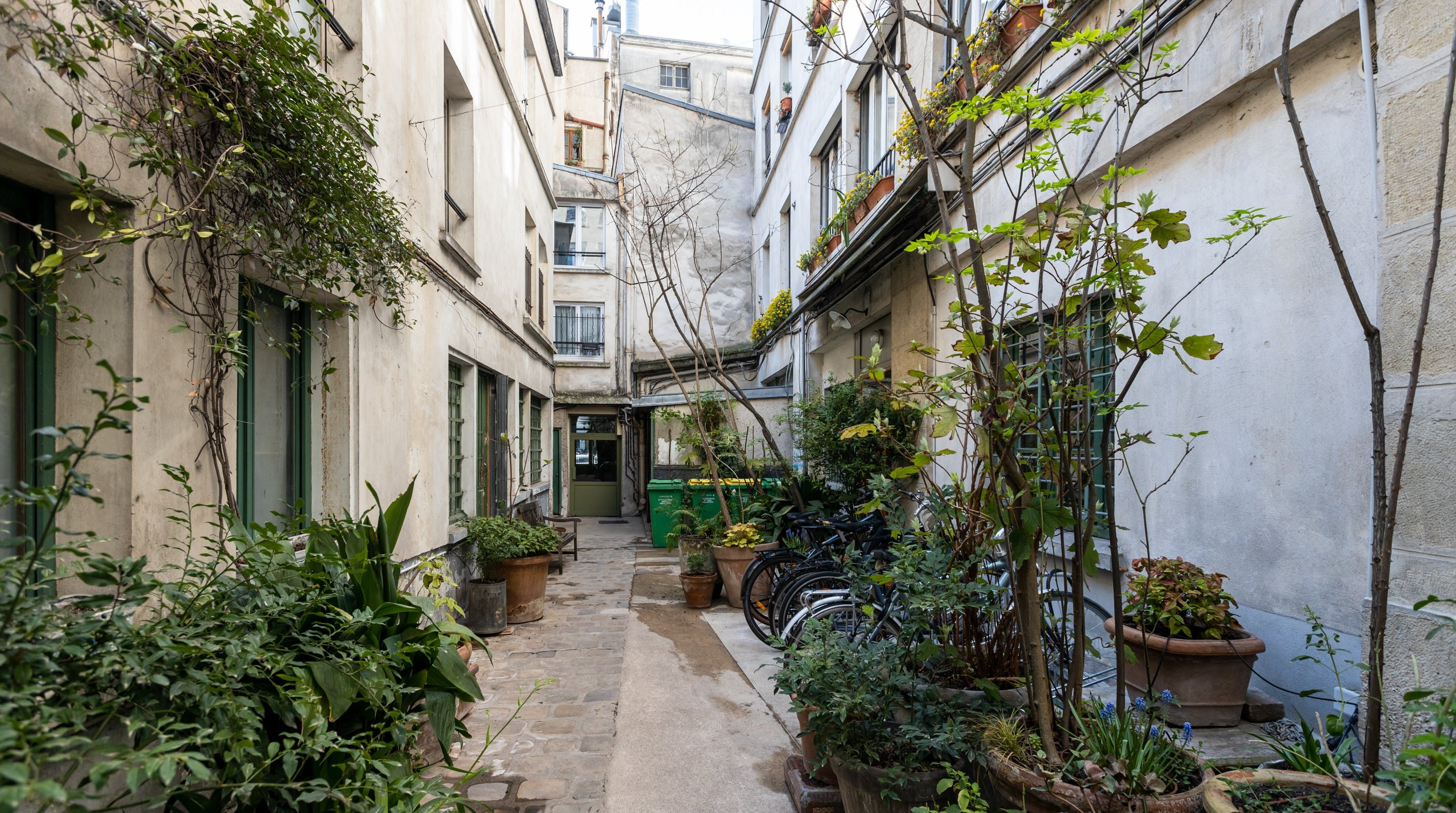 The apartment is a bibliophile’s dream with a wall of books lining the main bedroom and second bedroom/study. Walls are adorned with artworks, ranging from simple sketches to lavish oil paintings for an eclectic feel. Traditional French windows let the sunlight stream into the living room and the kitchen, has everything you need to try your hand at French cooking. The best part is this apartment looks out over a plant-filled communal courtyard so it’s blissfully quiet at night.