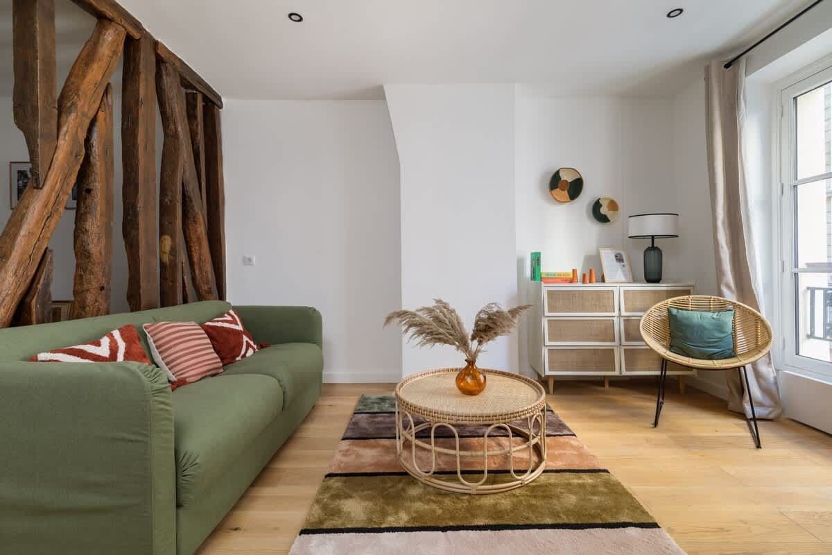 This charming apartment offers a tranquil retreat for two in an excellent part of Paris. It’s in a lively neighbourhood in the 7th arrondissement, home to so many of the city’s best-loved attractions. From here, you can walk to Hôtel des Invalides and the Eiffel Tower, stopping on the way to visit wine bars and bistros. Despite its central location, the apartment is in a quiet building. Climb the stairs to the first floor and enjoy the stylish bohemian vibe. This is a comfortable pied-à-terre, perfect for a romantic stay in the City of Lights.
