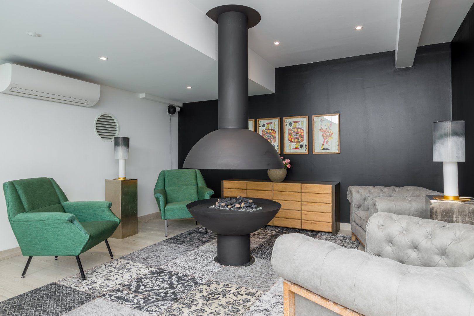 Between the 8th and 15th arrondissements, the Arc de Triomphe acts as a gateway to some of Paris’ most exclusive, luxury areas. Just a six-minute walk from this ornate arch, this apartment is every bit as elegant as you'd expect. Step into a bright living space lit by a delicate Tiffany lampshade, and French windows framed by classic wrought ironwork. Then, for a bit of escapism from these quintessentially Parisian features, slide into the satin bed linen of your tropical bedroom. Your floral, jungle mural is the centrepiece, matching beautifully with the green velvet bedspread. Take a rainfall shower in the black marble bathroom and get ready to hit the town. Before you leave, pass through the common area (which is anything but common). A huge skylight illuminates a lounge with a full pool table, an extensive library, and an indoor fire pit. Head out around the corner to the Avenue des Champs-Élysées, three minutes away. Whether you want flagship designer stores, high-end jewellery, or just to gaze in awe at the Haussmann blocks, this home couldn’t be any more conveniently located. And on the rare occasion that you'd need to leave this opulent area, George V, your nearest metro station, is a four-minute walk.