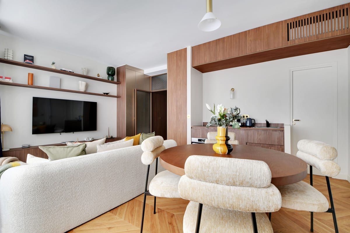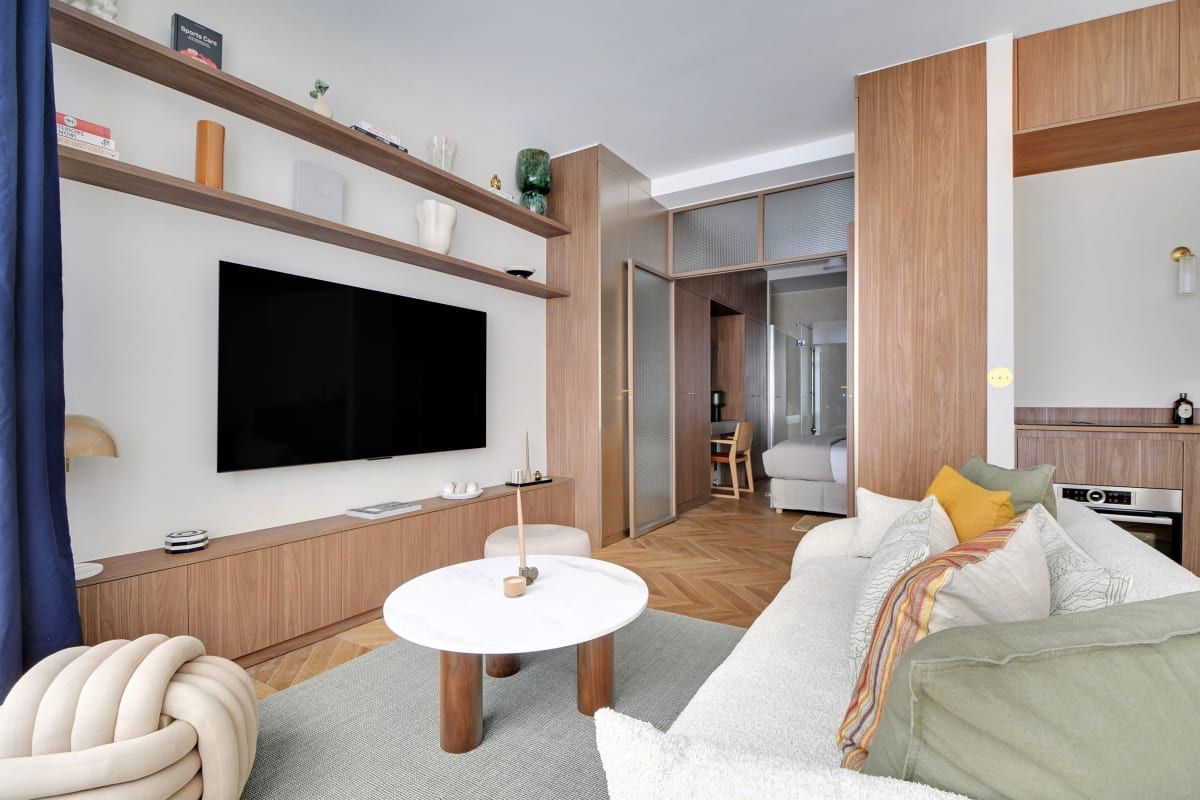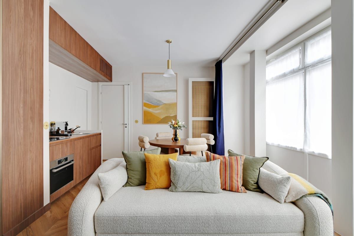 Light-filled and fuss-free, this home is an ideal base for a family or two couples on a Parisian stay. It’s worth noting that at full occupancy, two people will be sleeping on the sofa bed in the living room and will also share the en-suite shower with those sleeping in the bedroom. Still, it’s a small price to pay for this home’s enviable location. Mere steps from the Champ-de-Mars, a short walk takes you to Paris’ most famous hotspot – the Eiffel Tower.
