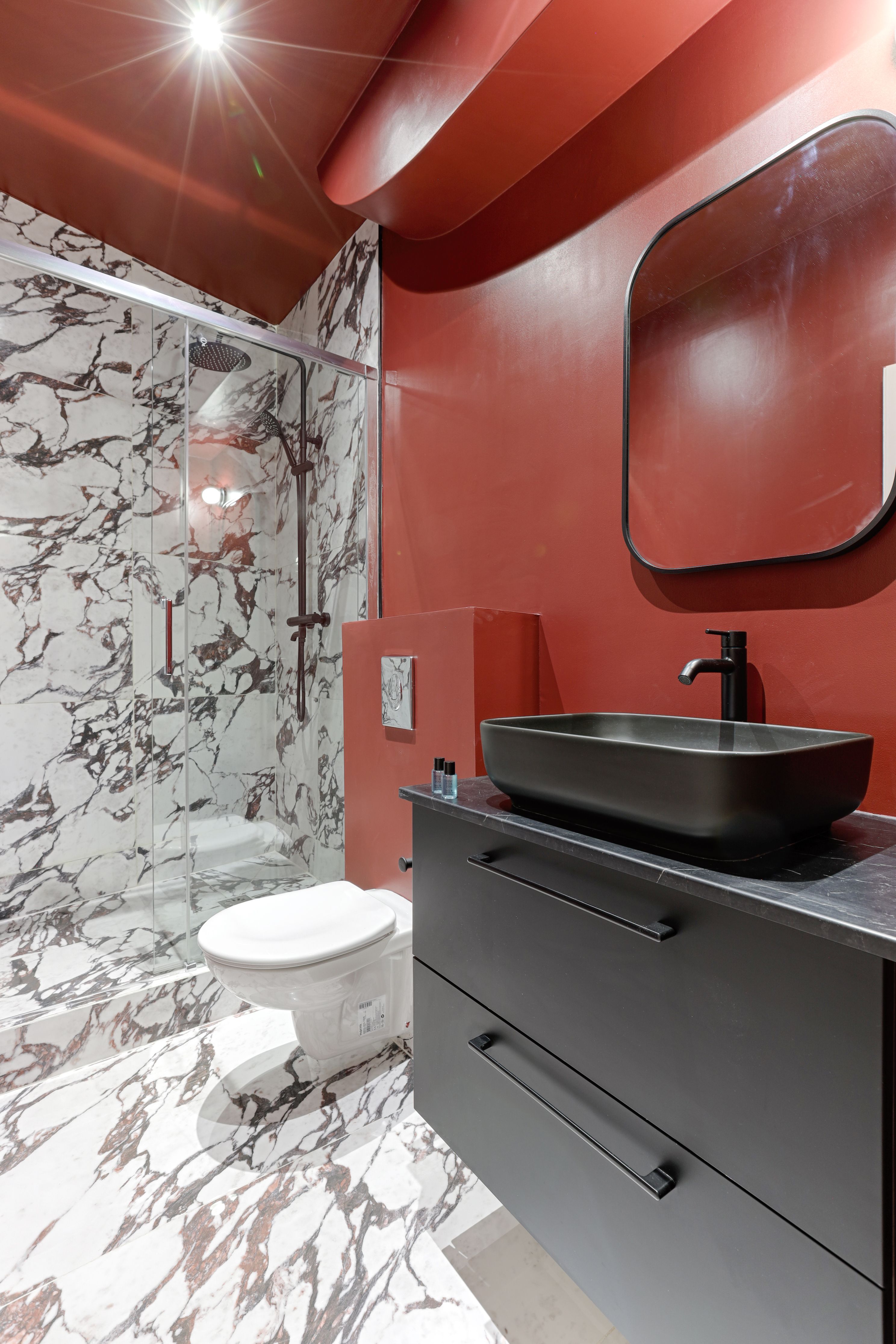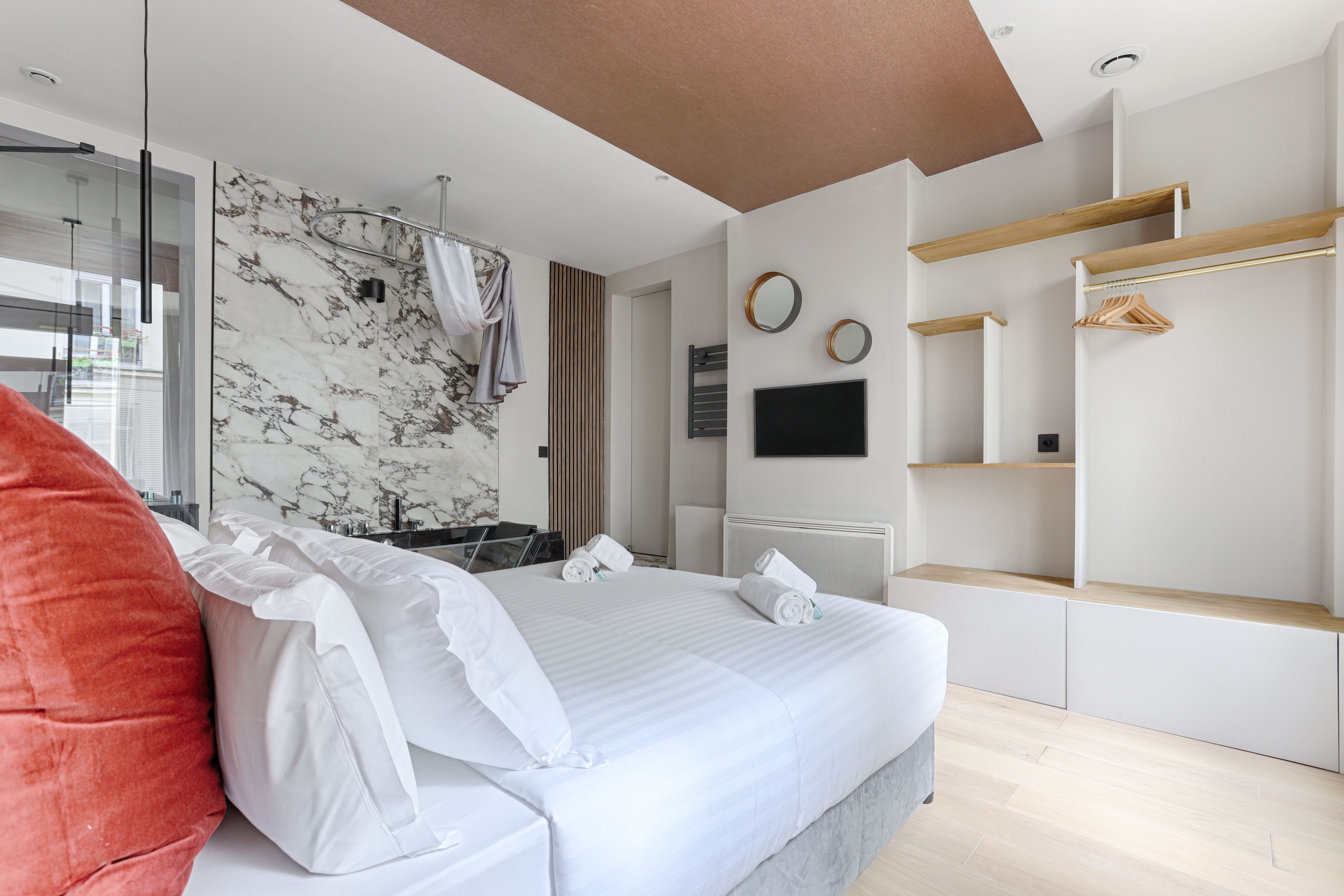 *While the en-suite bathroom has a separate toilet, the bath and sink are integrated in the bedroom, so privacy is limited.