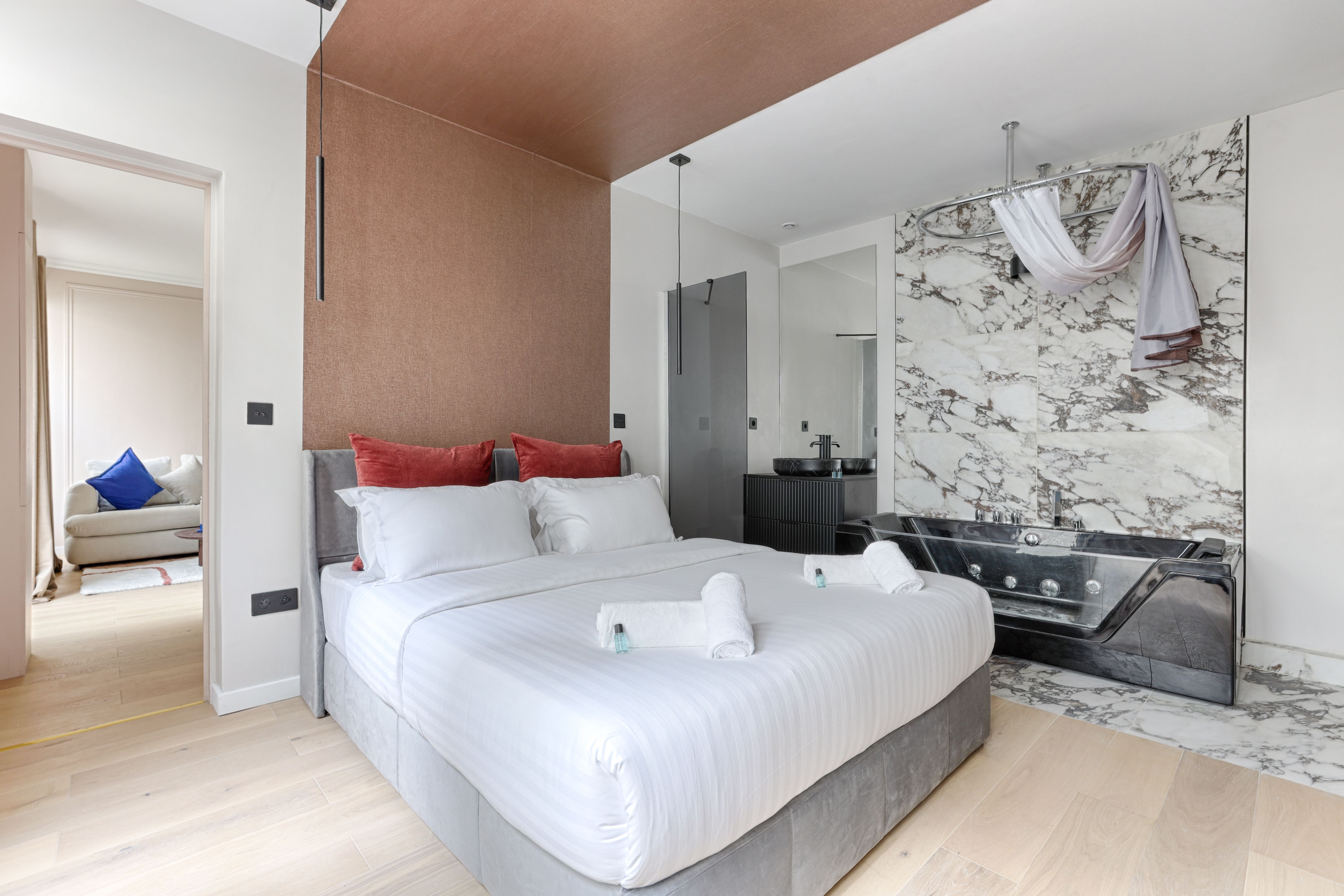 This home is sandwiched between Paris’s 8th and 17th arrondissements, surrounded by cobbled streets, historic buildings, and traditional breweries. The world-famous Moulin Rouge is just a fifteen-minute walk from here, and for discovering the rest of the capital, Rome Metro station is a short stroll away. While the kitchen lacks an oven, we think that’s a great excuse for sampling one of the many cafes and restaurants on the doorstep. And after a busy day exploring the city, the Jacuzzi bathtub is the perfect place to relax and unwind.