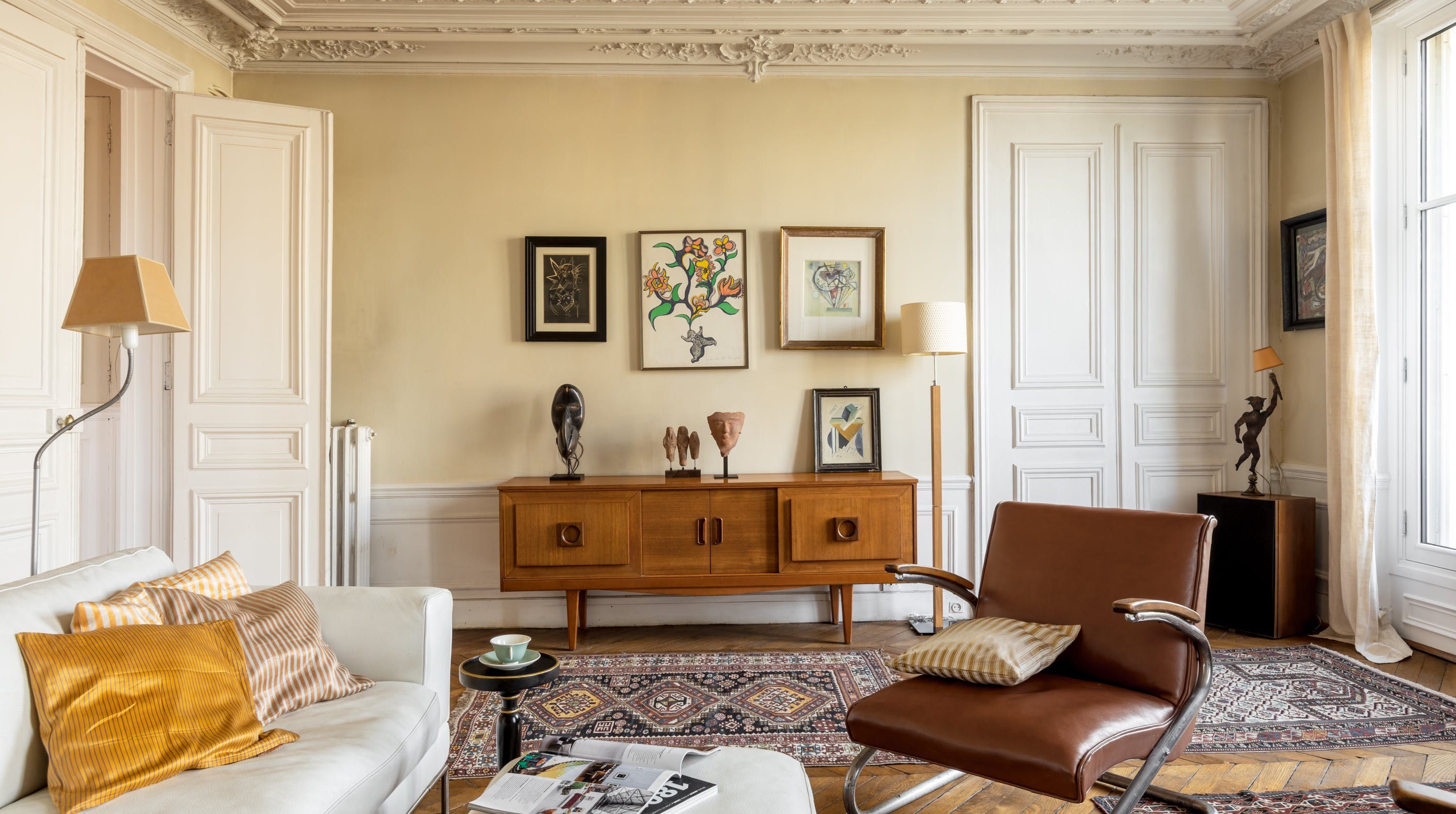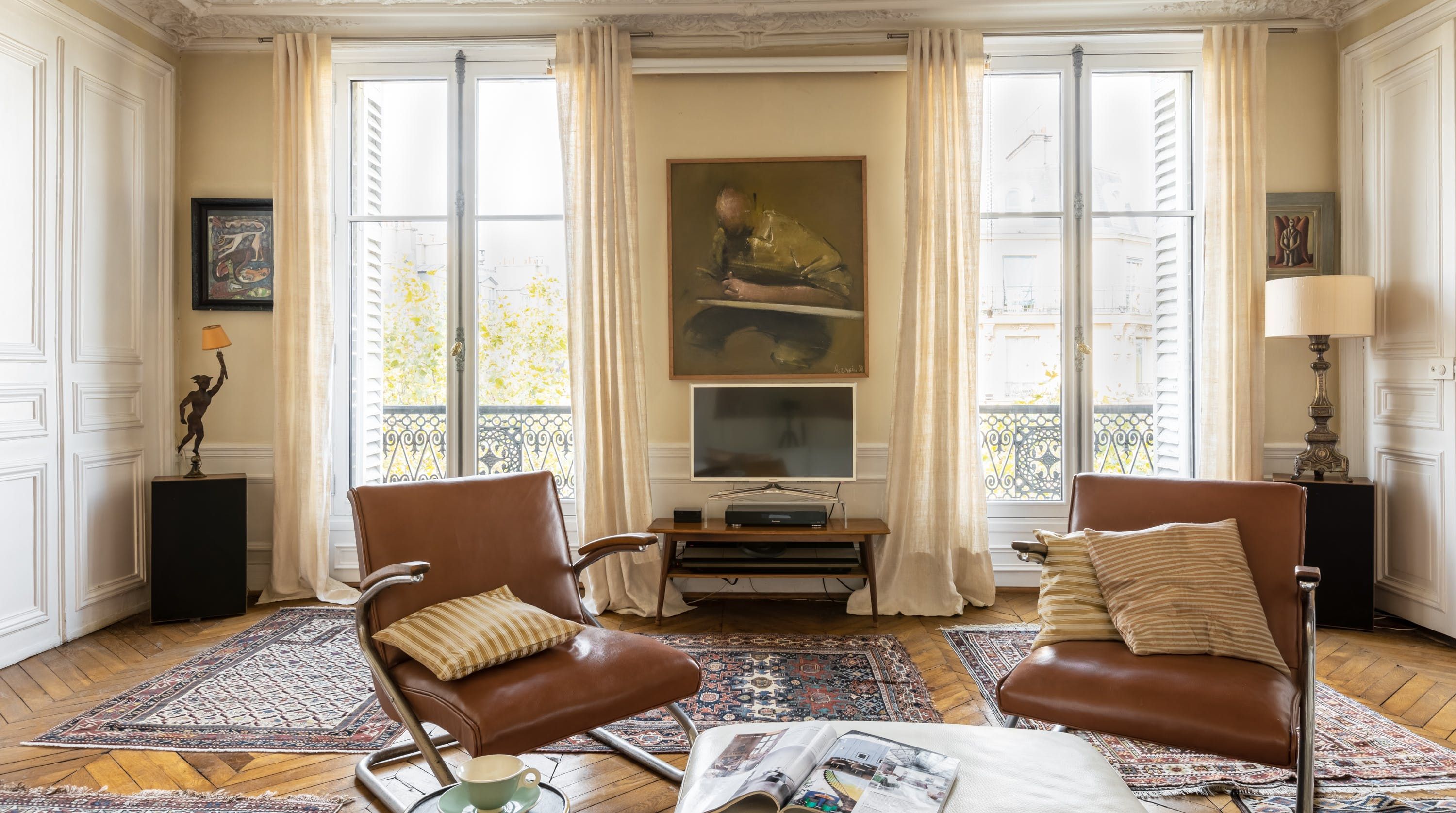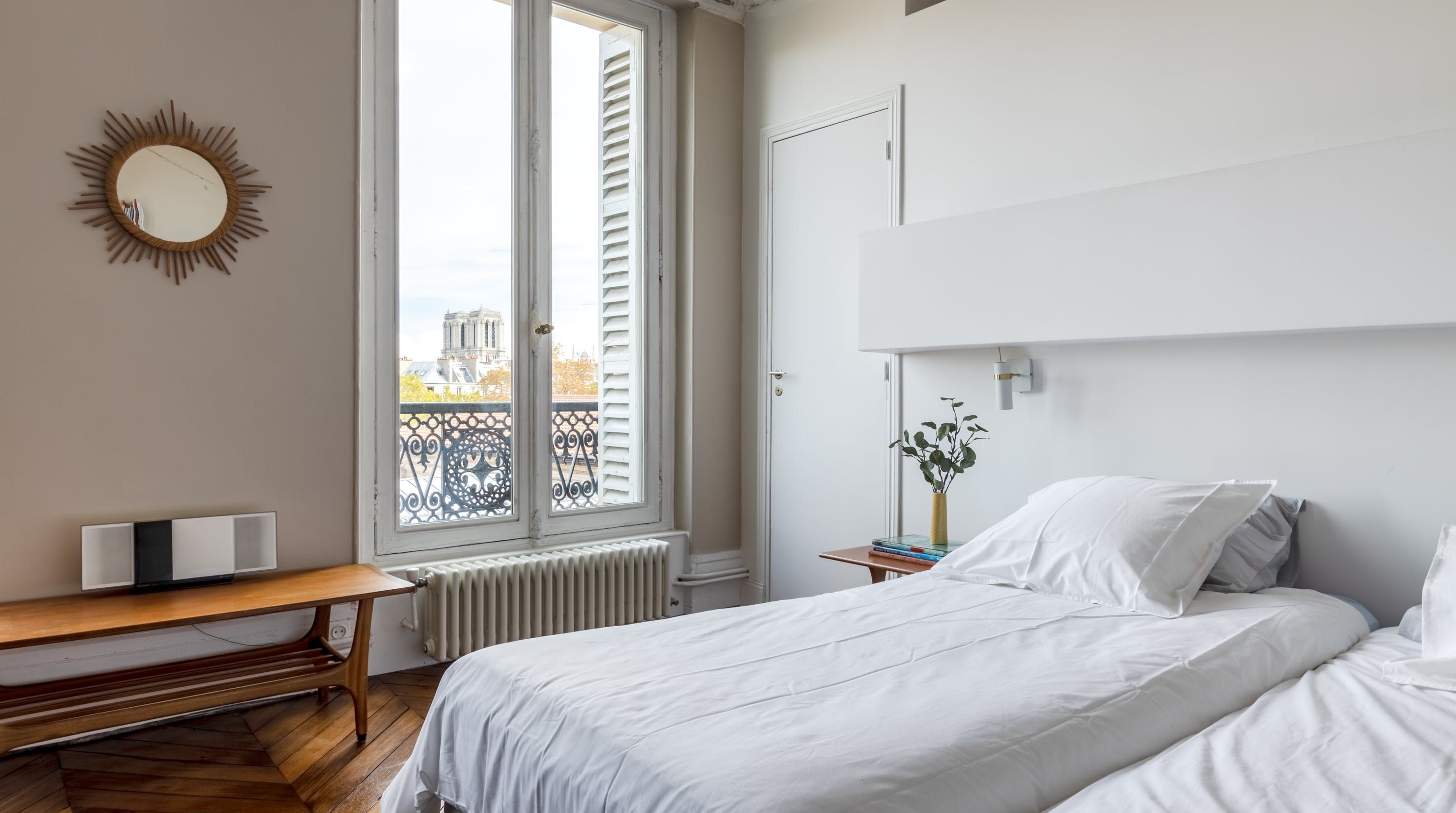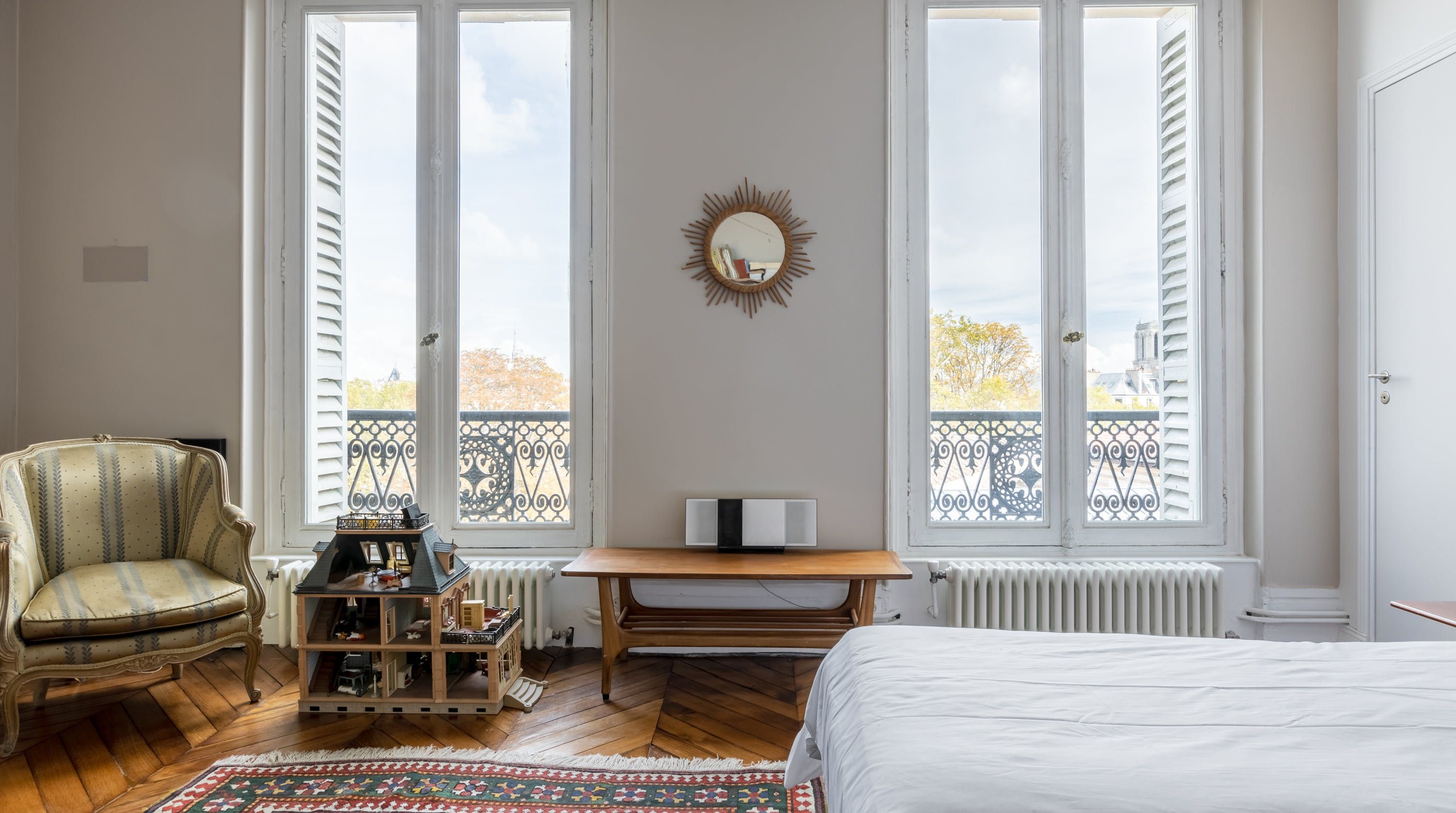 Located in the heart of Paris’ Latin Quarter – right by the Finnish Institute in France and a two-minute walk from the Sorbonne – this home is quintessentially Parisian. From its tall, corniced ceilings to its parquet flooring and floor-to-ceiling windows offering incredible views of Notre Dame and the old Gallo-Roman baths, there’s a feeling of bohemian elegance here that captures the soul of the city. Art and books abound here – particularly in the dining room and study – offering plenty of opportunities for you to peruse the shelves while enjoying your morning coffee or evening glass of wine. With multiple desks at hand, you’re never far from a workspace when artistic inspiration strikes, nor from a Juliet balcony when quiet contemplation is called for. Whether you’re sitting down to a meal prepared by a private chef (organised by your host) or whipping up a delicious dinner in the modern kitchen courtesy of the thrice-weekly Maubert food market (a five-minute walk away), you’re sure to be pleasantly satiated by the neighbourhood’s bakeries, cheese shops and bistros. Outside of your home, Notre Dame is a ten-minute walk away, the Luxembourg Gardens are reachable in five minutes on foot, while the Louvre is just a fifteen-minute stroll from your front door.