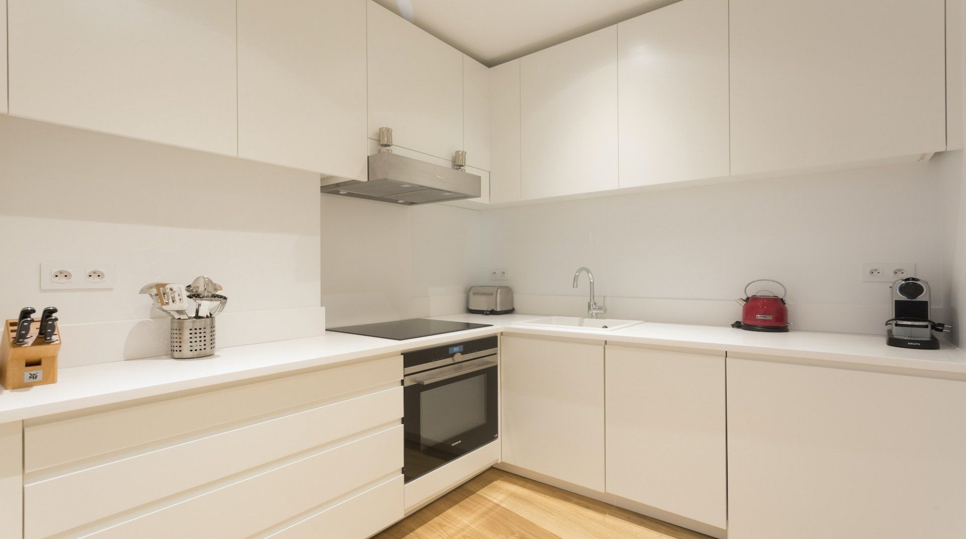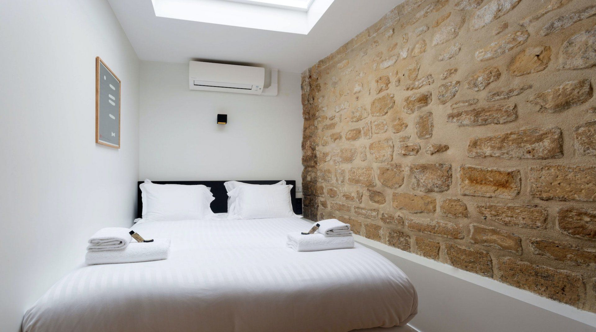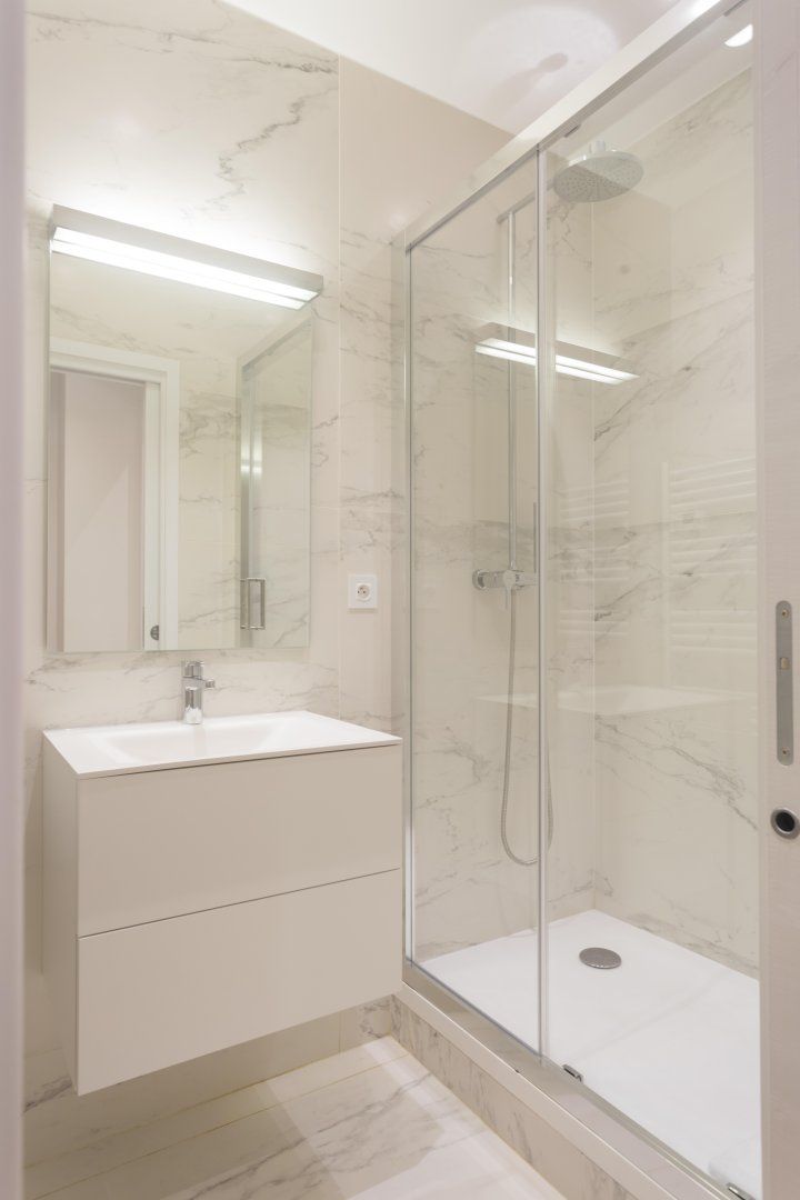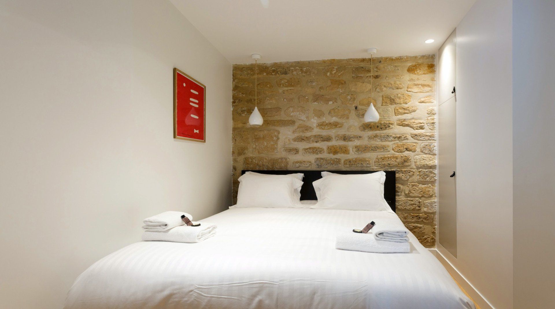 Launch-pad, spring-board – whatever you want to call it, this apartment takes convenience to another level. For those looking to see more than the usual Parisian attractions, this location is perfectly suited. Walk to the idyllic Luxembourg Gardens in just two minutes, saunter to the Notre Dame in sixteen minutes, and catch a show in the Odeon Theatre right around the corner. Inside, the bright and airy living space is the ideal backdrop for a group of friends or family spending the weekend wandering the City of Lights. Enjoy breakfast together around the sleek dining table, sinking into stylish Eames-style chairs or spend an extra hour in bed – the rustic exposed brick walls make for a cosy spot to get your head down. Plus each bedroom comes accompanied by a TV and a marble-clad en-suite, so there's plenty of privacy here too.